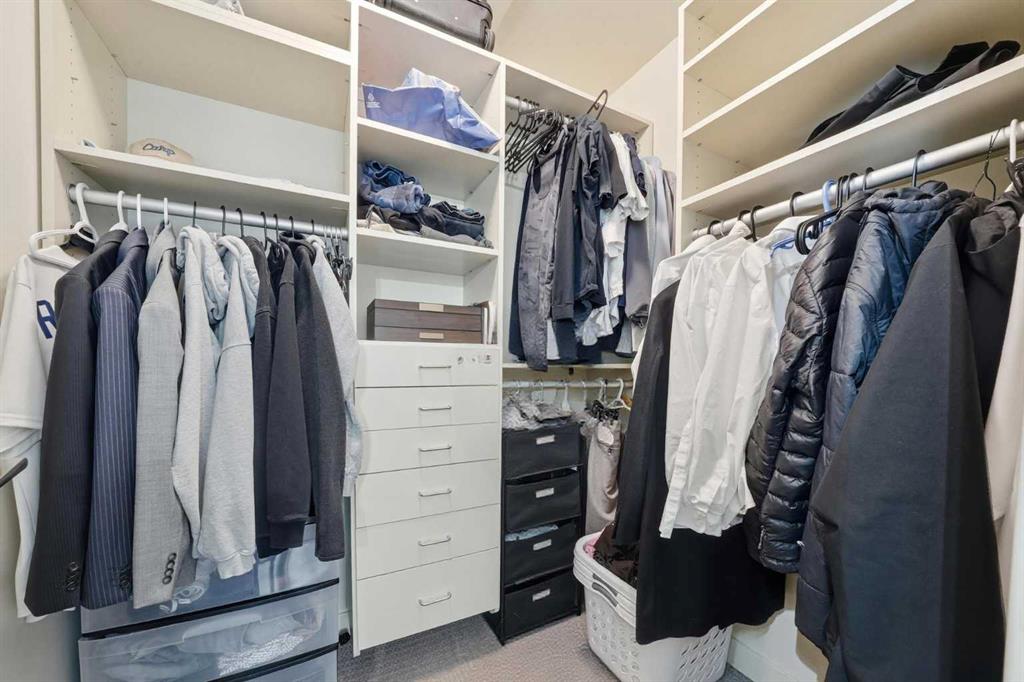 The spacious primary bedroom offers a private ensuite and walk-in closet with California Closet organizers, while the second bedroom also features a California Closet system, providing exceptional storage and organization.