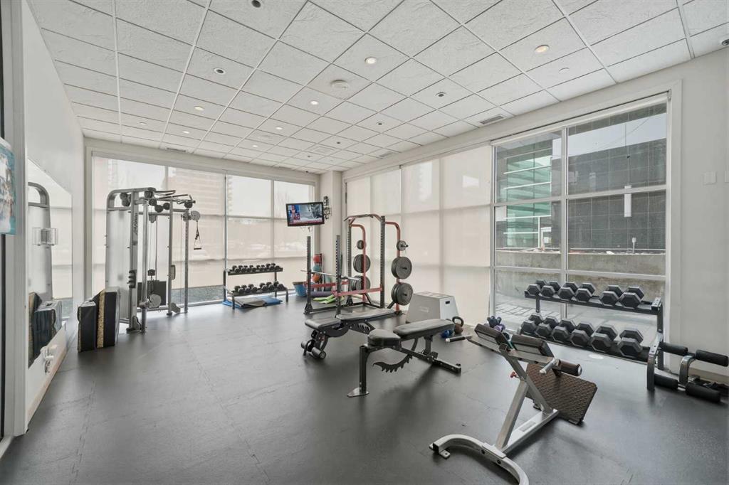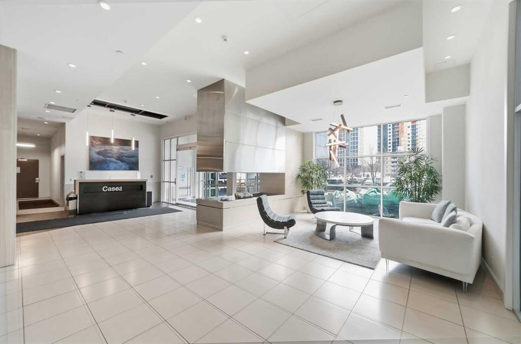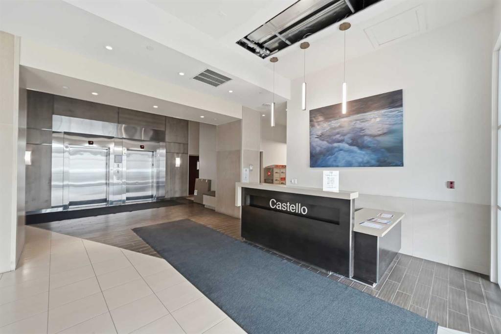 Residents of Castello enjoy exceptional building amenities including a fully equipped fitness centre, guest suite, meeting room, and concierge service, all within an elegant and welcoming lobby.