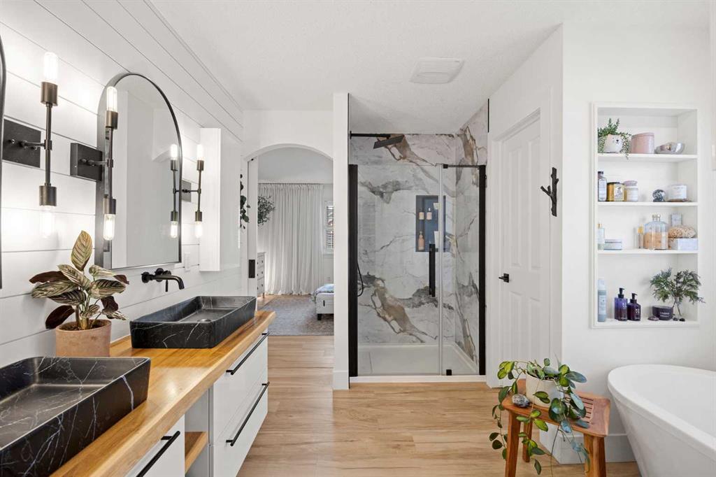 A CLASSIC, REIMAGINED ESTATE with unmatched flexibility in the heart of Inverness featuring a TRIPLE CAR GARAGE w/ LEGAL CARRIAGE SUITE, illegal BASEMENT SUITE W/ SEPARATE entrance, office with SEPARATE entrance + COMPLETE TRANSFORMATION from top to bottom!! WOW!! Welcome to 64 Inverness Lane, a fully redesigned executive home in one of Calgary’s most established, quiet, and family-focused communities. Surrounded by mature trees, walking paths, nearby schools, and access to Inverness Pond, this is a location that offers both lifestyle & long-term value. This is not a surface renovation — this home has been completely REIMAGINED, blending timeless architecture with MODERN FARMHOUSE design, quality craftsmanship, and exceptional versatility. Offering over 3876 Sq.Ft. of developed living space, PLUS a 486 sq.ft. LEGAL carriage house, this property offers flexibility that is increasingly rare and difficult to replace. Whether you are an executive family, a multi-generational household or a buyer seeking substantial income potential without sacrificing quality and privacy, THIS home adapts effortlessly! From the inviting front porch, step inside to a warm, cohesive interior featuring NEW luxury vinyl plank flooring, TERAZZO tile, NEW carpet, central A/C, and a layout designed for both everyday living and entertaining. A stunning two-sided fireplace anchors the main living space, while the kitchen is a true standout — designed to impress — featuring QUARTZ countertops, a 10-foot island, custom hood fan, Samsung Bespoke appliances, GAS range with double oven, farmhouse sink, butler pantry, coffee bar, smart lighting + 2 NEW WINDOWS!! Upstairs offers 3 bedrooms, including a beautifully designed primary retreat with a freestanding soaker tub, WALK IN TILED shower, dual sinks w/ a live-edge countertop, and a WALK-IN closet. Two additional bedrooms and a fully renovated bathroom complete the upper level. A rare main floor office with vaulted ceilings, PRIVATE entrance, and its own deck creates the perfect space for working from home or running a business. The fully developed basement w/ illegal SUITE offers a second full kitchen, BRIGHT + SPACIOUS living area, 2 bedrooms, SEPERATE entrance, laundry + an infrared sauna! (rented for $2250/ month) Above the HEATED TRIPLE garage sits a fully RENOVATED LEGAL CARRIAGE HOUSE w/ vaulted ceilings, open-concept design, gas range, stainless steel appliances, private laundry, its own furnace and hot water tank, sunroom, and private balcony — a truly special, self-contained space. (was rented for $1800/month) Situated on a 6,500 sq.ft. lot, the outdoor space is designed for enjoyment with a covered Duradek deck, hot tub, fire pit area, courtyard with fountain, and mature landscaping. Additional upgrades include a LIFETIME metal roof, new fencing (2021), NEW hot water on demand, NO POLY B + heated garage spaces. If you have been looking for the PERFECT multi-family home, INVESTMENT property or UPSCALE estate home, THIS IS IT!!