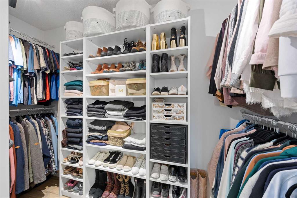 breakfast bar, built-in features, ceiling fan(s), chandelier, closet organizers, double vanity, high ceilings, kitchen island, no animal home, no smoking home, open floorplan, pantry, quartz counters, sauna, separate entrance, storage, tankless hot water, walk-in closet(s)