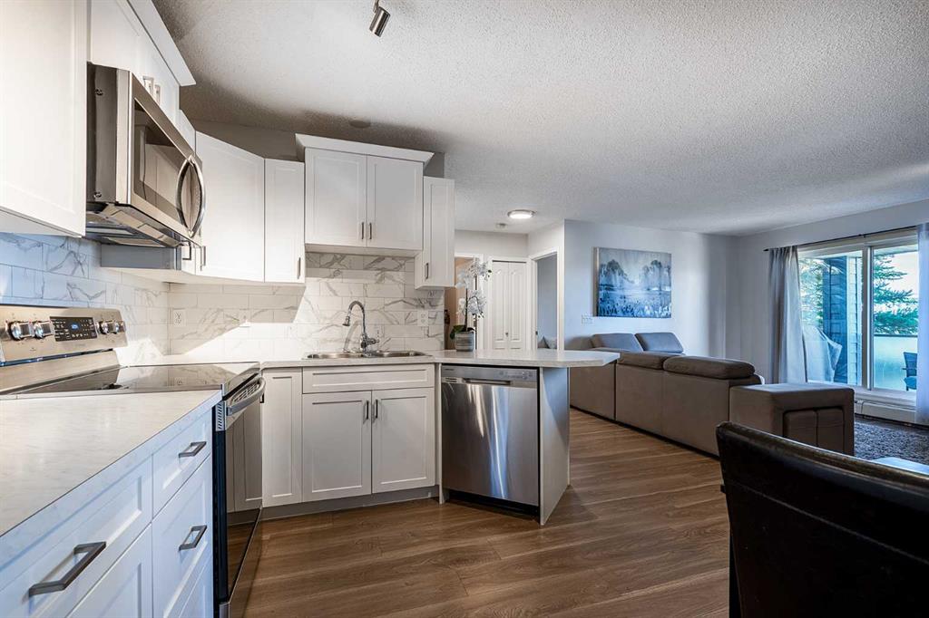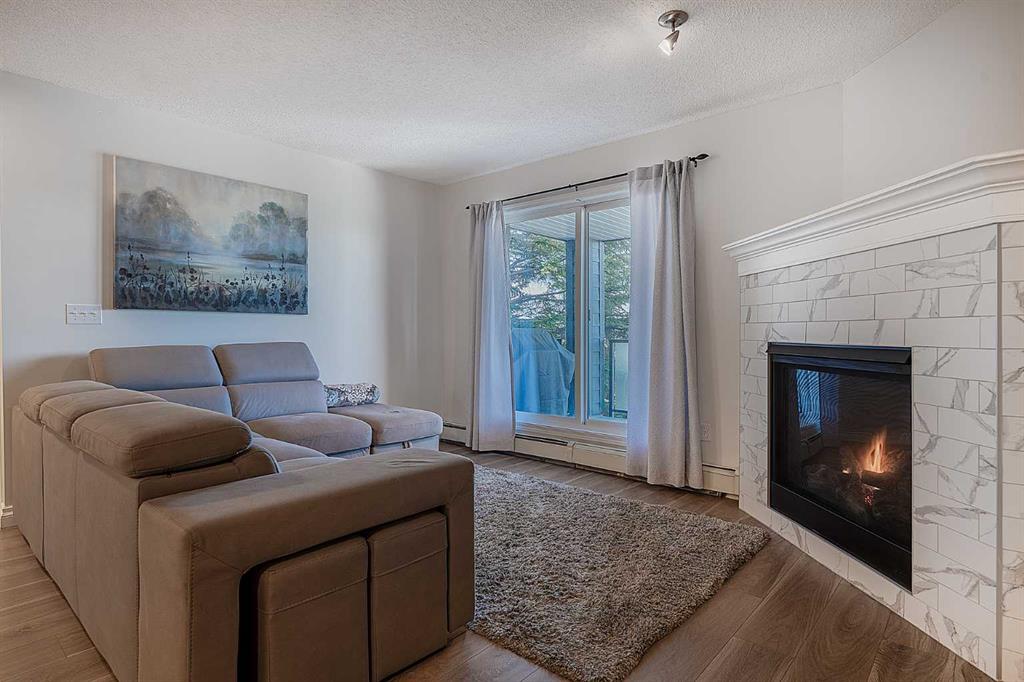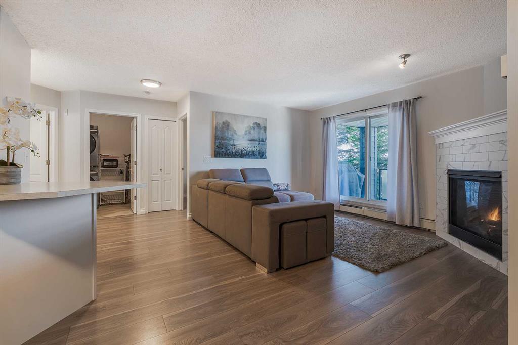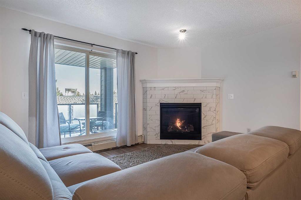 Amazing Opportunity in The Pavillions of Richmond Hill. Welcome to this bright, fully renovated and well-maintained 3rd-floor condo in the desirable community of Signal Hill. Offering 794 sq. ft. of comfortable living space, this beautiful home combines functionality with an unbeatable location. Step inside to an inviting layout where large windows fill the living space with natural light. The spacious living room, featuring a cozy gas fireplace with mantel & tile surround, leads directly to a private covered balcony - your own quiet retreat overlooking mature trees and the mountains. The kitchen is designed for convenience with new stainless steel appliances and generous counter space. The primary bedroom features a private 4-piece en-suite, while the versatile second bedroom is ideal for guests or a home office. With titled underground parking, a large private storage room, and in-suite laundry with new washer & dryer, every detail has been considered. Located within within walking distance to all the amenities like Westhills Towne Centre, wide variety of shopping, restaurants, cafes, a movie theatre, and more. With easy access to transit, downtown Calgary, and quick routes to the mountains, this location truly offers the best of both city living and outdoor adventure. Call for you private showing today!
