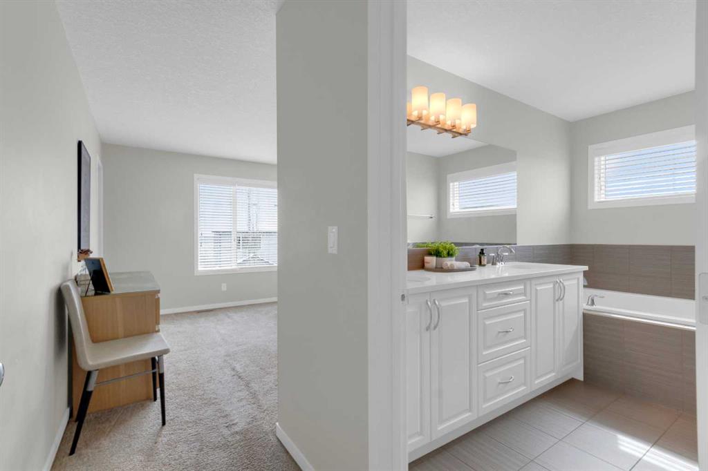 This is a property that is sure to impress! The main foyer welcomes you and is just a suggestion of the caliber of this home. This home presents a beautifully laid out, open floor plan and you will love the kitchen which offers a real "WOW" factor with it's abundance of cabinets and massive island with breakfast bar seating! The ambiance is apparent throughout the home with its modern decor and the main level featuring engineered hardwood floors, an open dining area and a spacious great room to relax and enjoy the warmth of the corner fireplace, all open to the kitchen. On the upper level, there is everything you would expect... a spacious bonus room with lovely large windows offers the perfect area for the family to "kick back" and watch your favourite movies or enjoy game nights! The primary bedroom offers a 5 piece spa like ensuite, featuring double sinks, a stand alone shower and relaxing soaker tub. You will also appreciate the organization that the wall units provide in the walk in closet, which are included. Two additional bedrooms and a 4 piece bathroom complete this upper level. Sliding glass doors off the kitchen open to a two tiered deck, on the upper level there is a gas line which will provide the perfect location for your barbeque, then step down to the lower level which offers a bit more privacy and plenty of room for patio furniture. Head down to the lower level where you will find a large open area with roughed in plumbing for future development. A few more features to be aware of, are the triple pane windows, concrete walkway to the rear yard, pie shaped lot and walk through pantry. This property checks all the boxes and is a must see!