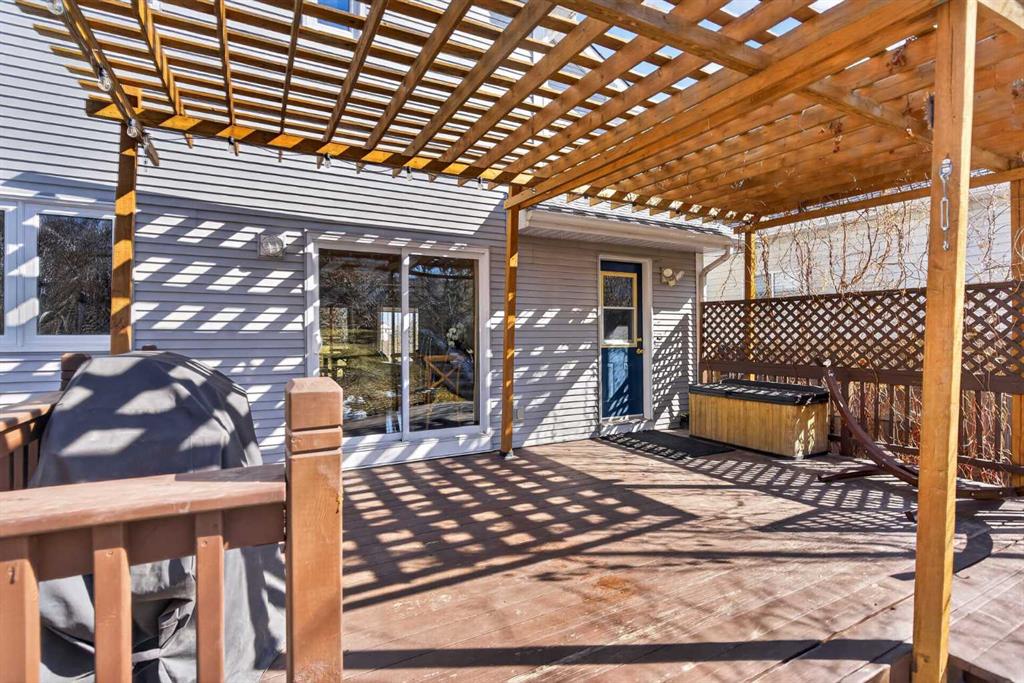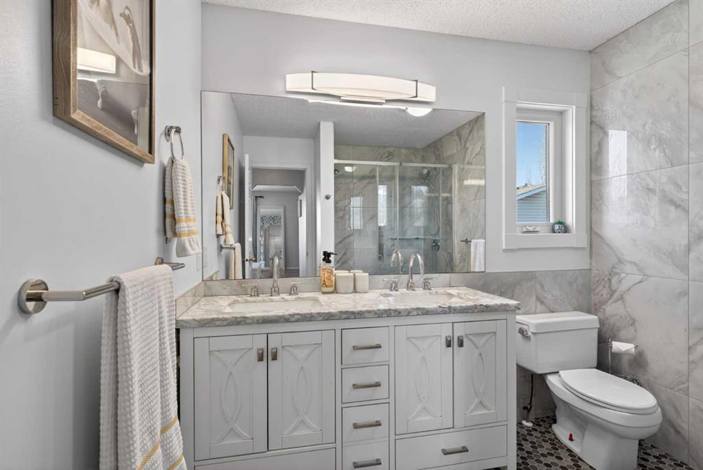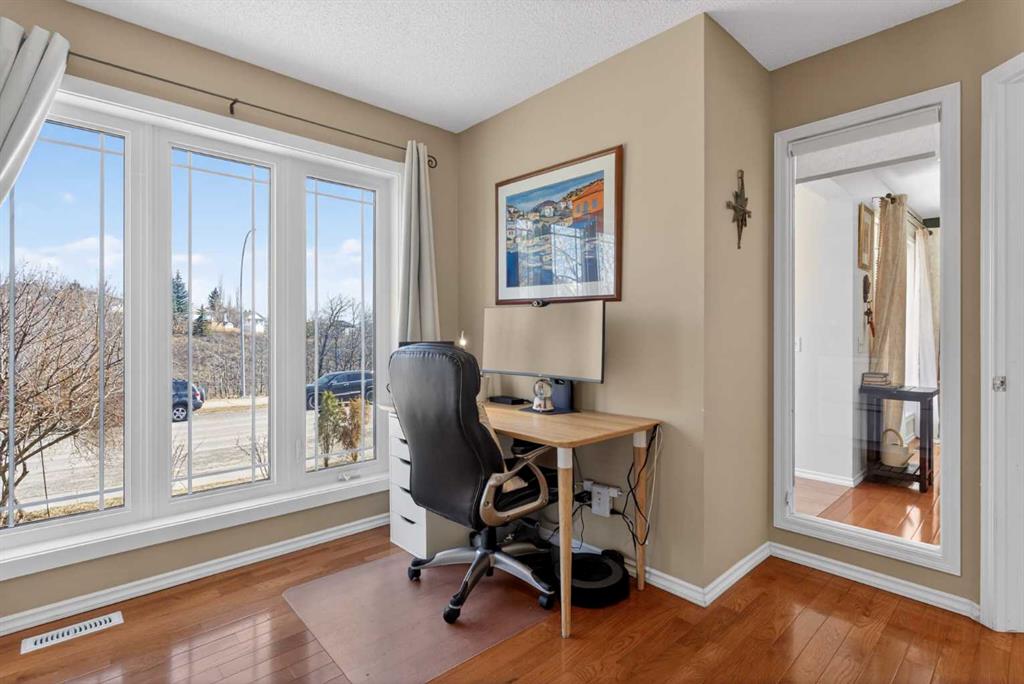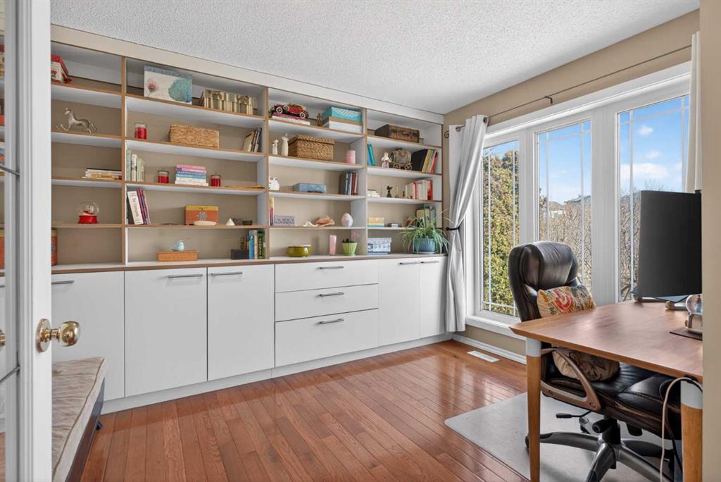 Exceptional natural beauty outside; incredible renovations inside: 97 Tuscany Valley View NW is on the only front-facing overlook of 12 Mile Coulee Ravine/Creek/Paths, visible from Verandah, Living Room, Office, Primary and Bed 2. 1.5 blocks away are Tuscany’s Clubhouse, Tennis Court, Rink, Playgrounds and a year-round Event/Program locale for all lifestyles: ideal setting, rarely available, with a perfect property as the cherry on top! This gorgeous 1745 + 793 sq ft home exceeds expectation, featuring a wealth of fine finishes, most during the current ownership: rich hardwood and stylish tile through the Main and Upper Floors, roller blinds, curtains, feature paints, wall-paper, lighting, plumbing fixtures including a water filter, and more. Enjoy the completely equipped, contrasting ceiling-height Kitchen with dark cabinets, glass insert and roll-up doors, pot+pan drawers, subway tiles, built-ins/pull-outs, white quartz counters, walk-in + dual pantry cabs, stainless appliances (newer fridge + dishwasher), plus an all-gas range. Expansive windows, some newer with added UV protection, patio and french doors, all pour light through the elegant layout, and updates extend to 2024 furnace and 2025 water tank. The fenced, landscaped West-backing Lot, one of the longest on the block, is a retreat with lilacs, poplars, fruits and vines, 2025 brick patios, safe wide walks front and rear, 20’ wide deck, 2020 pergola, and 23.5’ x 25.8’ oversized Garage with built-ins, 3rd hose tap, 2nd electrical panel, new roofs 2022 and solar panels on home 2024. The balanced plan starts with Foyer and closet, Office Study with custom shelving, room for couch and a massive Living Room with refinished fireplace, all ravine-view. To the rear are a remodeled Half Bath, huge Dining and combined Mud + Laundry with SS washer, dryer and sink, cabinets and shelves. There are two entry-exits to the back, for efficiency. Upstairs, the view is maximised in two of the 3 over-sized Bedrooms, the Primary has a big Walk-in Closet and renovated 2-sink 5-piece Ensuite, tile and glass Shower with dual-heads, done with the Main Bath vanity/toilet and floors in 2019. The most unique area awaiting discovery is the cozy finished Basement with open Family/Media Room, free-stand Fireplace with thermostat, a Games-Rec, space for Gym-Workout, a 3rd full Bathroom, plus big Guest Bed-and-Relax-Suite (just needs egress window officially). Last but not least, do NOT miss the "Secret Room" through the rotating cylinder-entry – what will it be? A private (and awesome) space for hobbies with 2-basin sink – this was a dark room for photography, so also has a fan maybe for 3D print shop, kids' play area, superhero change room, speak-easy, storage or magical mystery tour! See the detailed iGuide Floor Plans, 3D Tour for preview before your visit but do not waste time – will not last long!