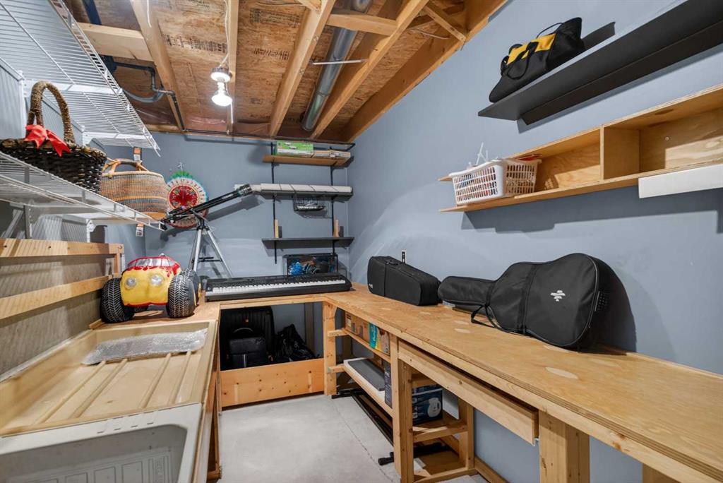 basement and garage workbench/shelving, photo room fan and sinks, garage keypad, 2nd elec panel (garage), slide and play structures, pergola with trellis and shades, medicine cabinets