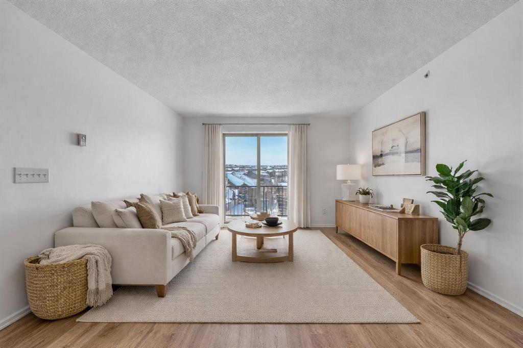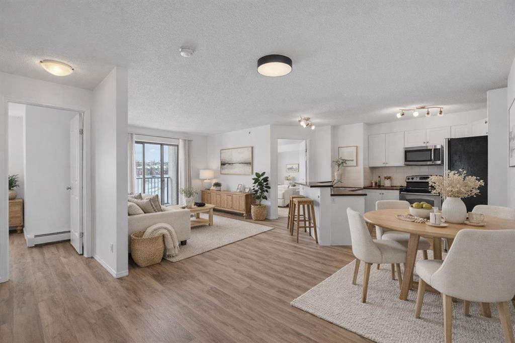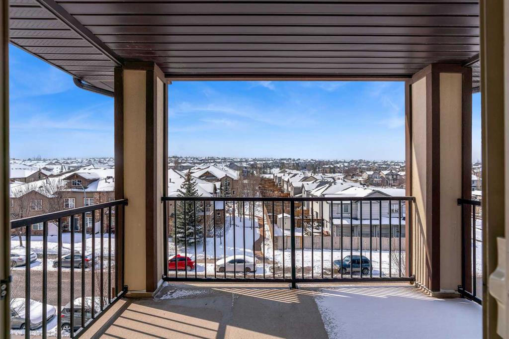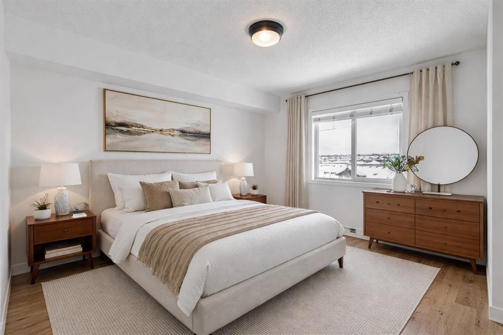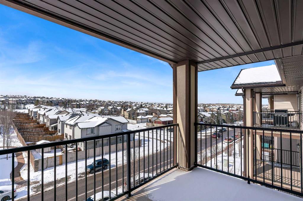 Perched on the top floor in the ever-popular community of Panorama Hills, this beautifully updated condo offers an inviting blend of comfort, style, and everyday convenience. Spanning approximately 850 sq ft, the thoughtfully designed layout strikes a perfect balance between open-concept living and well-separated bedrooms, creating a space that feels both connected and private. With LVP flooring and neutral paint tones, the home presents a clean, modern feel from the moment you step inside. The kitchen is both practical and polished, featuring generous counter space, a raised breakfast bar ideal for casual dining or hosting, and a full stainless steel appliance package. The west-facing orientation fills the home with natural light throughout the afternoon and evening, offering beautiful sunset views from both the living area and the oversized covered balcony. Whether you're unwinding after a long day or hosting friends for a summer BBQ, this outdoor space is a true extension of the home. The primary bedroom is a comfortable retreat, complete with a walk-through closet and a private 4-piece ensuite. A second bedroom, also west-facing, is bright and versatile—ideal for guests, a home office, or additional living space. In-suite laundry with extra pantry and storage options adds to the home’s everyday functionality.