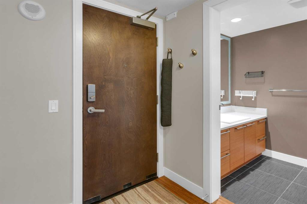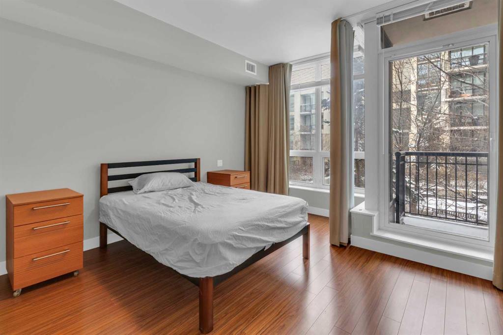 Experience upscale urban living in this stunning 2 bedrooms + Den, 2 bathrooms condo (859 square feet) at the prestigious Waterfront Calgary. Located in the Flats, this beautifully designed unit features quartz countertops, stainless steel appliances, spacious rooms, and an open-concept layout perfect for modern living. The primary suite offers a private retreat complete with a relaxing 5 pc ensuite with dual sinks, standup shower and tub. 2nd bedroom situated on the opposite side of the living space and a 3 pc bathroom. Den w/built in desk. Situated on the second floor, the unit overlooks the serene central courtyard and gardens, providing a peaceful view. Residents enjoy premium amenities such as 24-hour concierge service, a fully equipped fitness centre, spa facilities, and a stylish party room. Just steps away from some of Calgary’s top shops and dining, as well as the beautiful Prince’s Island Park and the extensive river pathway system, this home offers the perfect balance of luxury and convenience. Unit comes with 1 Underground Parking and Storage Unit on the same level the second level.