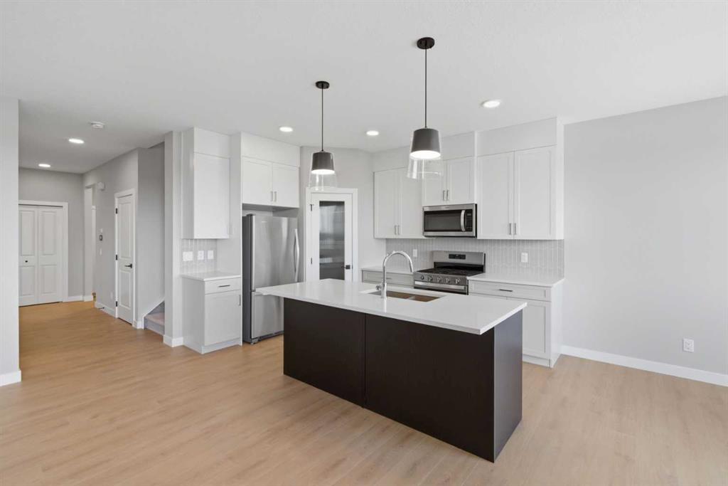 IMMEDIATE POSSESSION | 2,028 SQ.FT. | 3+1-BED | 3-BATH | GOURMET KITCHEN | SEPARATE ENTRANCE | DECK | FRONT LANDSCAPING | Built by Crystal Creek Homes, this two-storey in Belvedere offers over 2,000 sq. ft. of modern living space with durable HARDIE BOARD siding, upgraded features, and front landscaping. The open main floor features a bright living area with a stylish linear FIREPLACE and an inviting dining space that opens onto the REAR DECK where you can enjoy morning sun and open views with NO REAR NEIGHBOURS The gourmet kitchen includes a GAS RANGE, wall oven, full-height cabinetry, stainless-steel appliances, and a large island ideal for everyday use or entertaining. Upstairs, a central bonus room complements three spacious bedrooms and a conveniently located laundry room. The primary suite offers a walk-in closet and a 4-PIECE ENSUITE with dual vanities and a walk-in shower. The 9’ BASEMENT includes a separate SIDE ENTRANCE, offering future legal-suite potential (subject to City approval and permitting). Set in Calgary’s vibrant southeast community of Belvedere, residents enjoy easy access to parks, pathways, schools, East Hills Shopping Plaza, and major routes. Built to Crystal Creek’s high standards and covered by THE ALBERTA NEW HOME WARRANTY PROGRAM—ready for you to move in and make it your own.
