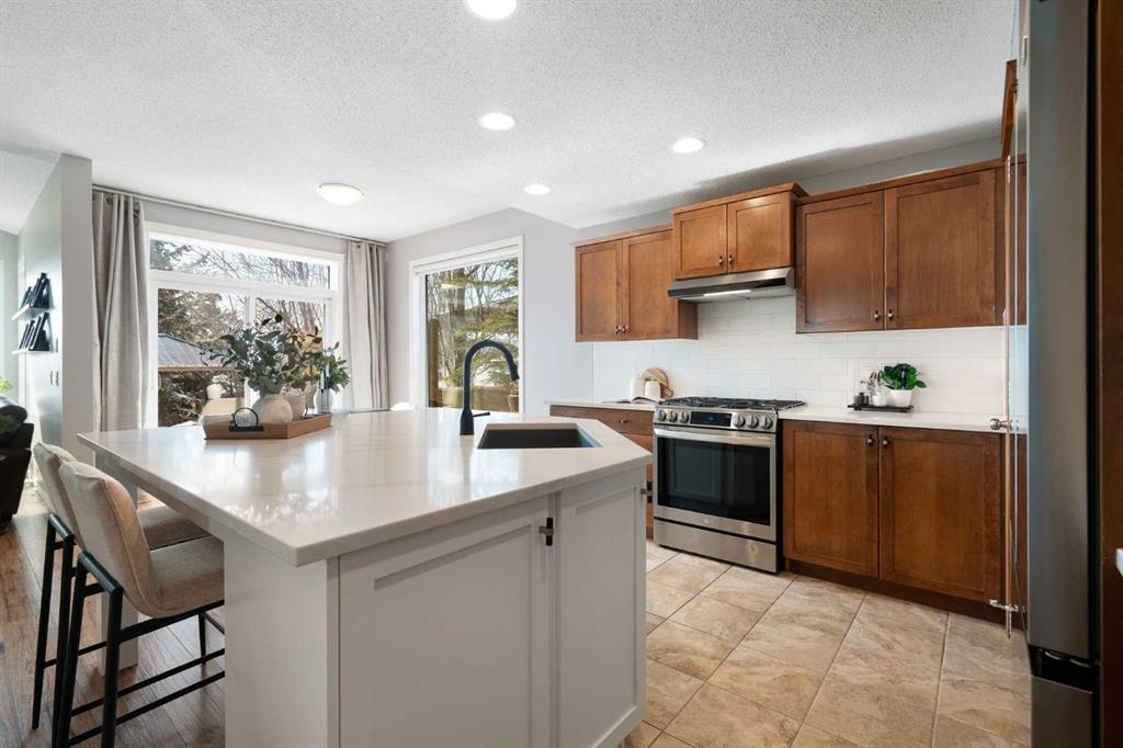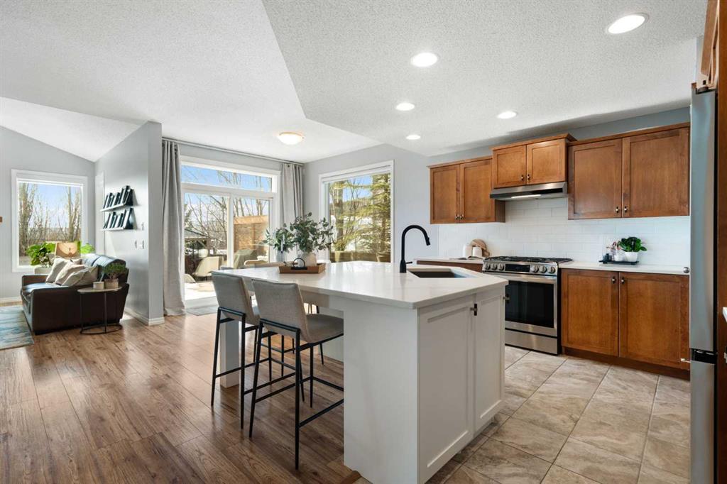 Situated on a large south facing pie-shaped lot in a quiet cul-de-sac, the property offers a fully fenced yard with a deck and is located close to parks, pathways, schools, and amenities.