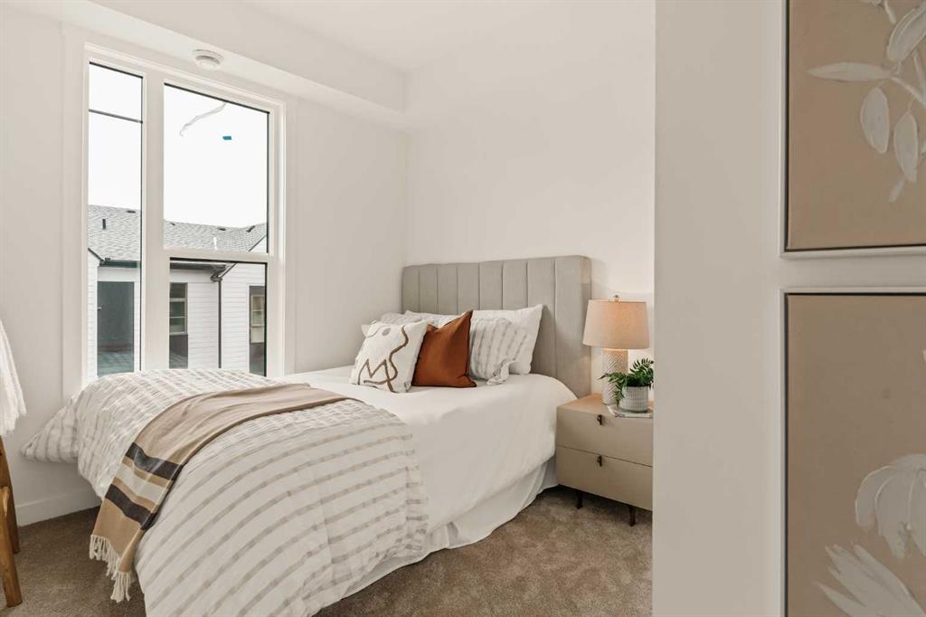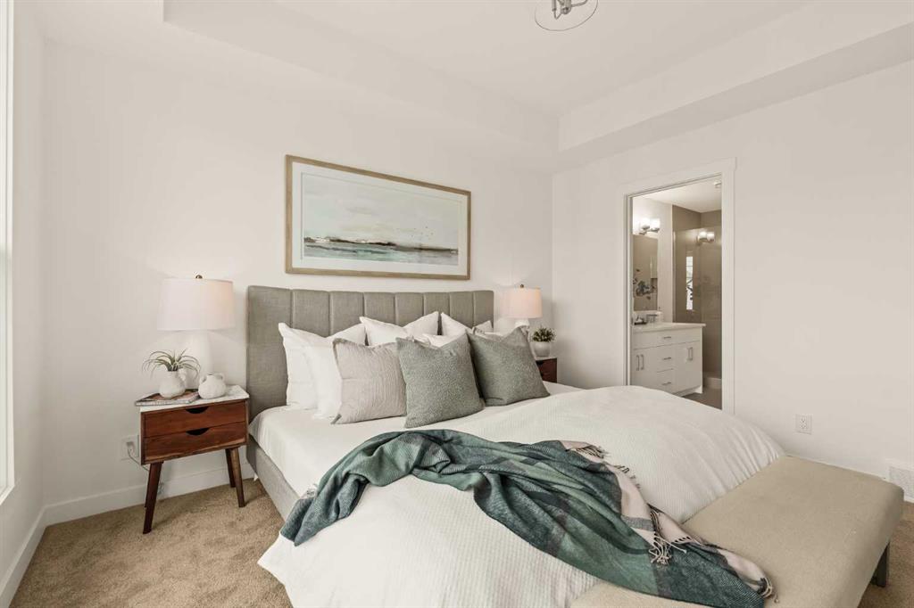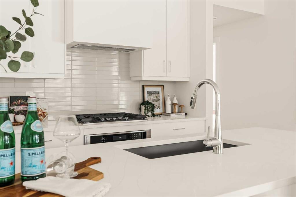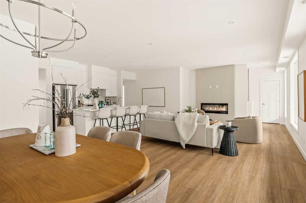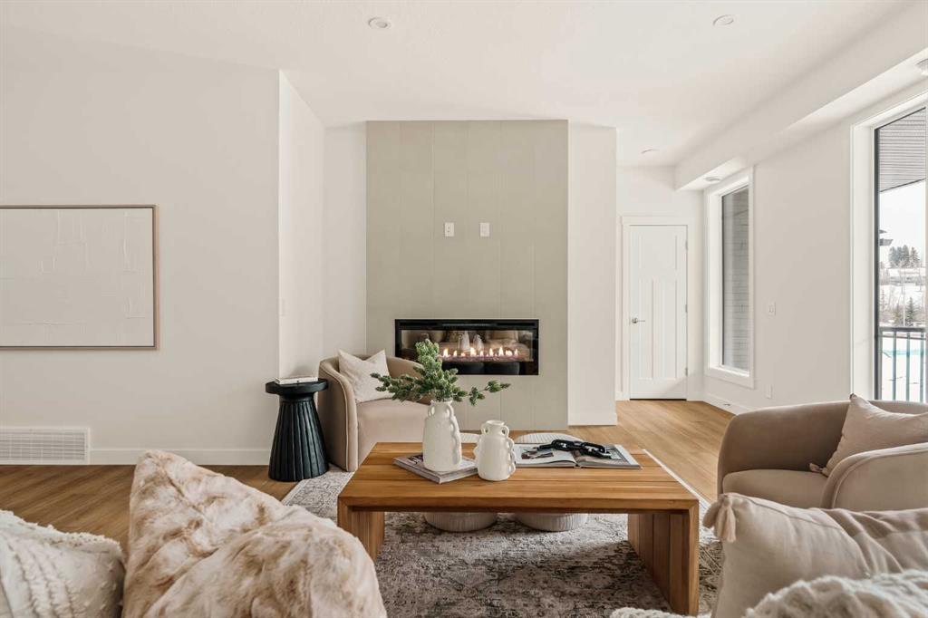 Offering bungalow-style living at its finest - the brand new Hyde at Crown Park presents a rare and refined take on single-level living. This is an exceptional opportunity to own one of the final brand-new bungalow-style townhomes in this highly sought-after inner-city community. Offering nearly 1,600 sq. ft. on a single level, this thoughtfully designed home features 3 bedrooms, 2 bathrooms, an oversized private double attached garage, and exceptional storage throughout - perfectly tailored for those looking to downsize without sacrificing the space, comfort, and functionality of a larger home. Set in the heart of Crown Park, this residence is ideally positioned with a sun-filled southwest-facing balcony overlooking the central park, just minutes from downtown Calgary. It’s the perfect balance of lock-and-leave convenience and vibrant inner-city living. The main living space is designed for both everyday ease and effortless entertaining. A timeless white kitchen anchors the home, seamlessly connecting to the dining and living areas, while an expansive wall of southwest-facing windows floods the space with natural light. Elevated finishes include quartz countertops and a premium built-in appliance package featuring an integrated hood fan, a gas cooktop, and a built-in oven. The spacious living room centers around a striking floor-to-ceiling tiled fireplace and offers ample room for gathering, while the generous dining area comfortably accommodates a full-size table for hosting family and friends. Resilient, warm-toned vinyl plank flooring flows throughout the main living area, making it ideal for children and pets. Thoughtfully designed for privacy, the primary retreat is tucked away from the secondary bedrooms, separated by the laundry area. This serene space features a large walk-in closet and a spa-inspired ensuite with dual vanities and a walk-in shower with 10mm glass. Two additional bedrooms provide flexibility for guests, a home office, or media room, supported by a well-appointed full bathroom. A dedicated laundry room with added cabinetry and folding space enhances everyday functionality. Outdoor living is equally impressive with an ~26’ x 8’ covered southwest-facing balcony, complete with a gas line, hose bib, and A/C rough-in - designed to maximize sunlight and usability throughout the seasons. The lower level offers access to the oversized double attached garage along with two substantial storage areas - a rare and valuable feature in bungalow-style living. Located within one of Calgary’s most exciting new inner-city communities, this home offers a true low-maintenance, single-level lifestyle backed by full builder warranty and Alberta New Home Warranty. Opportunities like this are exceptionally rare - single-level townhomes with private double garages, in a location like this, simply don’t come available often.