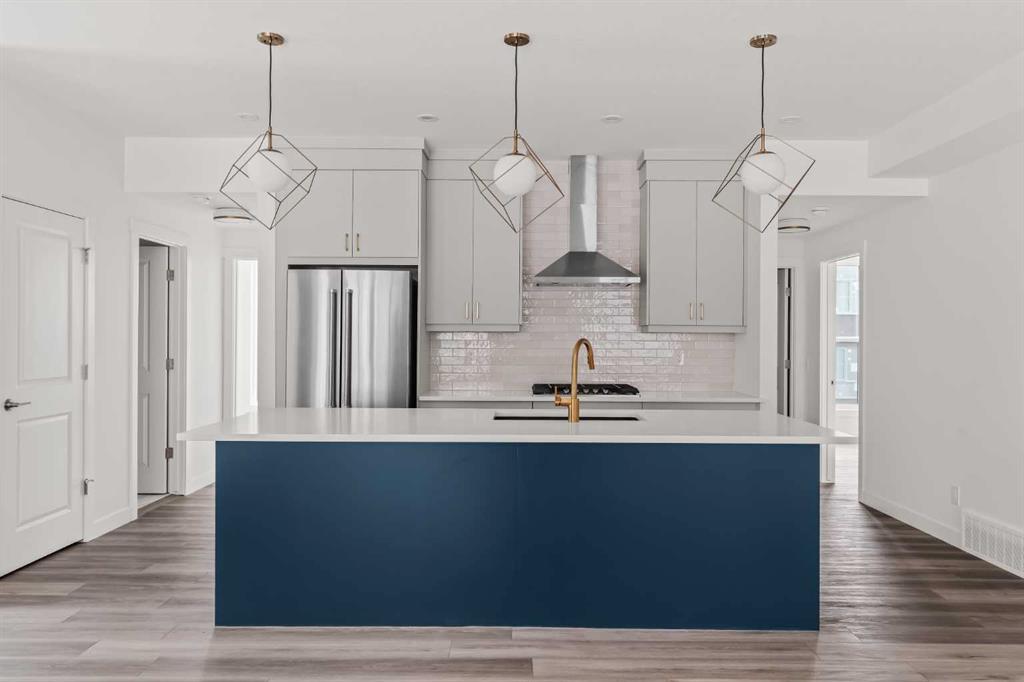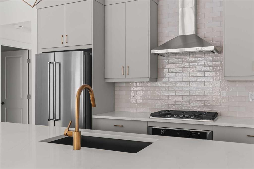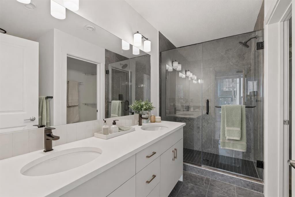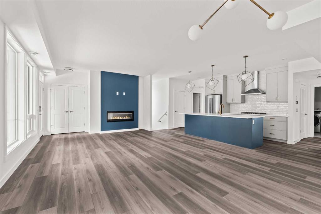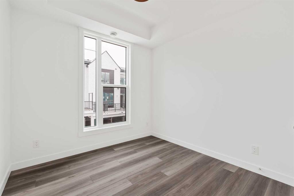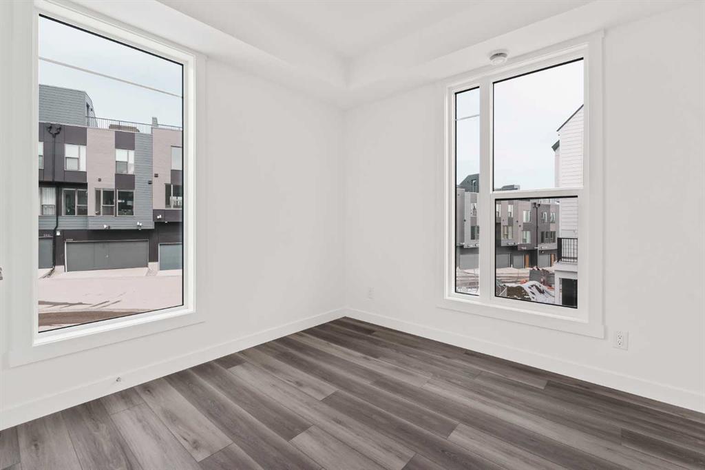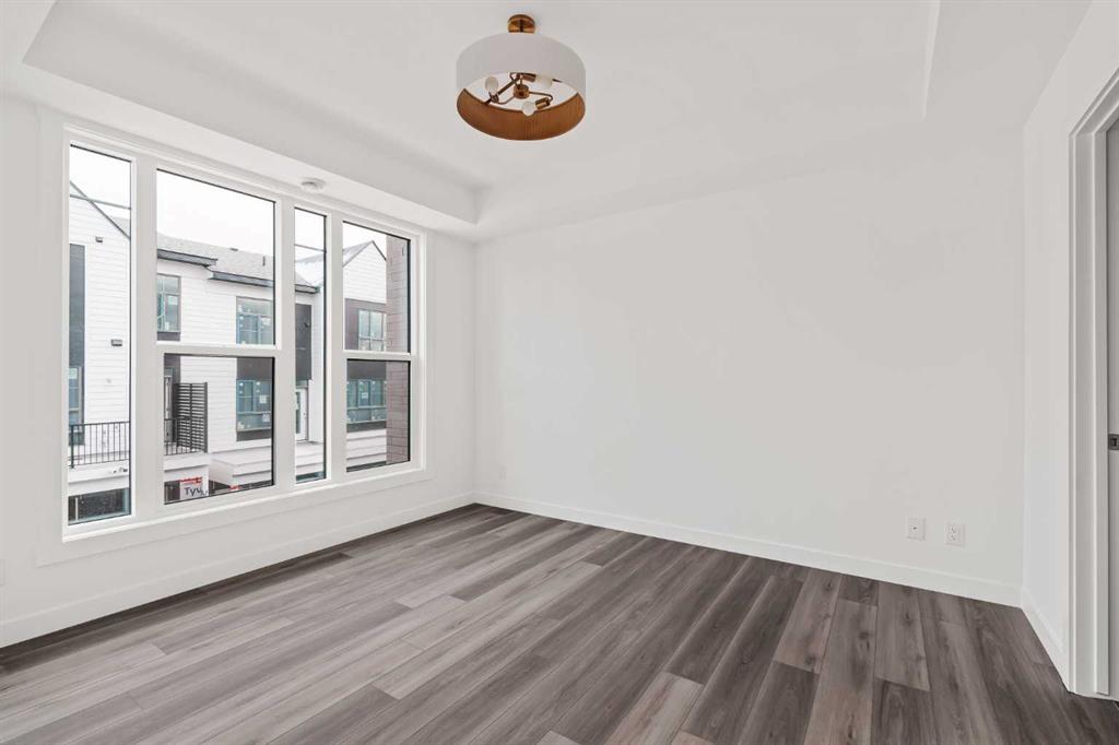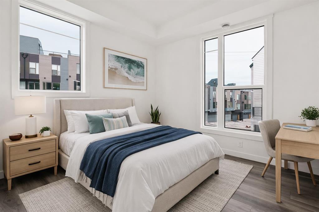 The Regent at Crown Park: the VERY LAST brand new opportunity for this bungalow-style townhouse within Calgary's coveted inner-city development. This beautifully executed END-UNIT bungalow-style townhome offers true single-level living without compromise. Designed with downsizers in mind, this rare floor plan delivers the ease of a bungalow lifestyle while preserving what matters most: space, storage, and an oversized private double attached garage - all within a beautiful and bright space designed for entertaining. Ideal for travelers or those seeking simplicity, this offers maintenance-free, lock-and-leave living at its best: no landscaping or snow removal required. This thoughtfully designed home offers 1,348 sq. ft. of well-planned living space on a single level, with an additional lower level featuring extensive storage / hobby room and direct access to the oversized double garage. At the heart of the home, a stunning open-concept living space is designed for both everyday comfort and effortless entertaining. The central kitchen seamlessly connects to the living and dining areas, and a full wall of southwest-facing windows fills the home with natural light. Timeless finishes include warm-toned flat-panel cabinetry with an accent island, white quartz countertops, and a premium built-in appliance package featuring a gas cooktop, built-in oven, and chimney hood fan - ensuring the kitchen is as functional as it is beautiful. A striking central fireplace anchors the great room, creating a warm focal point and inviting gathering space, while the generous dining area easily accommodates a full-size table and buffet. Privately positioned at the rear of the home, the primary retreat offers a quiet, secluded escape, complete with a large walk-in closet and a spa-inspired ensuite featuring dual vanities and a tiled walk-in shower with 10mm glass. A centrally located laundry room with upper cabinetry separates the primary suite from the secondary bedrooms. Two additional bedrooms and a full bathroom provide flexibility for guests, a home office, or a media room, ensuring the home adapts effortlessly to your lifestyle while maintaining strong long-term resale appeal. The lower level continues to impress with an oversized utility space (approx. 17' x 7') perfect for additional storage / hobby space. These features, along with direct access to the oversized double attached garage, are rarely found in a bungalow-style townhome. Outdoor living is equally exceptional with a private, covered southwest-facing patio spanning over 26 feet. Overlooking the central park and complete with a gas line, hose bib, and A/C rough-in, this design offers comfort today and flexibility tomorrow. Situated just minutes from downtown and surrounded by established amenities, Crown Park offers the confidence of a mature community paired with the comfort of a brand-new home. This is the final opportunity - don't wait!