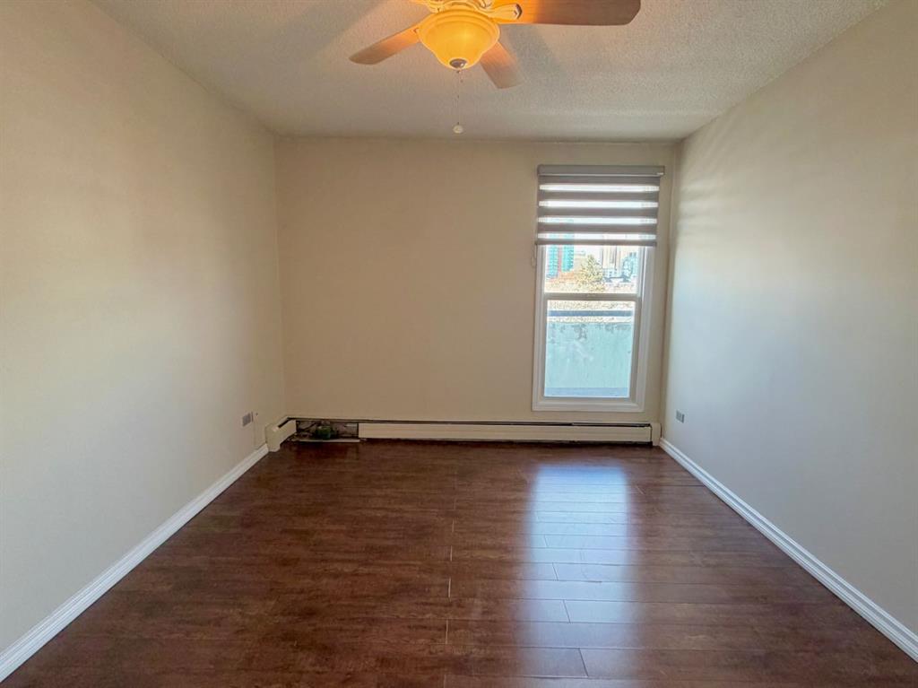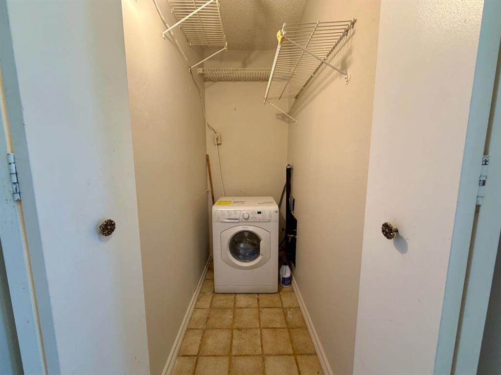The bright bedroom includes laminate flooring and a large closet with built-in organizers. A 4-piece bathroom and in-suite laundry and storage complete the space. Condo fees include all utilities except electricity.