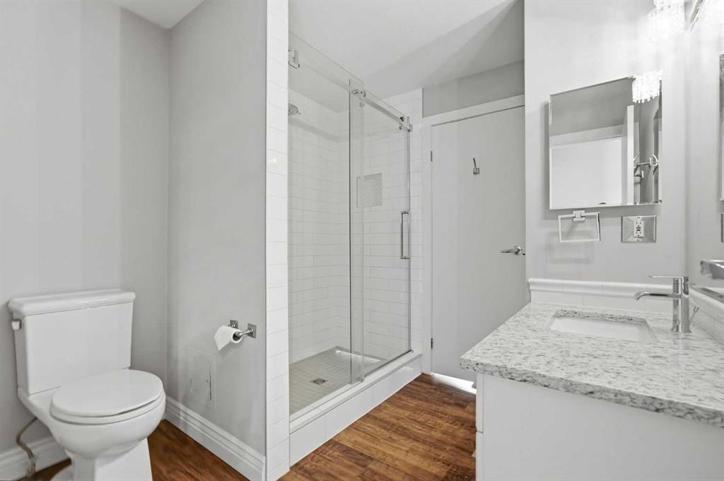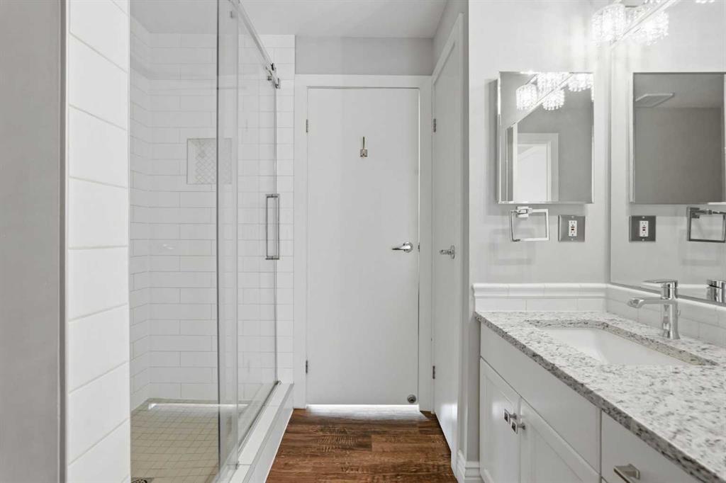 Welcome to this stunning TOP-FLOOR PENTHOUSE SUITE in Cliff Bungalow! This beautifully renovated unit is the largest in the building and offers 2 bedrooms, 2 bathrooms, and two underground parking spots each with its own storage locker. A rare and highly desirable combination. Designed with a smart, functional layout, this condo features South-facing exposure, filling the space with an abundance of natural light throughout the day. The timelessly updated kitchen showcases high-end finishes, including stainless steel appliances, a subway tile backsplash, granite countertops and white cabinetry with ample storage. Hardwood flooring runs throughout the unit adding warmth and elegance. Both bedrooms are generously sized and feature custom California closets and their own bathrooms for privacy and convenience. The spacious primary bedroom easily fits a king sized bed and is complete with a 4pc ensuite bathroom featuring custom tile and a glass enclosed shower. A dedicated laundry room with additional storage further enhances everyday functionality. Step outside onto one of the largest balconies in the building, perfectly positioned to enjoy sunny days year round. Surrounded by mature trees, this outdoor space offers exceptional privacy while maintaining a bright, open feel thanks to its ideal southern exposure. Situated on a quiet, tree-lined street, this PET FRIENDLY building (allowing up to two pets with no breed, height, or weight restriction?s) is just steps away from 17th Ave and minutes to Mission. Enjoy walking access to trendy restaurants, coffee shops, parks, tennis courts and the vibrant 4th street and 17th Ave districts. This neighbourhood brings the best of inner city living right to your doorstep.