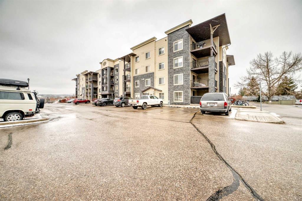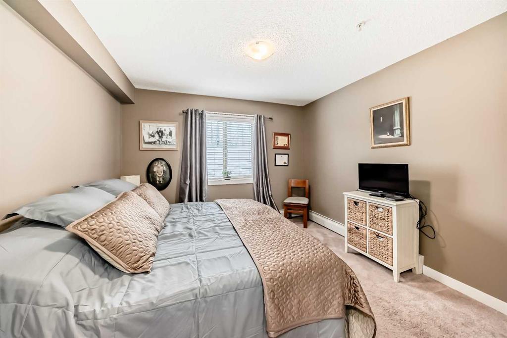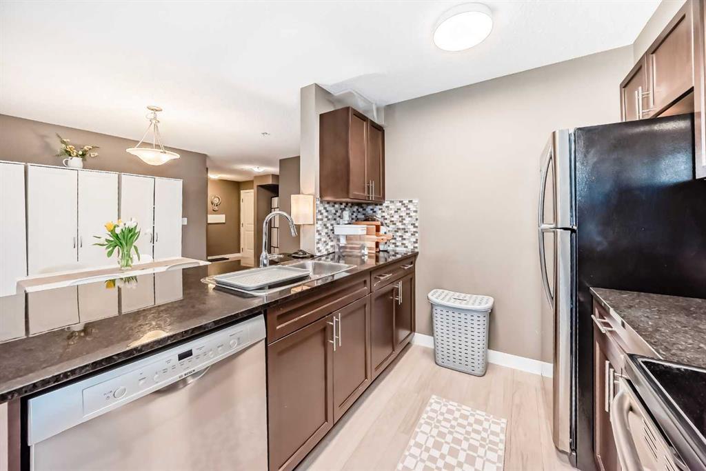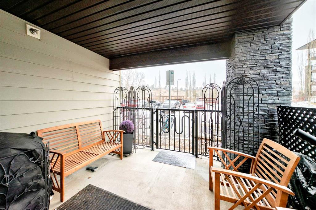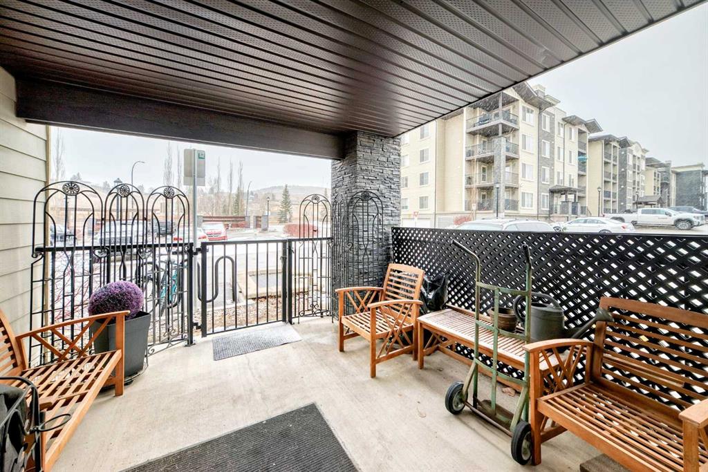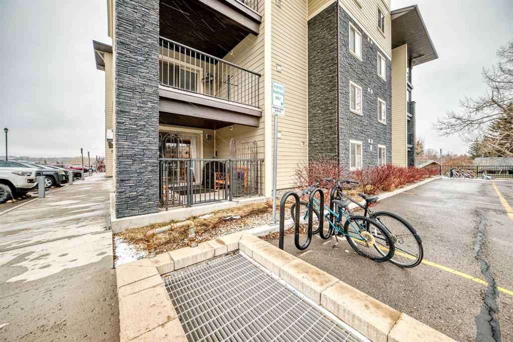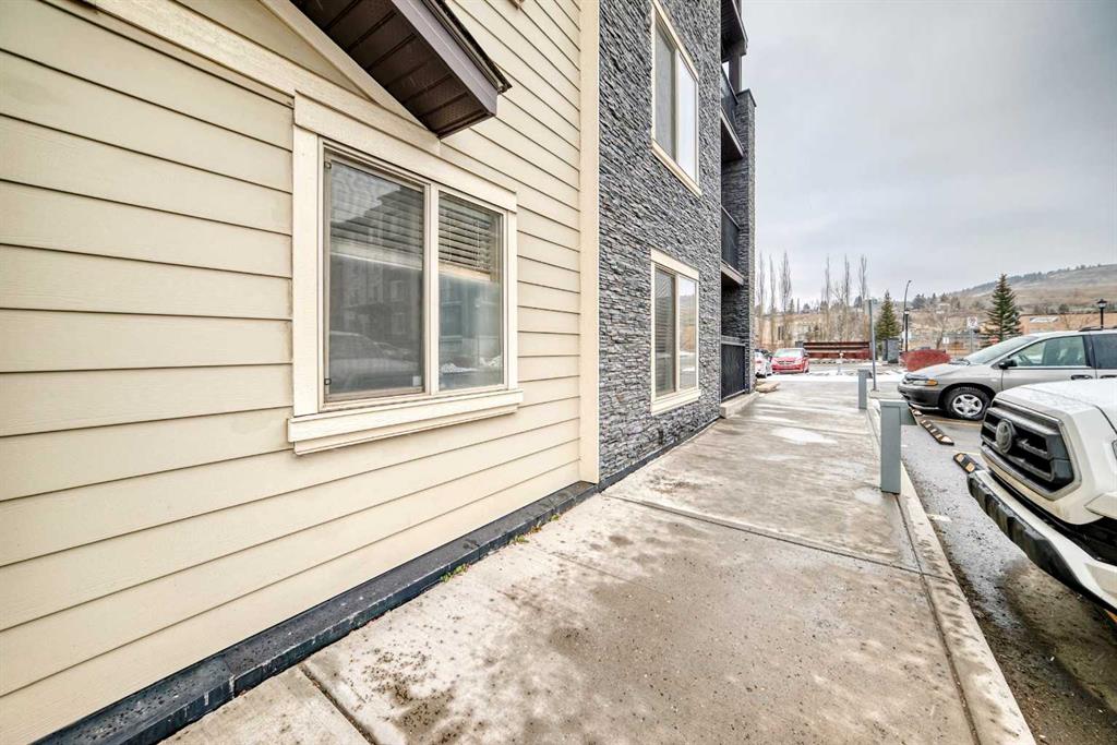 Welcome to this beautifully maintained corner ground floor apartment in the heart of Glenbow, Cochrane, offering a functional layout and exceptional convenience. This bright and inviting home features 2 bedrooms and 2 bathrooms, perfect for first time buyers, downsizers, or investors. The well appointed kitchen showcases stainless steel appliances including a new Bosch dishwasher, granite countertops, tile backsplash, ample cabinetry, and a convenient breakfast bar. New lighting throughout the home enhances the modern feel, while the spacious primary bedroom offers a walk through closet leading to a private 3 piece ensuite complete with granite countertops and a large stand up shower. A second bedroom and a full 4 piece bathroom provide flexibility for guests, family, or a home office. Both bathrooms have been updated with new shower heads. An in suite laundry room with additional storage adds everyday practicality, while the welcoming front entry features a full size coat closet. Ground floor access makes this home especially appealing for those seeking a no stairs lifestyle. This unit includes one titled underground parking stall (#291) and one assigned surface stall (#139). Ideally located just steps from Cochrane’s restaurants, coffee shops, grocery stores, parks and walking paths.