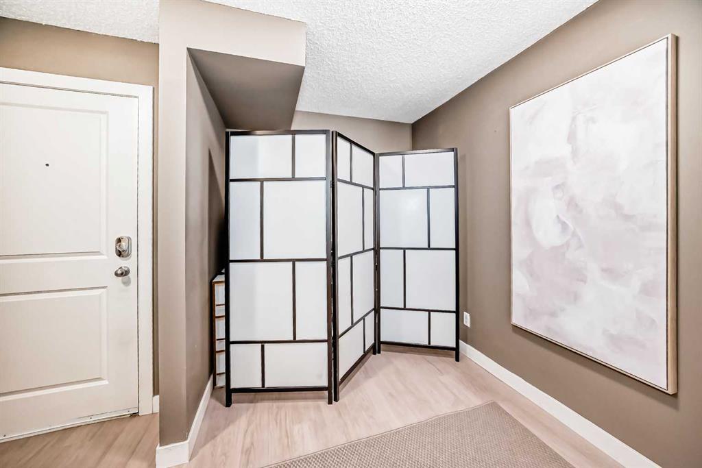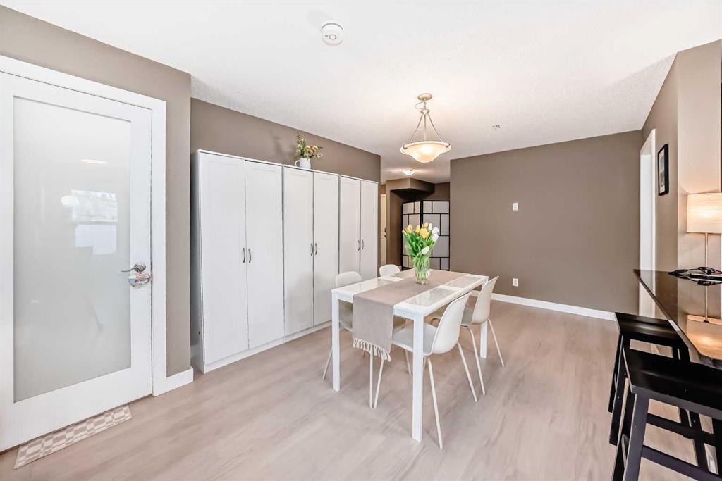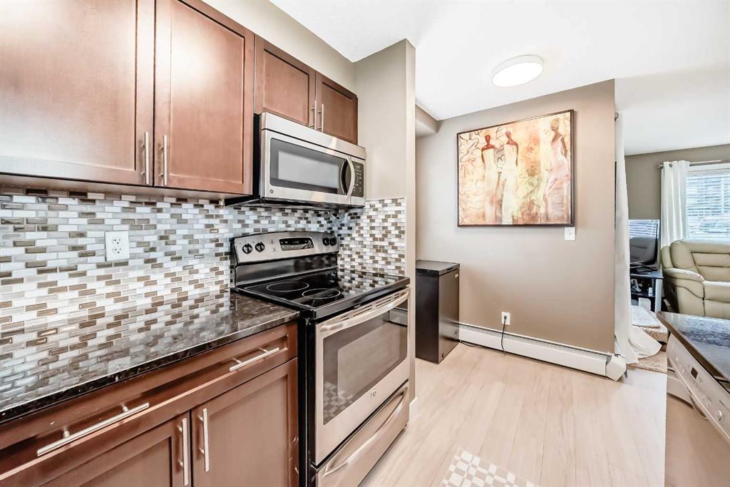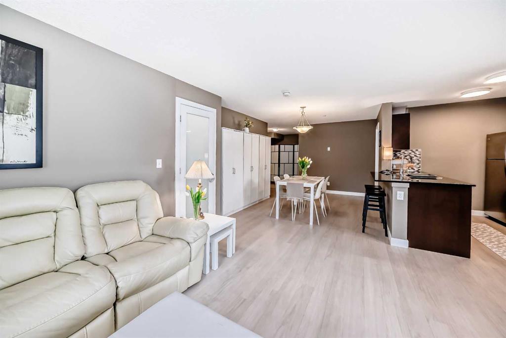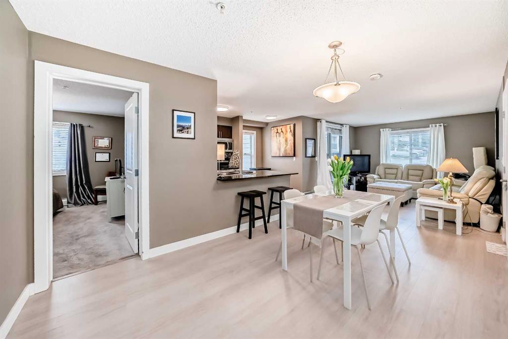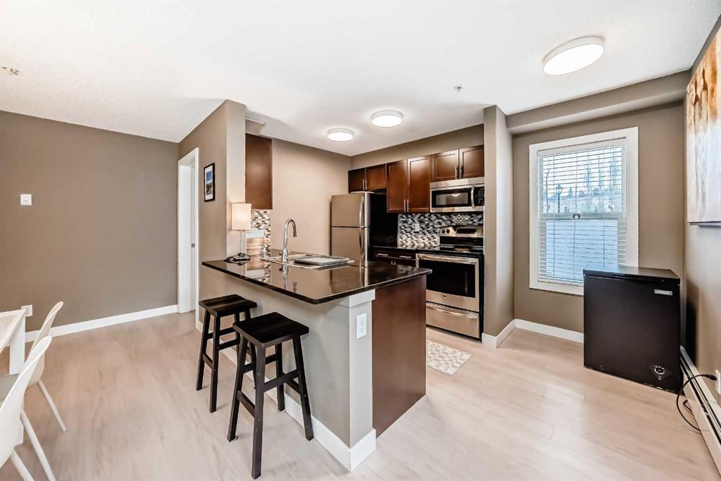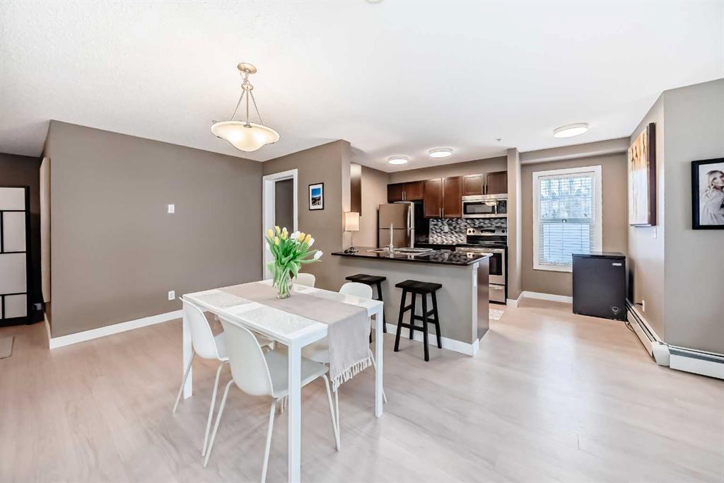 Welcome to this beautifully maintained corner ground floor apartment in the heart of Glenbow, Cochrane, offering a functional layout and exceptional convenience. This bright and inviting home features 2 bedrooms and 2 bathrooms, perfect for first time buyers, downsizers, or investors. The well appointed kitchen showcases stainless steel appliances including a new Bosch dishwasher, granite countertops, tile backsplash, ample cabinetry, and a convenient breakfast bar. New lighting throughout the home enhances the modern feel, while the spacious primary bedroom offers a walk through closet leading to a private 3 piece ensuite complete with granite countertops and a large stand up shower. A second bedroom and a full 4 piece bathroom provide flexibility for guests, family, or a home office. Both bathrooms have been updated with new shower heads. An in suite laundry room with additional storage adds everyday practicality, while the welcoming front entry features a full size coat closet. Ground floor access makes this home especially appealing for those seeking a no stairs lifestyle. This unit includes one titled underground parking stall (#291) and one assigned surface stall (#139). Ideally located just steps from Cochrane’s restaurants, coffee shops, grocery stores, parks and walking paths.