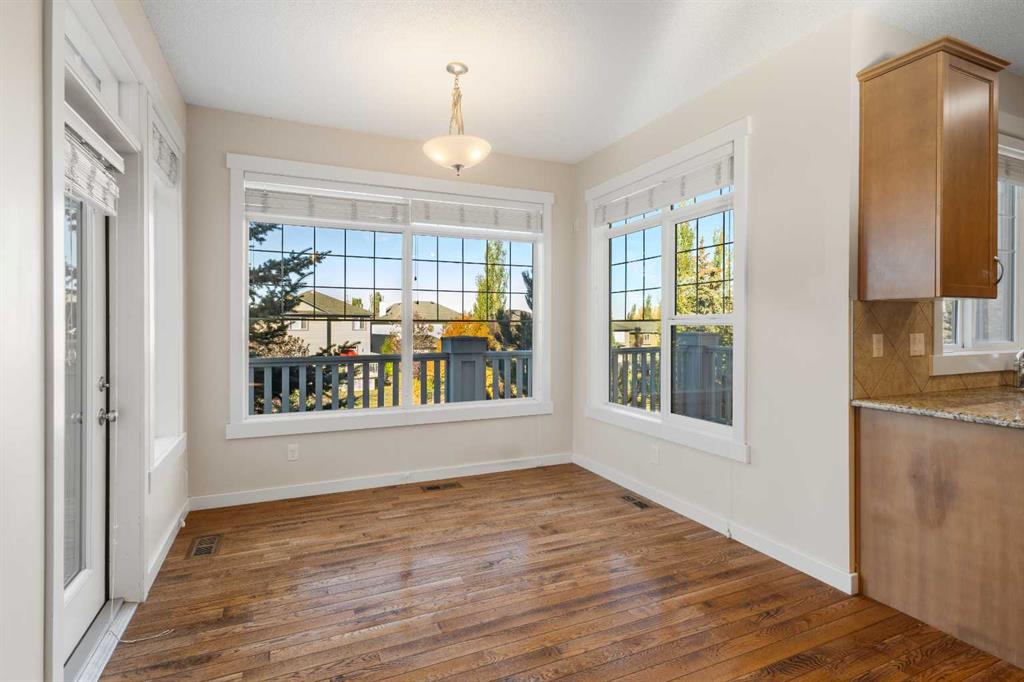 Welcome to this beautifully designed 5-bedroom, 3.5-bathroom home located on a quiet cul-de-sac and backing onto green space with direct access to walking paths. Boasting over 3,100 sq. ft. of fully developed living space, this exceptional property offers the perfect blend of style, space, and functionality for modern family living. Step inside to a foyer with custom built-in coat and shoe storage, leading into the open-concept main level adorned with rich hardwood flooring and flooded with natural light from expansive west-facing windows. The bright and airy living room features a cozy gas fireplace and flows seamlessly into the dining area and kitchen. The kitchen is complete with elegant wood cabinetry, granite countertops, stainless steel appliances, a separate pantry, and a large central island, ideal for casual dining and entertaining. Just off the dining area, step outside to a generous elevated deck, perfect for summer BBQs and relaxing. Upstairs, unwind in the spacious bonus room with vaulted ceilings, an ideal space for movie nights or a home office. The upper level also offers three well-sized bedrooms, including a luxurious primary suite with a walk-in closet and a spa-inspired 5-piece ensuite. The fully finished walk-out basement adds even more versatile living space, featuring a large recreation room, full 4-piece bathroom, and two additional bedrooms making it perfect for extended family or guests. Outside, enjoy the beautifully landscaped backyard with patio. Additional highlights include a double attached garage, excellent curb appeal, and a prime location close to schools, shopping, playgrounds, and public transit. Don't miss this opportunity to own this stunning family home - book your private showing today!