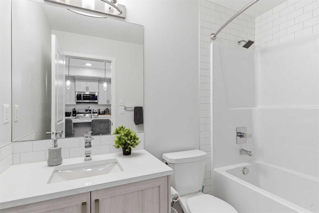 Welcome to Belmont, Calgary's fast-growing, master-planned community designed for modern living with easy connectivity and future growth. Enjoy parks, playgrounds, a growing network of pathways, with quick access to Macleod Trail and Stoney Trail for easy commuting. Belmont is rapidly evolving with major amenities underway, including a major fieldhouse, public library, and a large retail hub. Inside you will find modern finishes, including a large quartz island in the kitchen and LVP flooring throughout the entire unit. The large south facing windows bring in plenty of light. The living room features a beautiful electric fireplace with mantle. The primary bedroom is spacious with a large closet and a 4pce ensuite bathroom with upgraded cabinetry. There is a second bathroom a second full washroom and a convenient in-suite laundry room. This unit comes complete with an underground titled parking space. This condo is pet-friendly and airbnb friendly with board approval. Belmont is planned to become a true lifestyle destination with a future recreation center, schools and a proposed LRT station, positioning it as one of the most complete and convenient communities in Calgary's south.