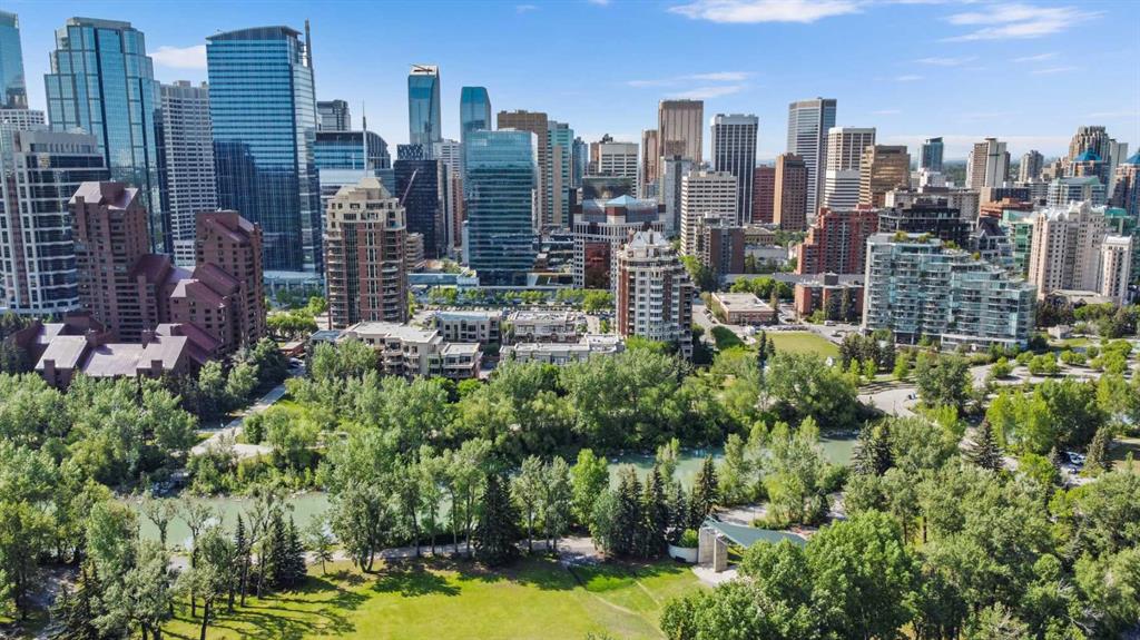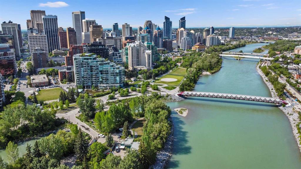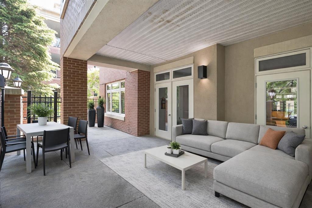 True Boutique Riverfront living in the heart of downtown. The Princeton offers luxury, space, and Location! This unique free standing complex shares only 7 homes. Estate quality finishing on this one of kind main level townhome. A unique unit with direct access to the Bow River and Prince's Island park right from your patio. No elevators or stairs. Boasting an excellent floor plan with 1330 square feet of well designed living space. Granite counters, stainless steel appliances, tile flooring and spacious principal rooms flooded with light and incredible views of the park. The Gourmet kitchen opens up to the large living area, featuring a fireplace, and French doors to a huge private terrace overlooking the river. The master suite is spacious and comfortable. Surrounded by windows, a walk in close, and of course a large ensuite with soaker tub, separate glass / tile shower and dual sink vanities. The second bedroom has lovely park views as it spreads the full north east corner of the suite. The second full bath is just off the hall with easy access for the bedroom and guest powder room. This unit boasts two large patios. The second one is located on the NE corner of the building, offering lots of light and privacy, yet surrounded by mature foliage. This is the perfect spot for the bbq, and extends the space off the kitchen for an al- fresco morning coffee patio. This is one of the most unique units in the Boutique 670 building at the Princeton. Offering you upscale living in a prime location, with townhome access. Just imagine your backyard as a private park overlooking the river. A wonderful four seasons access to a fully treed, lush lawn space, perfect for family bbq's and warm days playing with your dog. This unit features two side by side parking stalls and one large titled storage lockers. A great value, unique and truly iconic, immaculate and ready to move-in for the summer. Some pictures and furniture options for illustration purposes.