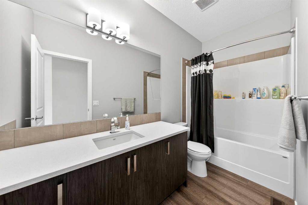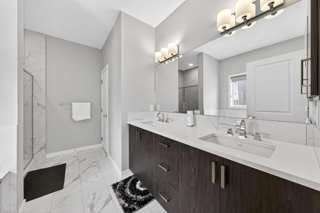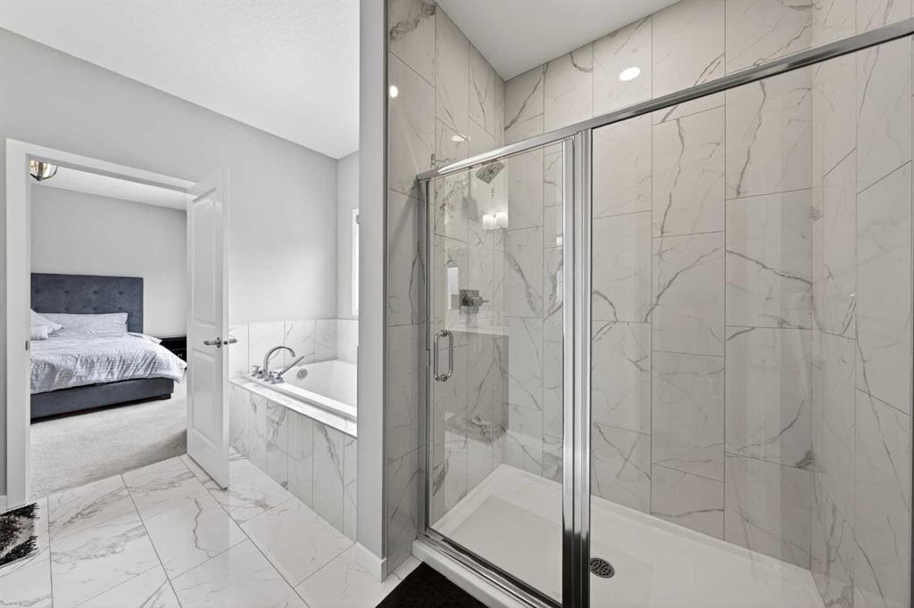 The upper level features a well-proportioned Bonus room, ideal for creating your own relaxing family space. This level offers 4 bedrooms, including two with private ensuites and walk-in closets. The Primary bedroom provides a comfortable retreat with a spa-inspired 5-piece ensuite featuring a double vanity with quartz countertops, a soaker tub, and a tiled standing shower. Another bedroom, filled with natural light from three west-facing windows, also includes its own 4-piece ensuite and walk-in closet. Two additional well-sized bedrooms, a 4-piece bathroom, and a convenient upper-level Laundry room with storage space complete this floor.