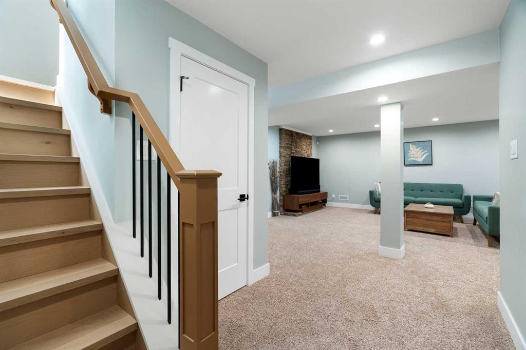 The lower level continues to impress with large windows, two additional bedrooms, a spacious family room with feature wall, a well-appointed wet bar, a third full bathroom, and a dedicated laundry area.