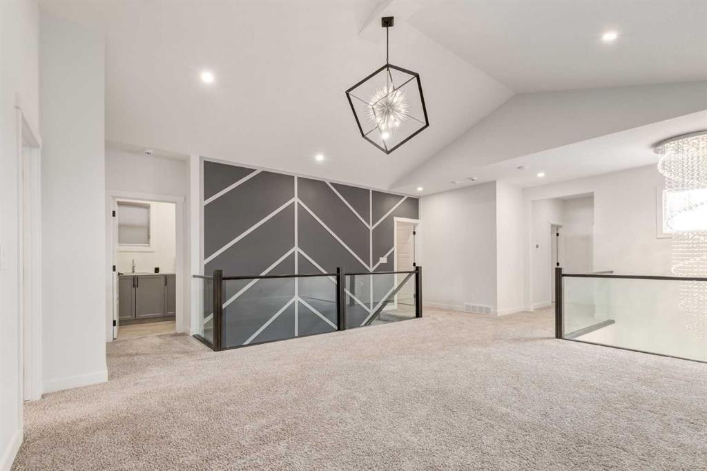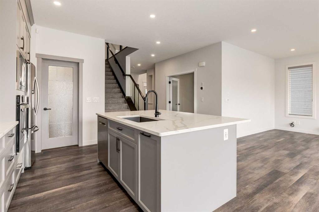 OPEN HOUSE SAT APR 4 FR 1-3. Welcome to your dream home in the heart of Cranston's Riverstone backing onto a forested green belt and pathway leading to the Tree Park. Offering 3,653 SF of developed living space with 3+1 bedroom, 3.5 bathrooms, a walk-out basement and a rare over-sized double garage (20'x25'). Enter into a large foyer with soaring 2 storey height ceilings where the main floor is flooded with natural light from the wall to wall windows. The chef's kitchen features high end stainless steel appliances (including a gas cooktop and a smart refridgerator), large center island with eat bar, quartz countertops, cabinetry extended into dining area and a walk-through pantry. Designer lighting and green space views highlight the dining space with patio sliders that lead to the expansive 28'x12' maintenance free deck encouraging an easy indoor/outdoor lifestyle. The living room also enjoys backyard views and a cozy gas fireplace. A home office, powder room and mud room complete this space. Upstairs you will find a grand vaulted bonus room, conveniently located laundry room and a primary bedroom with walk-in closet and a spa-like ensuite boasting dual vanities, a deep soaker tub and an oversized shower. Both addition bedrooms have walk-in closets and share the 5-piece bathroom. Gather, entertain and unwind in the developed basement with a full service wet bar, family room with a second fireplace and walkout access to the paved and covered 28'x12' patio, 4th bedroom and a 4 piece bathroom. You will LOVE summer entertaining in your maintenance free backyard with artificial turf and dedicated firepit area. Upgrades not be overlooked include central AC, sound proof furnace room with 2 furnaces for dual stage, 5.1 channel home theater wiring, wide internet socket in every room, high-end under lay in basement carpet and painted walls in the garage. Outdoor enthusiasts will love this prime location with miles of riverside pathways, world renowned fishing in the Bow River and community HOA gives access to a private clubhouse with sports courts, spray park, skating rink and playground. Mere minutes to an array of restaurants, shopping, YMCA and Seton Hospital...do not miss this opportunity and book your showing today!