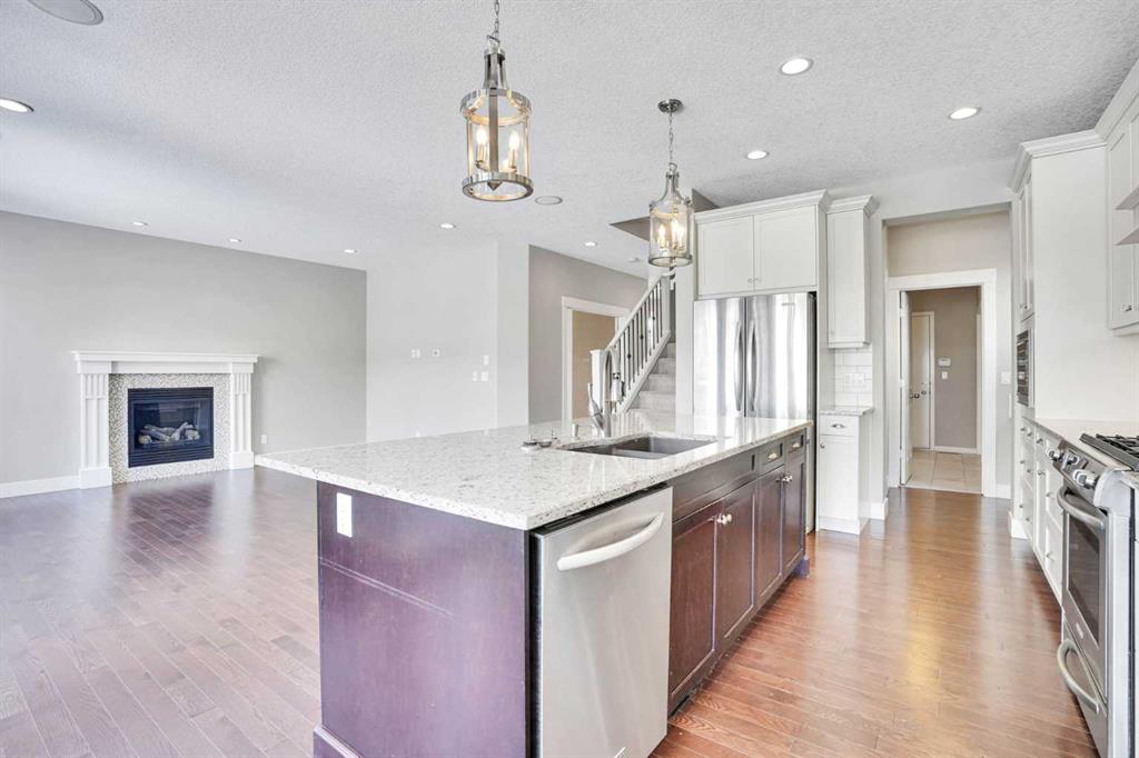 This stunning West Springs home is ideally located in the WALK ZONE for the West Springs School (k-6). The open concept mainfloor features a gorgeous kitchen with gas stove, granite counters, contemporary white cabinets & hardware. A great space for entertaining with an extended dining area, living room with gas fireplace, and separate doors leading to a private office. Upstairs is the large, sunny bonus room for the family to enjoy, a relaxing master bedroom, 5 piece ensuite bath with his and her vanities, soaker tub and walk-in-shower. Two more bedrooms, a full bathroom & a conveniently located laundry room completes the upstairs. Finally, step out to your oasis backyard, fully landscaped with upper and lower deck, underground sprinkler system and plenty of green space for the entire family. Enjoy walking to the many amenities of West 85, easy access to Old Banff Coach Road to escape the city, & the world class facilities of COP a mere 5 minutes away.