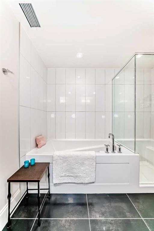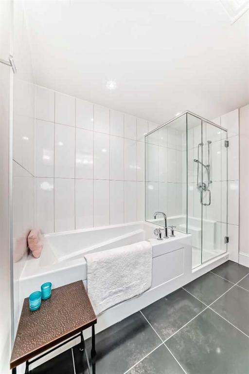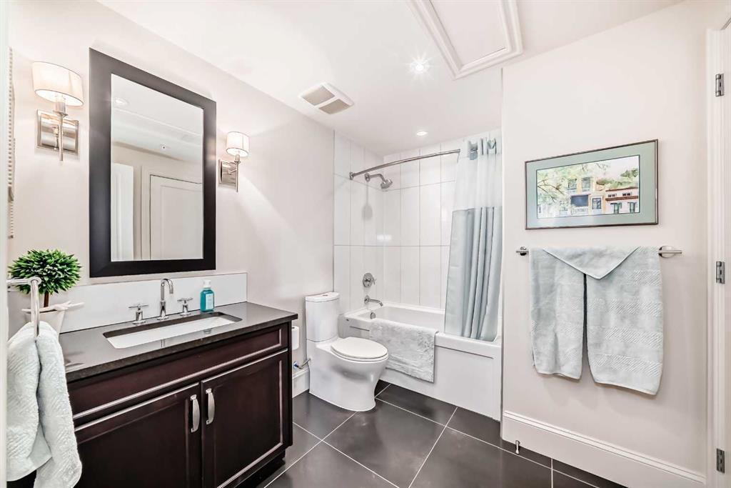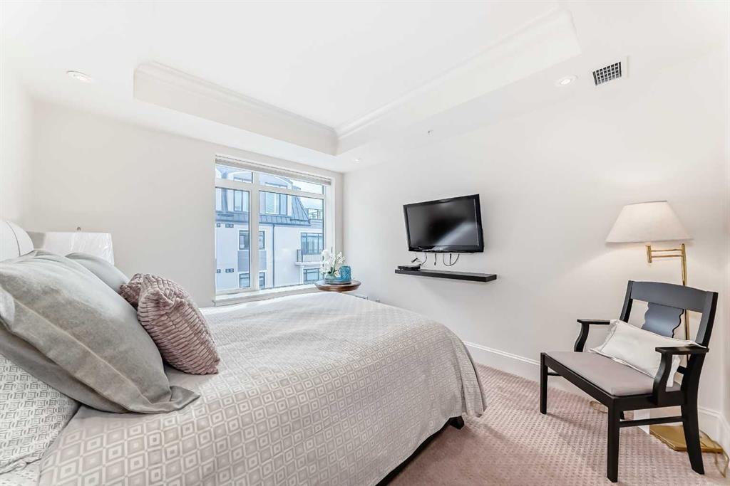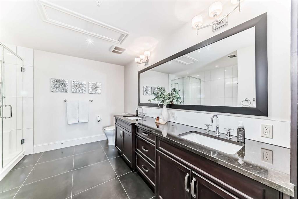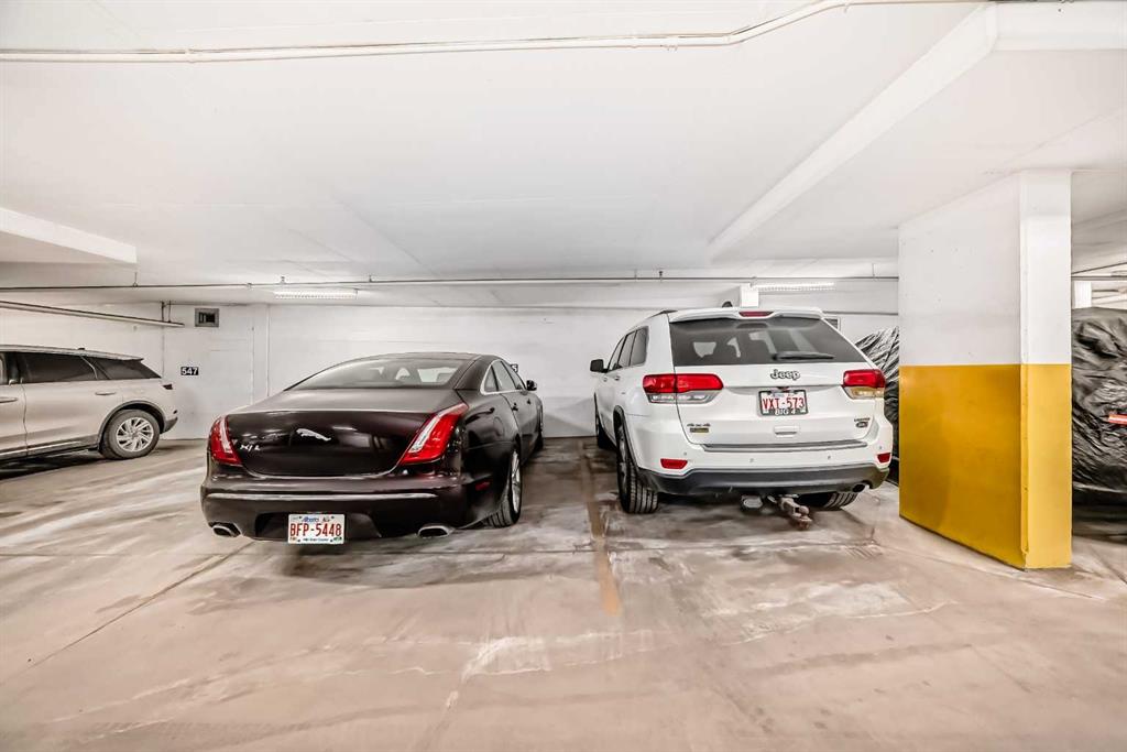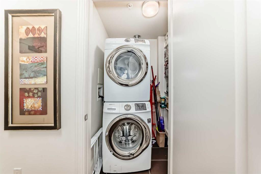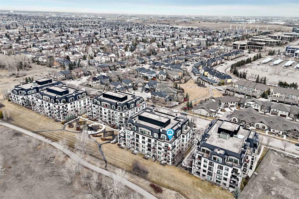 Welcome to this elevated 1426 sq ft 2 bed/2 bath end unit, with large wrap around balcony and sweeping views of the Bow River, in the sought after community of Quarry Park! The exceptional concrete Champagne building is the epitome of luxury, with the benefits of nature just steps away yet close to downtown, and this home showcases that in spades. Upon entering, you'll appreciate the 9' tray ceilings, gorgeous engineered hardwood, triple pane windows, & Hunter Douglas up down/bottom up cellular shades throughout the property. In the entryway, you'll find a large coat closet & separate laundry room, with additional storage, both with custom built-in's. The homeowners have thoughtfully built in a desk area with matching custom cabinetry to the kitchen & baths, with a granite top & built in bookcases, to take advantage of the wide hall space. A generous guest suite features large sunny windows and easy access to a serene Jack & Jill 4 pc bath and large storage closet with more custom built-in's. Moving into the main living space, you'll appreciate the many large windows on two sides, flooding the space in natural light. The kitchen showcases custom solid wood ceiling height cabinetry, a large island, granite countertops, Porter & Charles gas range, Electrolux fridge & dishwasher, built-in Panasonic microwave and garburator. The spacious living & dining area has plenty of room for a large dining table and sectional seating, perfect for hosting family & friends anytime. The stand out of the unit is the large wrap around balcony with room for both dining & relaxing, while enjoying your spectacular views of the Bow River, Fish Creek Park and downtown Calgary. The expansive primary suite features large sunny windows, with room for a king bed and seating area. The luxurious 5 pc ensuite continues with matching cabinetry & granite counters, a large linen tower, soaking tub and walk in glass shower. A large walk in closet with more custom built-in's complete the unit. Additionally, you will enjoy the two titled underground parking stalls & separate titled storage, as well as a car wash, bicycle storage and plenty of visitor parking. The well managed Champagne complex allows you to enjoy the lock & leave lifestyle with confidence. The location is bar none; just steps to the Fish Creek Park, where you can enjoy km's of walking & biking trails or fishing on the world class Bow River. As well, it's location is an easy walk to the fantastic amenities of Quarry Park, with Co Op grocery, retail and fantastic dining options. It's also an easy drive to get to Stoney Trail or Glenmore Trail, making getting around our beautiful city or heading out to the spectacular Rocky Mountains a breeze. This is truly one of a kind! Book your exclusive showing today!