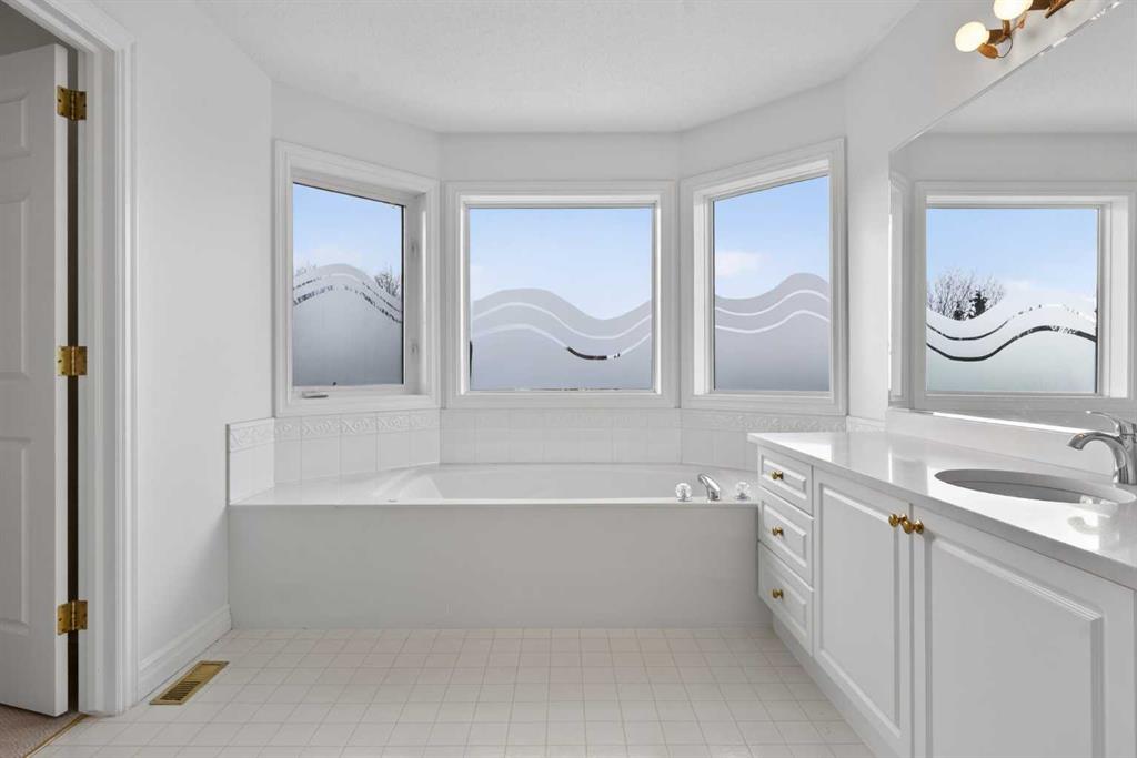 bar, bookcases, breakfast bar, built-in features, ceiling fan(s), central vacuum, chandelier, closet organizers, double vanity, granite counters, high ceilings, jetted tub, kitchen island, pantry, quartz counters, separate entrance, skylight(s), walk-in closet(s)