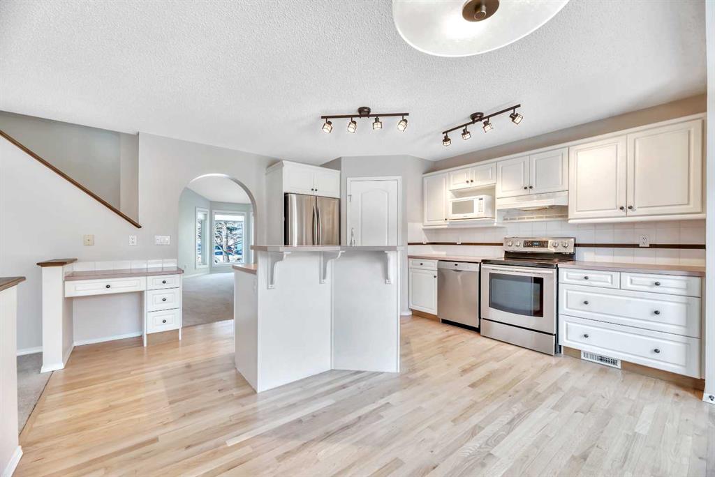 WOW!! If you have been waiting for a move-in condition meticulously maintained home in a fantastic location in Douglasdale, close to Fish Creek Park, then you don't want to miss this one. The moment that you turn onto this very quiet and secluded cul-de-sac you know this is going to be a good one. The exterior of this beautiful home is awesome, with Hardie Board siding, Soffits, eavestrough & down spouts, Holiday Lights, front and back doors all done in 2024. The main floor of this lovely home features: a large foyer with refinished hardwood flooring; a living and dining room with vaulted ceilings and a cantilever for you china cabinet; a terrific kitchen with, refinished hardwood flooring, lots of cabinet & counter space, a corner panty, center island, breakfast nook and patio door to the awesome stamped concrete patio; a great family room with a gas fireplace for those cozy evenings to relax by the fire; a main floor office that could double as a bedroom, a 2 piece bathroom and main floor laundry. The upper level features 3 bedrooms, including a large primary suite with a walk-in closet & renovated 3 piece ensuite bathroom and a renovated 4 piece main bathroom. The lower level is developed with: a huge family room; a 4th bedroom; a large renovated 3 piece bathroom; an optional laundry hookup if desired and lots of storage in closets, with organizers, as well as the utility area. The large backyard is a growing families delight with an awesome stamped concrete patio for entertaining family and friends, lots of room for the kids to pass a soccer ball around and 2 very nice garden sheds to store your outdoor equipment. The list of improvements doesn't stop there: Ploy B plumbing lines replaced 2026; Freshly painted interior; main & upper floor windows replaced in 2016, attic insulation upgraded; Hot water tank Dec 2022; Furnace Jan 2017; Central Air Conditioning in 2019 with a new condenser in 2024; newer fence, pathway and driveway extension. This is one of those rare homes to create memories in that will last a lifetime! Oh, I almost forgot to mention that, 3 doors away is a beautiful access point for the pathway system that leads directly into Fish Creek Park for those perfectly relaxing nature walks. It doesn't get any better!