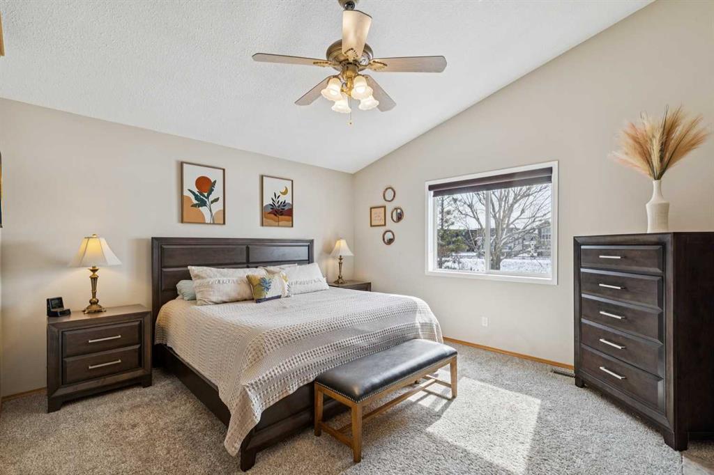 BEAUTIFULLY MAINTAINED BUNGALOW in sought-after Chesterview Estates is an INCREDIBLE opportunity! With nearly 3,000 sf of developed space, this immaculate and BRIGHT home welcomes you with HIGH CEILINGS, GLEAMING HARDWOOD FLOORS, and a thoughtfully designed layout that blends comfort and functionality. The spacious main level features a stunning KITCHEN complete with GRANITE COUNTERTOPS and STAINLESS STEEL APPLIANCES, pantry, tons of counter and storage space - perfect for everyday living and entertaining alike. The inviting living room is anchored by a DOUBLE-SIDED FIREPLACE that also serves the PRIMARY BEDROOM, creating a warm and relaxing retreat. A second main floor BEDROOM is ideal for a home office or traditional set up. Main floor also boasts a large formal dining room, LAUNDRY ROOM, and second full bathroom for convenient single-level living. The FULLY DEVELOPED BASEMENT expands your living space with 2 ADDITIONAL BEDROOMS, full bathroom, lush carpet, and plenty of room for family, guests, or a home gym. There is also an oversized storage/mechanical room with extra cabinetry, sink, and work space fit for any hobby. This FULLY AIR-CONDITIONED home ensures year-round comfort in every season. Step outside to enjoy the SOUTH-FACING BACKYARD, complete with a HOT TUB, BBQ GAS HOOKUP, and a PRIVATE FENCED YARD backing onto a tranquil canal, with VIEWS OF LAKE CHESTERMERE. Whether you're hosting or unwinding, this outdoor space is truly special. The OVERSIZED GARAGE is a standout feature, fully equipped with a WORK BENCH and GAS HEATER—perfect for hobbyists or additional storage. The wide lot also allows for RV PARKING along the side of the garage, offering incredible flexibility. Located in an AMAZING LOCATION, this home offers the perfect balance of privacy and accessibility. Don’t miss your chance to own this exceptional property in one of the area’s most desirable communities!