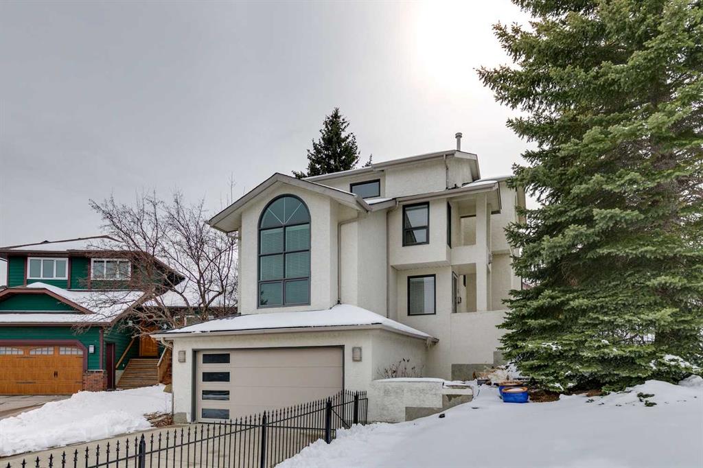 JUST LISTED in COACH HILL! Fully finished split level on a QUIET CUL-DE-SAC LOCATION, PRIVATE SW FACING BACKYARD, VIEWS OF NOSE HILL PARK, and LARGE DOUBLE ATTACHED GARAGE that will fit a full sized truck! Amazing floor plan - private living room with HIGH VAULTED CEILING, LARGE WINDOWS, and HARDWOOD FLOORING. Family room with wood burning fireplace is adjacent to the kitchen with WHITE CABINETRY, BUILT-IN OVEN & MICROWAVE, QUARTZ COUNTERTOPS, and a good sized nook area. The formal dining room is perfect for those larger gatherings. A PRIVATE NOOK/OFFICE AREA is tucked away for those work from home days. OPEN RISE STAIRCASE leads to the upper level with 3 large bedrooms ALL WITH VAULTED CEILINGS, including the PRIMARY bedroom with a 3 PCE ENSUITE BATH. The 4 PCE guest bathroom is conveniently located next to the 2 spare bedrooms. Lower level has a recreation area, wet bar, small 4th bedroom/den, large laundry area, and a 3 PCE partially finished bathroom. OFF-LEASH dog park, walking and biking trails are close by. Extras in this home - Large lot over 6000 SF, NEWER ROOF (2016), NEWER WINDOWS (2016), NEWER WATER HEATER (2021), landscaped beautifully with MATURE TREES, large deck, custom garden shed, RV parking pad out back of the property, the list goes on and on. Request your showing today as this property is priced to sell at $699,900 and will not last long!