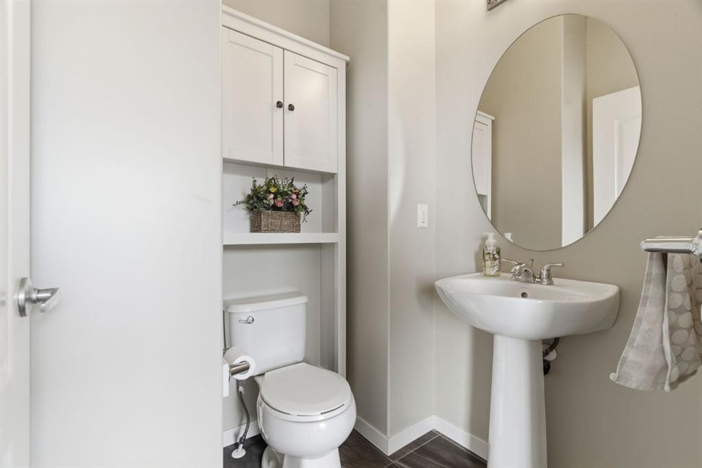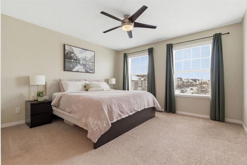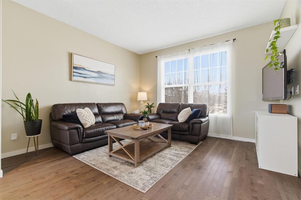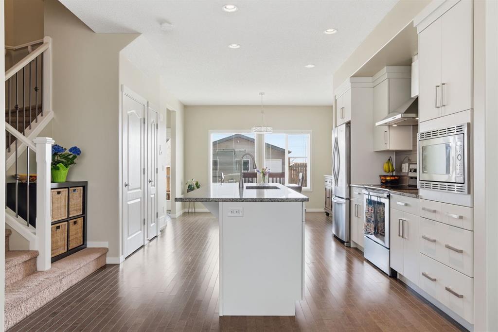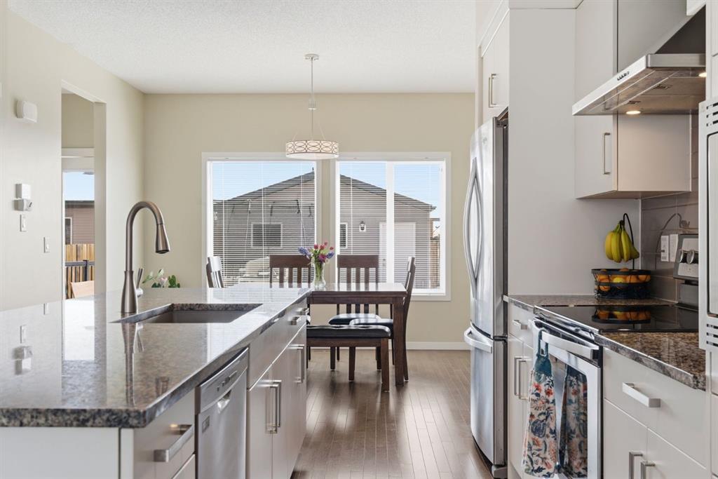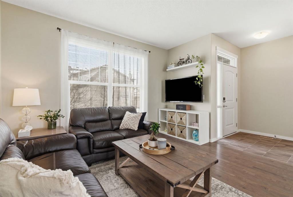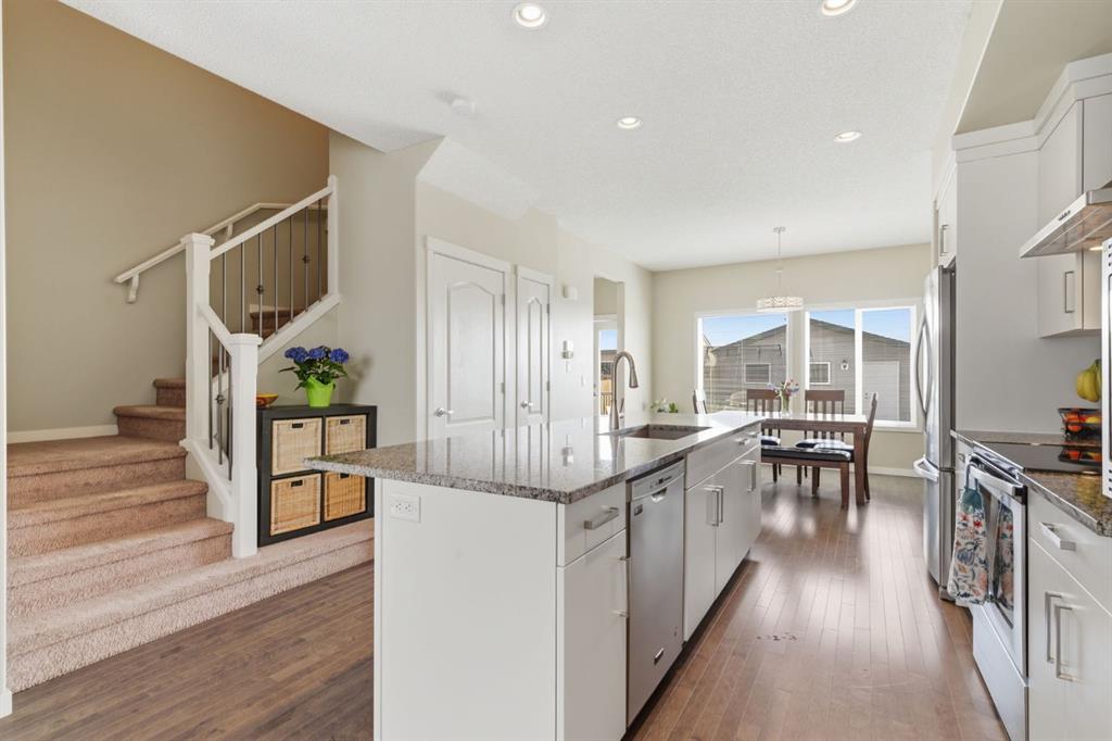 Welcome to this beautifully maintained two-storey home offering the perfect blend of comfort, functionality, and everyday convenience in the sought-after community of Cranston. With 1,396 sq ft of thoughtfully designed living space, this home is ideal for families, first-time buyers, or anyone looking for a bright and inviting place to call home. The open-concept main floor features sleek engineered hardwood flooring and is filled with natural light, creating a warm and welcoming atmosphere throughout. The spacious living and dining areas flow seamlessly into the well-appointed kitchen, with sleek stainless steel appliances, a large central island, and an abundance of cabinetry including deep cupboards that provide exceptional storage. A convenient main floor laundry room and 2-piece powder room finish off the main floor. Upstairs, you’ll find a full bath and 3 bedrooms, including a comfortable primary retreat complete with a walk-in closet and private ensuite offering the perfect space to unwind at the end of the day. The full unfinished basement provides endless potential for future development, whether you envision additional living space, a home gym, or extra storage. Outside, enjoy a private, fully fenced backyard for enjoying warm summer days . The double detached garage is a standout feature, offering both convenience and protection from Calgary’s winter months. Built in 2014 and thoughtfully maintained, this great home also features a new hot water tank (2025) for added peace of mind and the additional comfort of central air conditioning for those hot summer days ahead. Located in a quiet, family-friendly neighbourhood with plenty of young families, you’ll love being just minutes from schools (both Catholic and public), parks, and a wide range of nearby amenities. The Cranston Century Hall features a splash park, tennis/basketball courts, a hockey rink and year round community programming for your enjoyment.