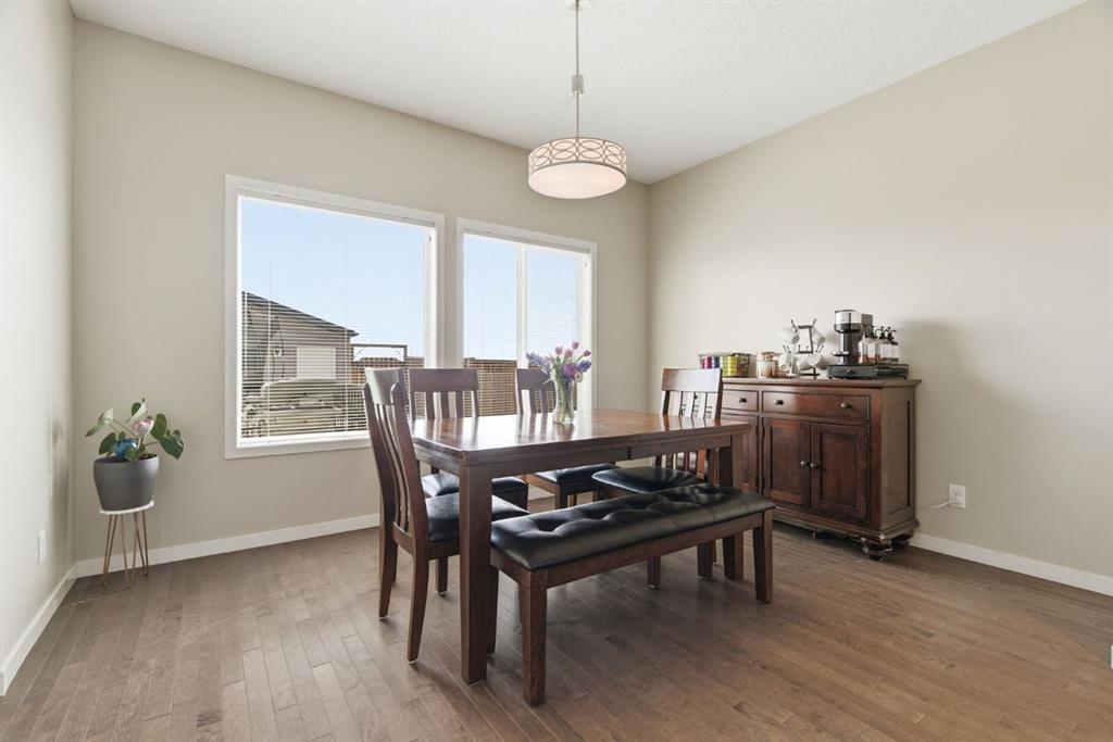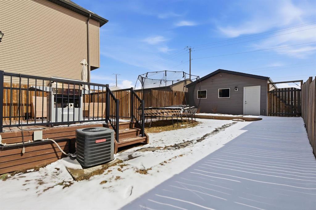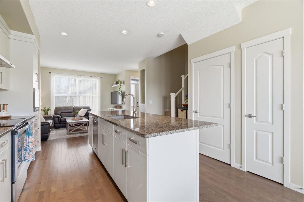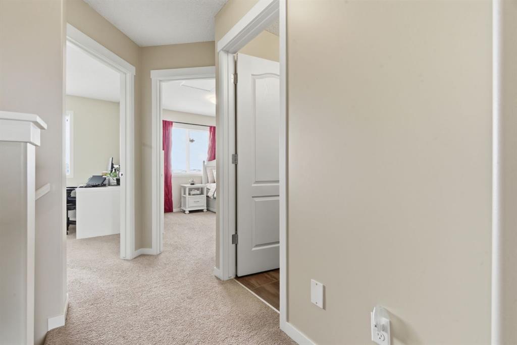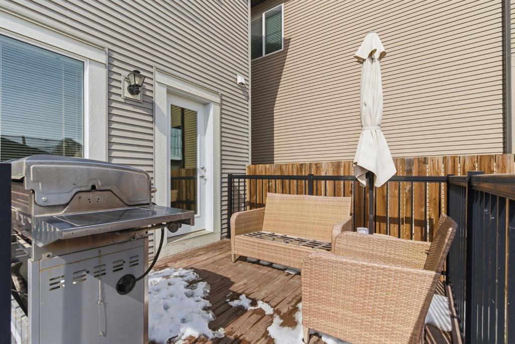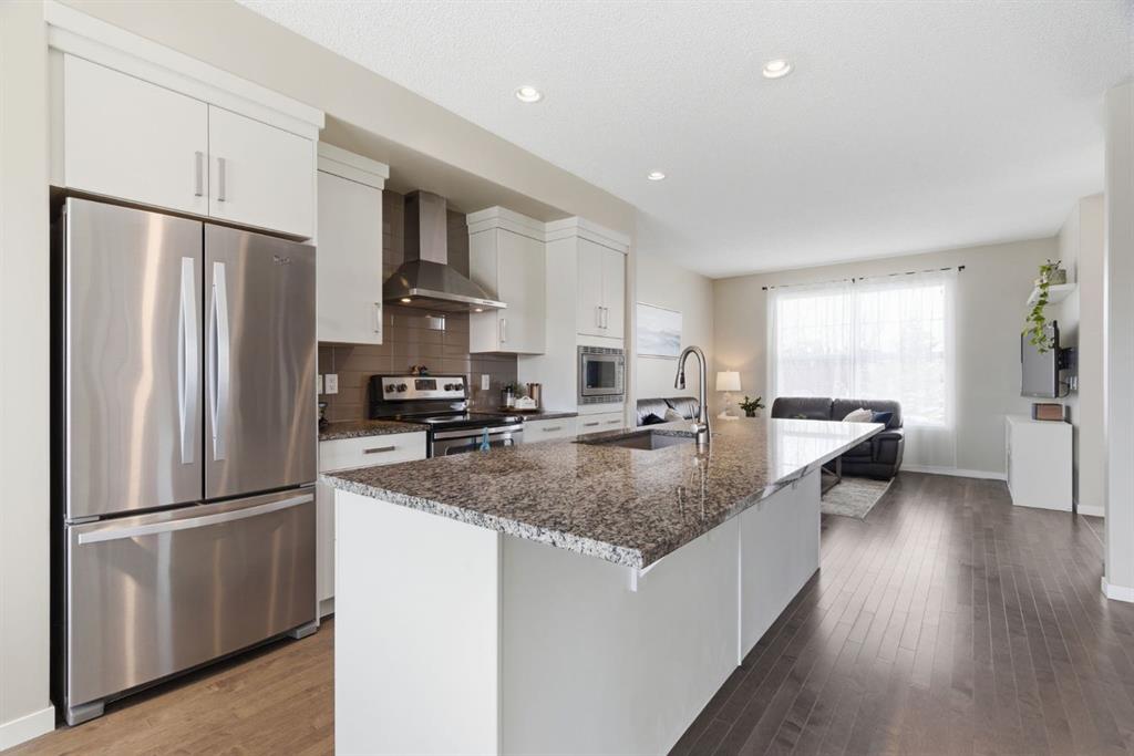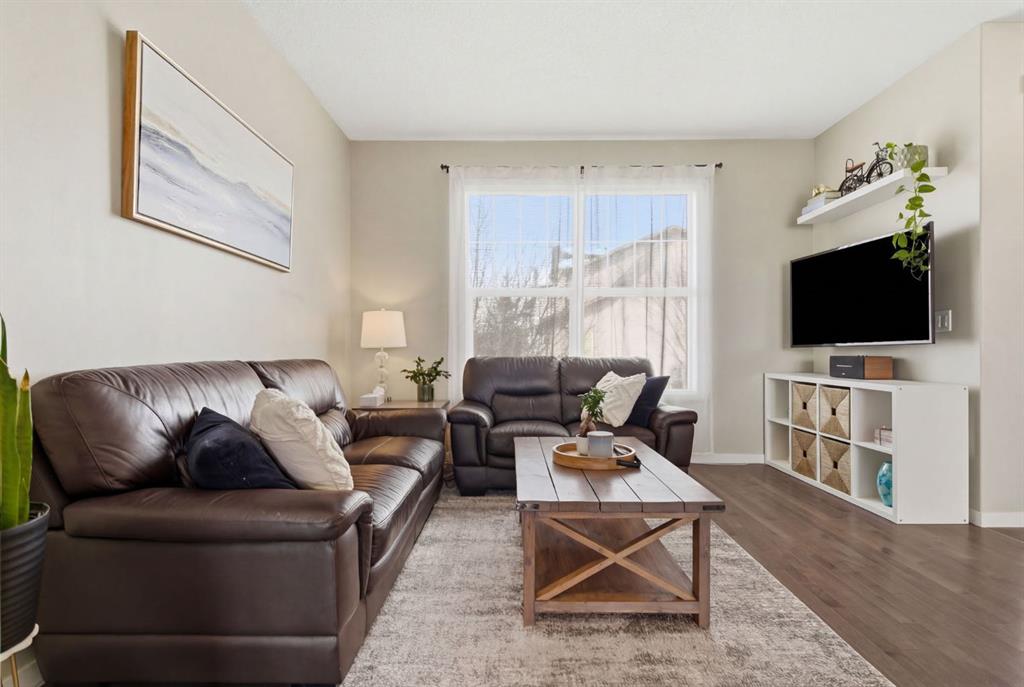 Welcome to this beautifully maintained two-storey home offering the perfect blend of comfort, functionality, and everyday convenience in the sought-after community of Cranston. With 1,396 sq ft of thoughtfully designed living space, this home is ideal for families, first-time buyers, or anyone looking for a bright and inviting place to call home. The open-concept main floor features sleek engineered hardwood flooring and is filled with natural light, creating a warm and welcoming atmosphere throughout. The spacious living and dining areas flow seamlessly into the well-appointed kitchen, with sleek stainless steel appliances, a large central island, and an abundance of cabinetry including deep cupboards that provide exceptional storage. A convenient main floor laundry room and 2-piece powder room finish off the main floor. Upstairs, you’ll find a full bath and 3 bedrooms, including a comfortable primary retreat complete with a walk-in closet and private ensuite offering the perfect space to unwind at the end of the day. The full unfinished basement provides endless potential for future development, whether you envision additional living space, a home gym, or extra storage. Outside, enjoy a private, fully fenced backyard for enjoying warm summer days . The double detached garage is a standout feature, offering both convenience and protection from Calgary’s winter months. Built in 2014 and thoughtfully maintained, this great home also features a new hot water tank (2025) for added peace of mind and the additional comfort of central air conditioning for those hot summer days ahead. Located in a quiet, family-friendly neighbourhood with plenty of young families, you’ll love being just minutes from schools (both Catholic and public), parks, and a wide range of nearby amenities. The Cranston Century Hall features a splash park, tennis/basketball courts, a hockey rink and year round community programming for your enjoyment.