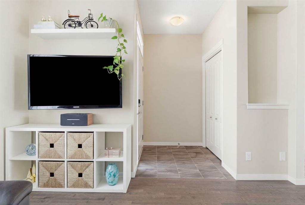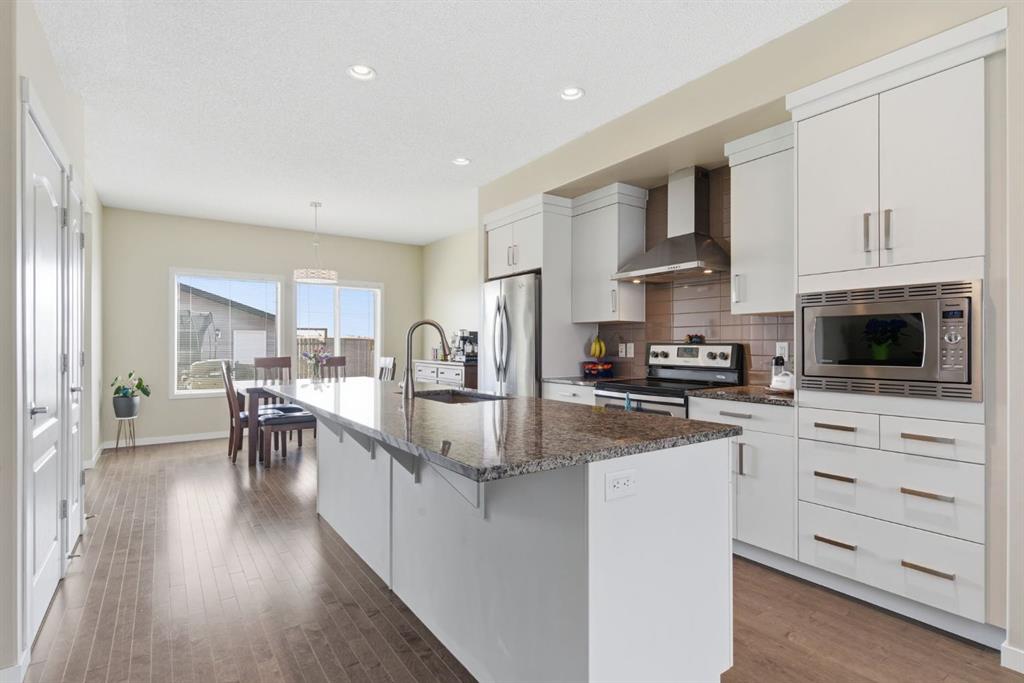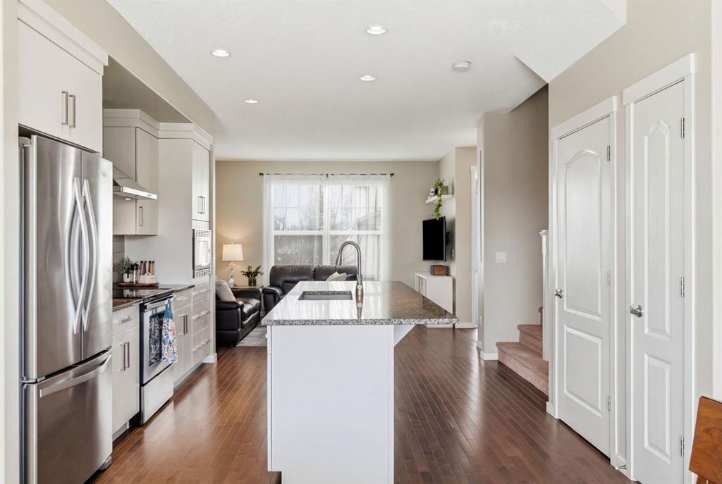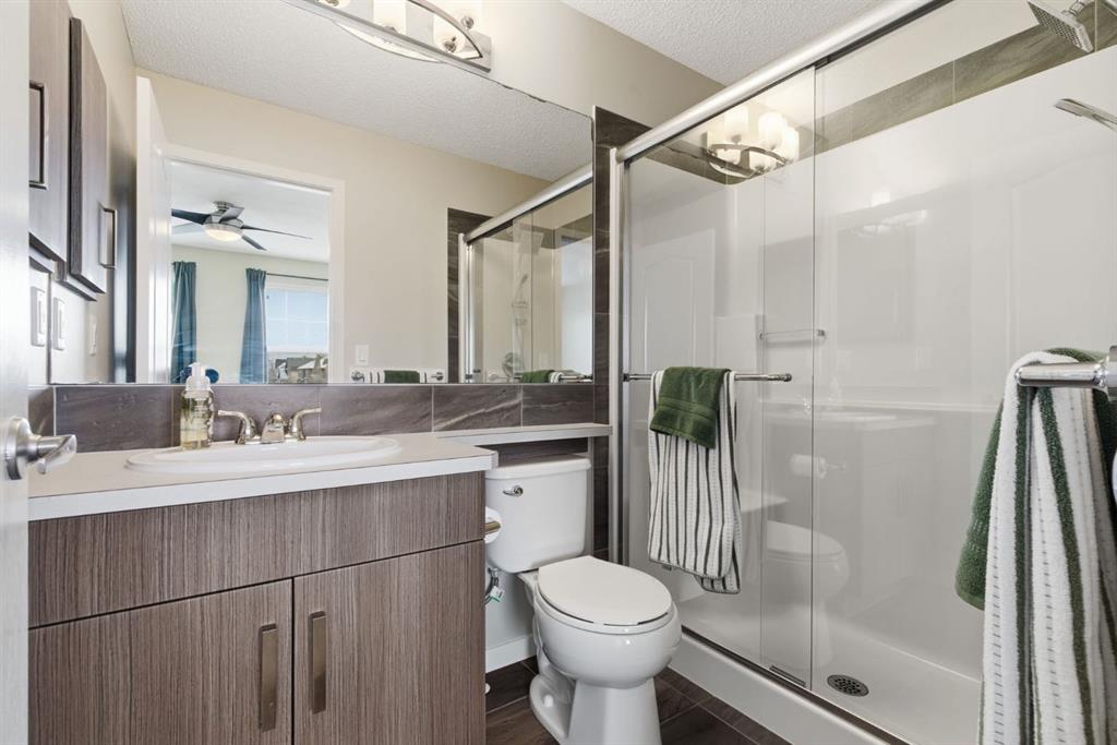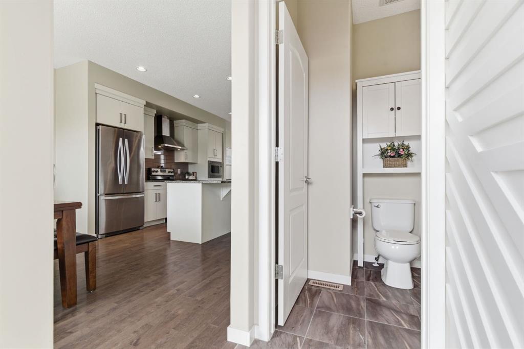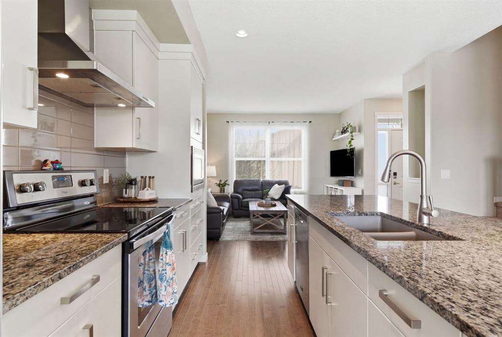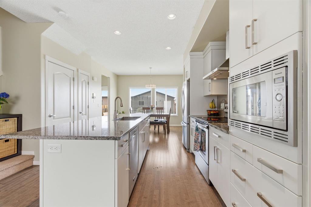 Welcome to this beautifully maintained two-storey home offering the perfect blend of comfort, functionality, and everyday convenience in the sought-after community of Cranston. With 1,396 sq ft of thoughtfully designed living space, this home is ideal for families, first-time buyers, or anyone looking for a bright and inviting place to call home. The open-concept main floor features sleek engineered hardwood flooring and is filled with natural light, creating a warm and welcoming atmosphere throughout. The spacious living and dining areas flow seamlessly into the well-appointed kitchen, with sleek stainless steel appliances, a large central island, and an abundance of cabinetry including deep cupboards that provide exceptional storage. A convenient main floor laundry room and 2-piece powder room finish off the main floor. Upstairs, you’ll find a full bath and 3 bedrooms, including a comfortable primary retreat complete with a walk-in closet and private ensuite offering the perfect space to unwind at the end of the day. The full unfinished basement provides endless potential for future development, whether you envision additional living space, a home gym, or extra storage. Outside, enjoy a private, fully fenced backyard for enjoying warm summer days . The double detached garage is a standout feature, offering both convenience and protection from Calgary’s winter months. Built in 2014 and thoughtfully maintained, this great home also features a new hot water tank (2025) for added peace of mind and the additional comfort of central air conditioning for those hot summer days ahead. Located in a quiet, family-friendly neighbourhood with plenty of young families, you’ll love being just minutes from schools (both Catholic and public), parks, and a wide range of nearby amenities. The Cranston Century Hall features a splash park, tennis/basketball courts, a hockey rink and year round community programming for your enjoyment.