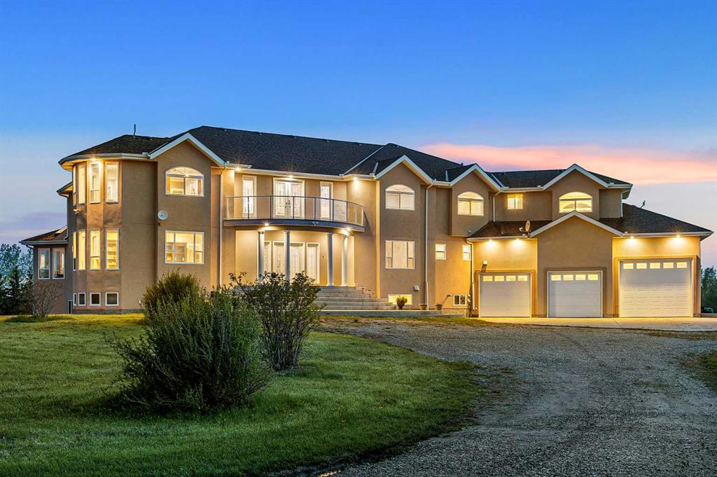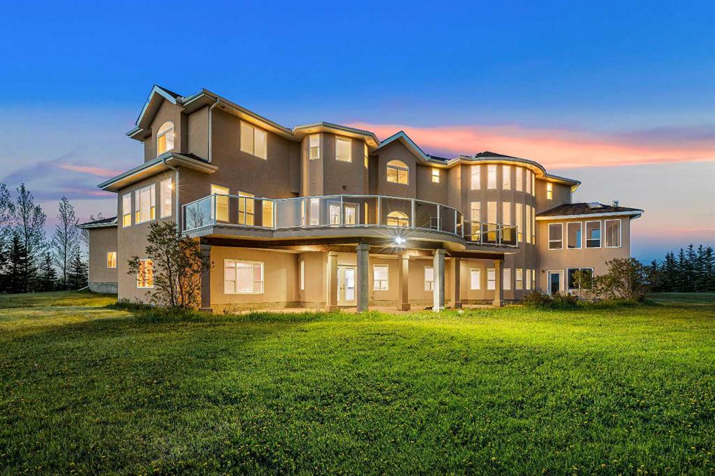 ONE OF A KIND ACREAGE - 20+ ACRE PARCEL (IDEAL FOR SUBDIVISION; SUBJECT TO COUNTY APPROVAL) - 10,800+ SQ FT W 10 BEDROOMS, 6 FULL BATHS & 2 HALF BATHS - WALKOUT BASEMENT WITH A LEGAL SUITE & ILLEGAL SUITE - OVERSIZED TRIPLE CAR GARAGE - OVERSIZED DRIVEWAY - HUGE 46 FT BALCONY & PATIO - TONS OF UPGRADES INCLUDING HIGH CEILINGS, VAULTED CEILINGS, GRANITE COUNTERS, FULL HEIGHT CABINETRY & MORE - MOUNTAIN VIEWS - Main Level offers 2 dining rooms, Oval office, BEDROOM WITH ENSUITE, SUNROOM, living room with Vaulted Ceilings, Spacious Kitchen, family room with fireplace, laundry and half bath - Upper level offers 6 Bedrooms (5 Beds + 1 Den/Bonus) & 3.5 Baths. All bedrooms have direct access to a FULL bath (excluding the Den/Bonus). Of the 6 bedrooms, 1 is the master that comes with a W.I.C & 5 PC ENSUITE! There is also a half bath on the upper level. The walkout basement offers 2 living spaces (1 legal suite & 1 illegal suite) combining for a total of 3 Bedrooms + 1 Media Room (that can also be used as an additional bedroom), 2 kitchen, 2 FULL baths & a rec room and family room! There are lots of amazing features with this property starting with its LOCATION -> Just a stone's throw from Chestermere City, approximately few minutes from Chestermere High School & around 25 minutes to Downtown Calgary! In addition to that, this home is on a SUBDIVIDABLE PARCEL (subject to county approval) and with the Illegal and Legal Suite in the basement, you have 2 MORTGAGE HELPERS for your property!