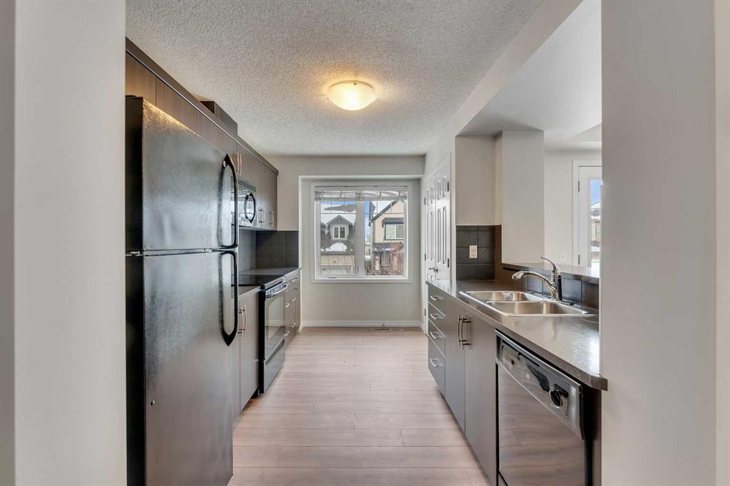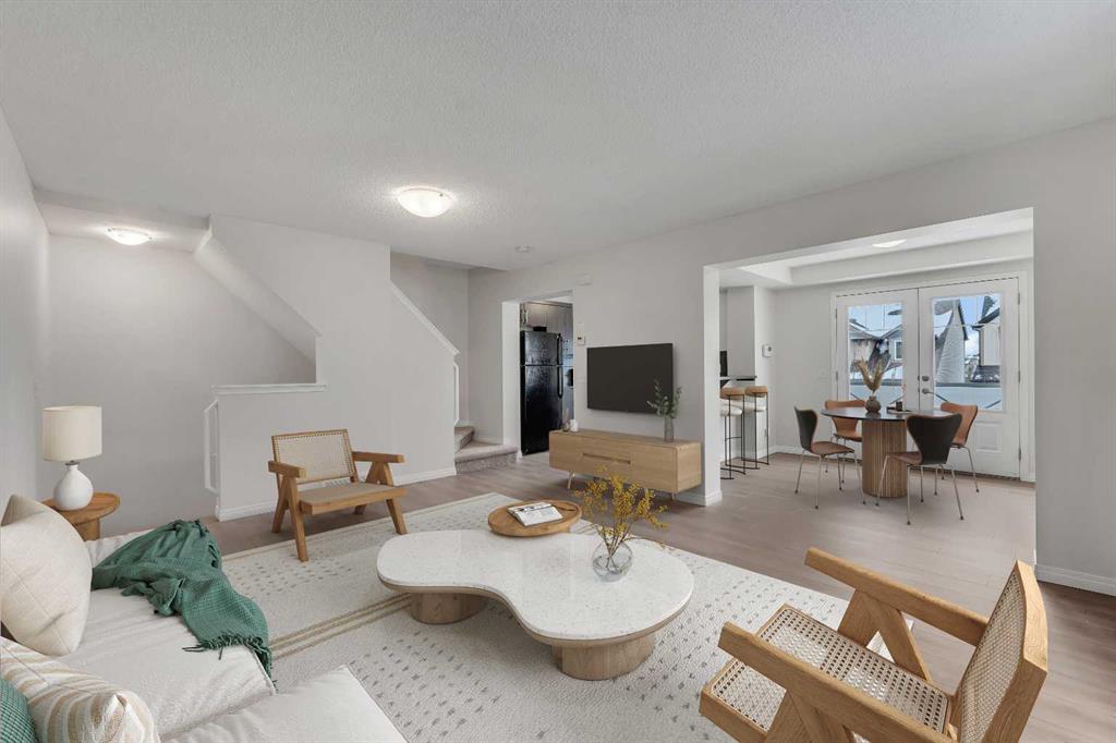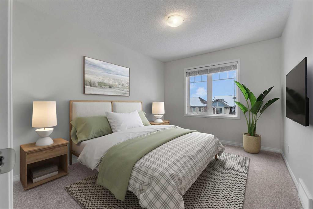 It's not often you find an End-unit townhome with no condo fees and over 1,400 sq ft of living space that's recently refreshed with new paint, carpet, and vinyl flooring. This home feels clean, updated, and move-in ready. The main living area is open and spacious, with a seamless flow between the living room, dedicated dining space, and kitchen. A functional breakfast bar adds extra seating, while large windows bring in plenty of natural light throughout the day. Step out onto the upper deck, perfect for enjoying summer evenings. Upstairs, the primary bedroom offers a comfortable retreat with a walk-in closet and easy access to the full bathroom. The second bedroom is well-sized and flexible, whether you need space for a roommate, kids, or a home office. The main level includes a convenient powder room, laundry area, and additional storage to keep everything organized. A solid option for anyone looking for low-maintenance living without condo fees, with a bright, functional layout. Located in the desirable neighbourhood of Windsong, close to schools, parks, ponds and pathways, and offering quick access in and out of Airdroe, as well as to shops and amenities.