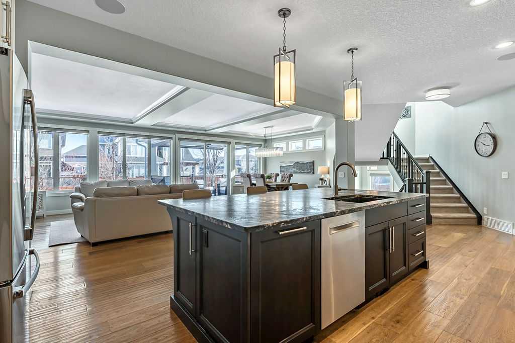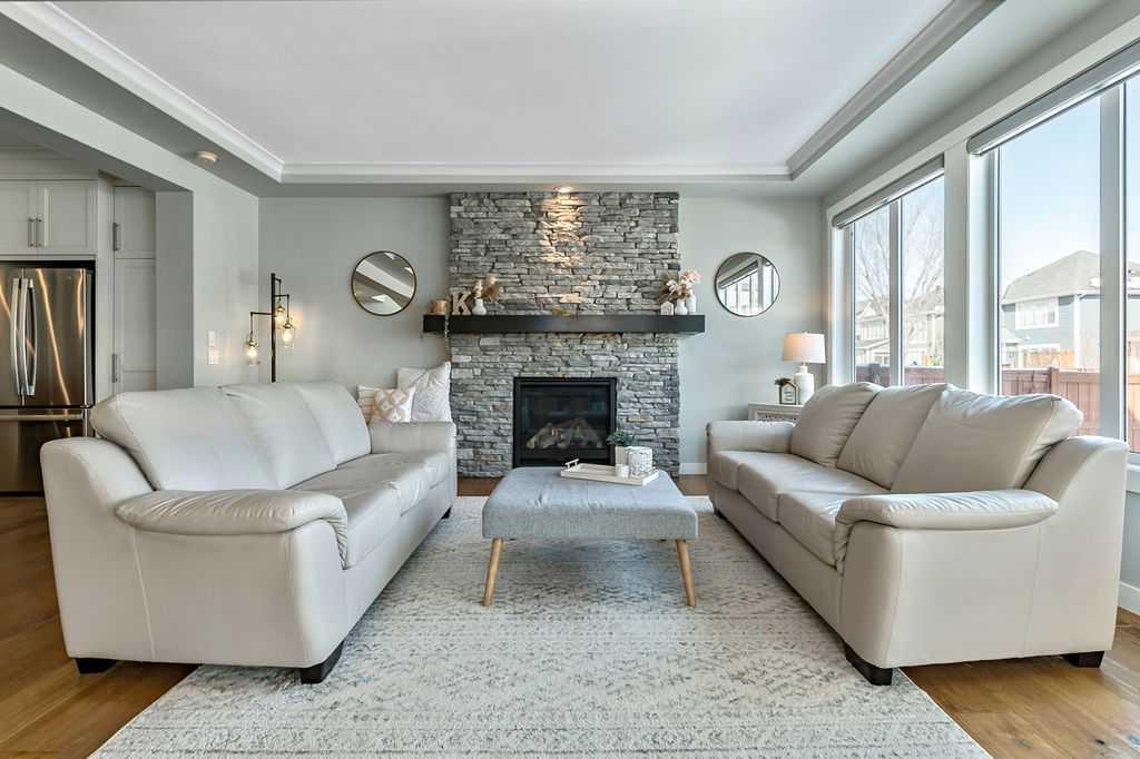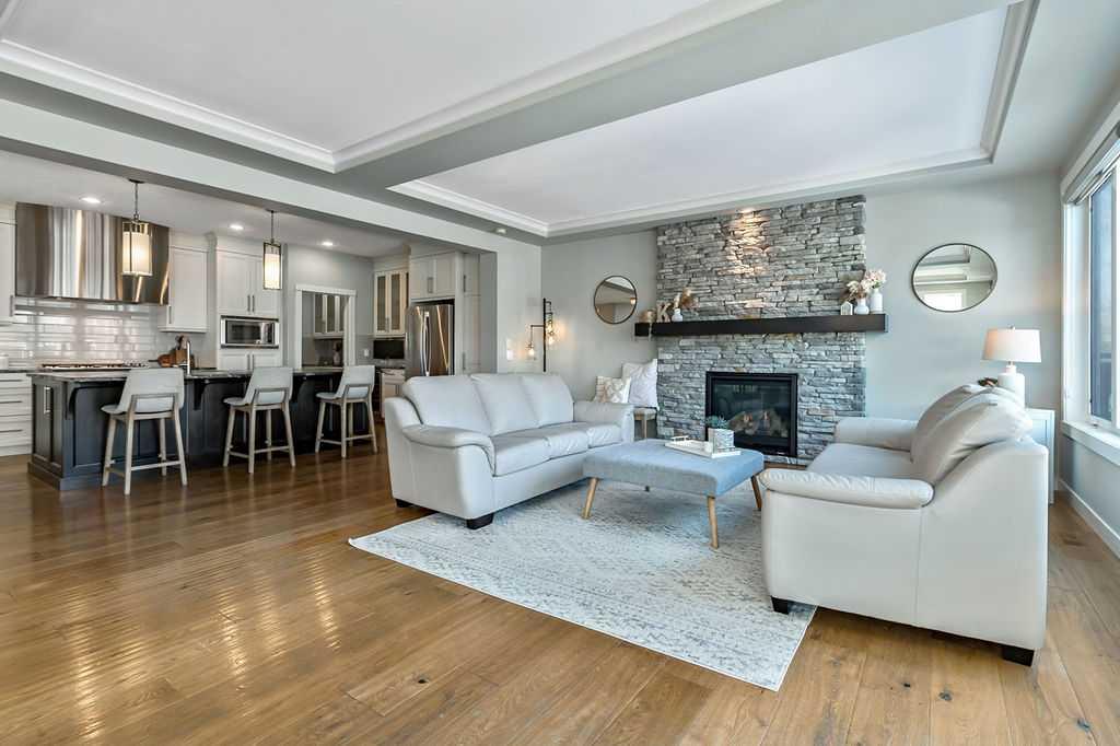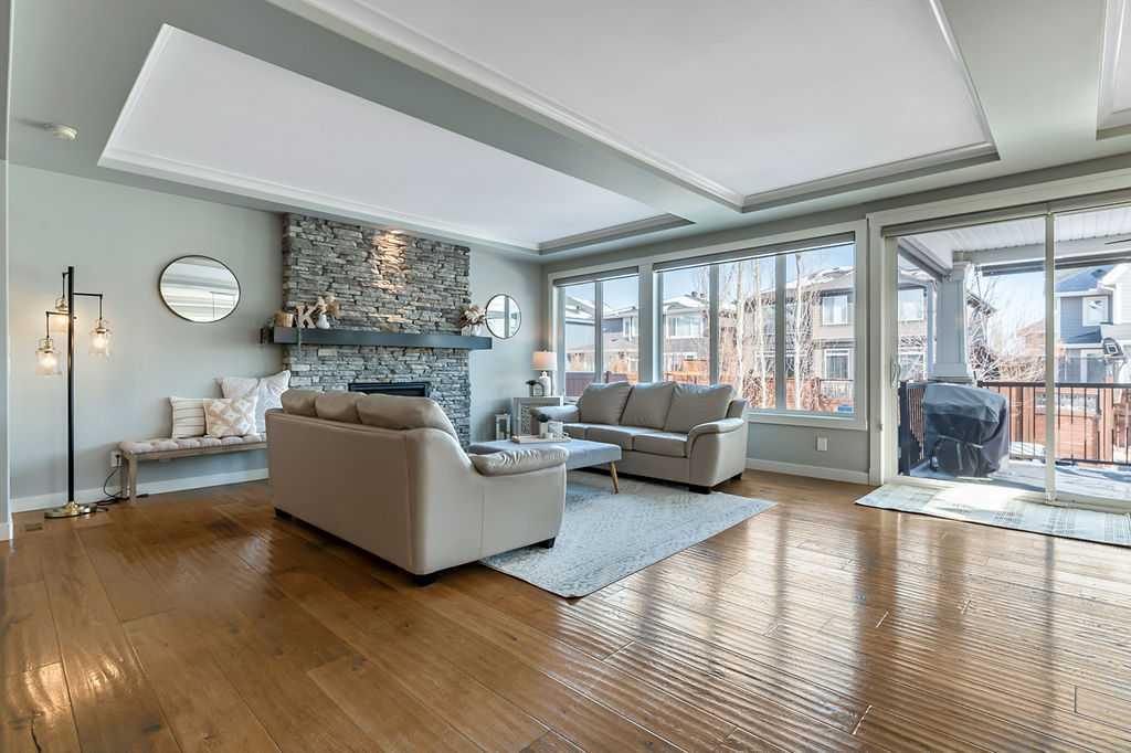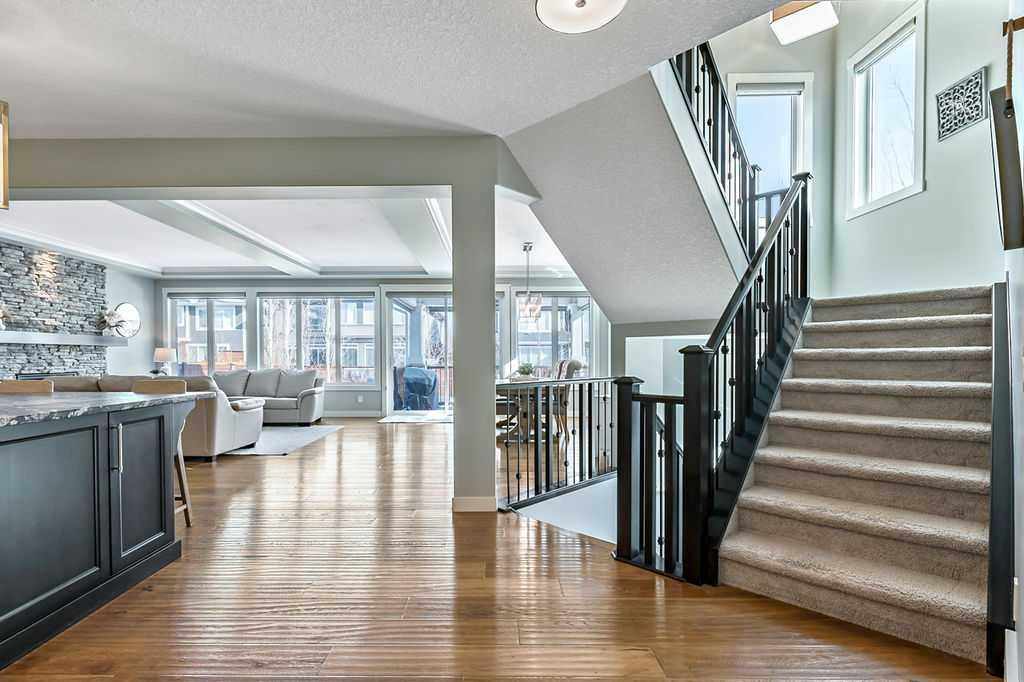 Welcome to Auburn Bay, one of Calgary’s most sought-after Lake Communities, offering year-round lakeside living. This immaculate property offers a blend of luxury, convenience, and a vibrant community lifestyle, boasting over 4,400 square feet of developed living space and is situated on a desirable corner lot, backing onto one of the community’s semi-private lake pathways. The gourmet kitchen is a chef's dream, featuring leathered granite countertops, custom stainless steel range hood, full-height cabinets, a butler's pantry, and high-end stainless steel appliances. Filled with natural light, the living areas are spacious and inviting, great for entertaining. The home also includes central A/C for year-round comfort. This elegant and extensively upgraded home includes 3+1 bedrooms and 3.5 bathrooms. The large primary bedroom features a double-sided stone fireplace and a luxurious ensuite with a stand-alone soaker tub and glass/tile shower. The washer, dryer and 75-gallon hot water tank were replaced in 2024. This home features a beautiful aggregate driveway leading to a spacious triple garage with epoxy flooring and convenient storage racks. Professionally landscaped with an abundance of trees, the property includes a full irrigation system and an artificial turf dog run for easy maintenance. Enjoy the outdoors on the covered deck, complete with roller shades, perfect for all-season use. The Homeowners Association offers year-round activities and exclusive lake access, enhancing your living experience. Walking distance to multiple schools, shopping, dining and more. Just minutes to South Health Campus, YMCA, various restaurants, and quick access to Stoney Trail and Deerfoot.