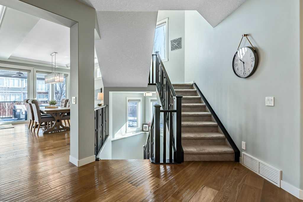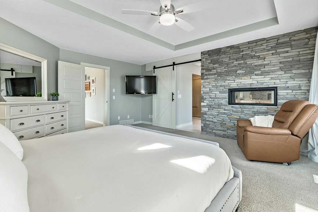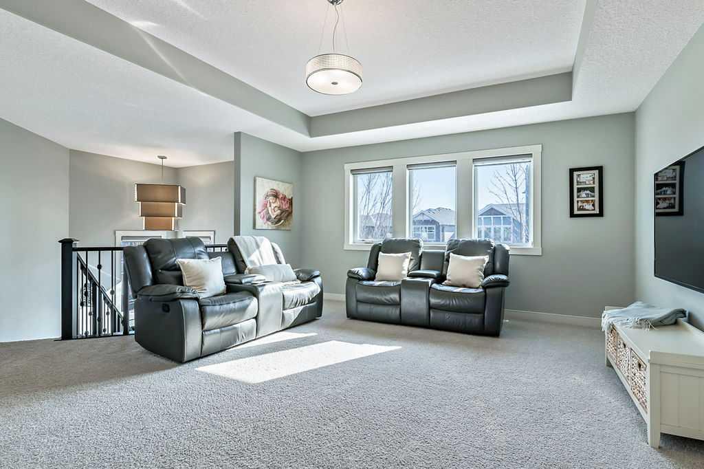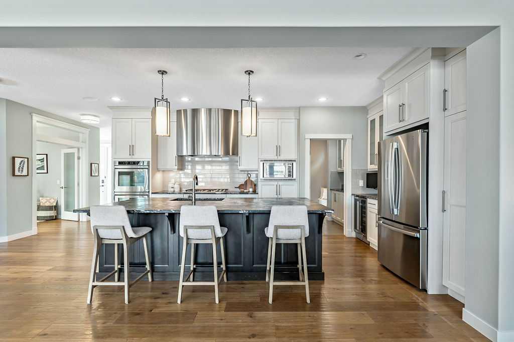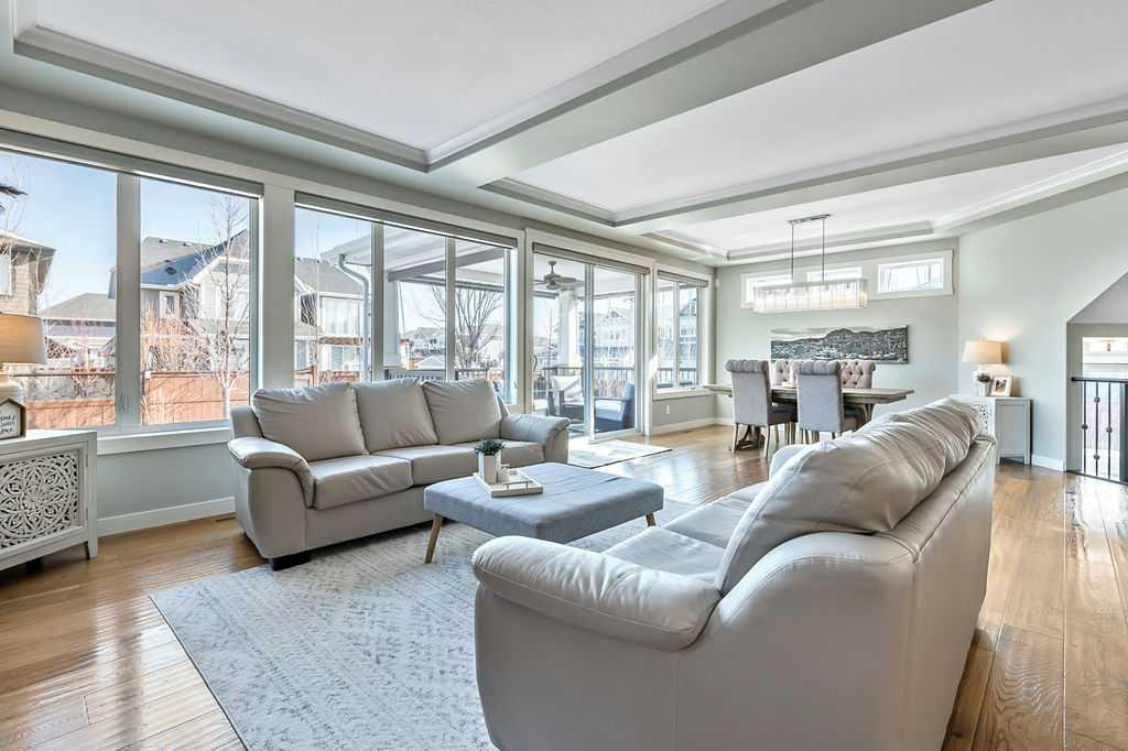 Welcome to Auburn Bay, one of Calgary’s most sought-after Lake Communities, offering year-round lakeside living. This immaculate property offers a blend of luxury, convenience, and a vibrant community lifestyle, boasting over 4,400 square feet of developed living space and is situated on a desirable corner lot, backing onto one of the community’s semi-private lake pathways. The gourmet kitchen is a chef's dream, featuring leathered granite countertops, custom stainless steel range hood, full-height cabinets, a butler's pantry, and high-end stainless steel appliances. Filled with natural light, the living areas are spacious and inviting, great for entertaining. The home also includes central A/C for year-round comfort. This elegant and extensively upgraded home includes 3+1 bedrooms and 3.5 bathrooms. The large primary bedroom features a double-sided stone fireplace and a luxurious ensuite with a stand-alone soaker tub and glass/tile shower. The washer, dryer and 75-gallon hot water tank were replaced in 2024. This home features a beautiful aggregate driveway leading to a spacious triple garage with epoxy flooring and convenient storage racks. Professionally landscaped with an abundance of trees, the property includes a full irrigation system and an artificial turf dog run for easy maintenance. Enjoy the outdoors on the covered deck, complete with roller shades, perfect for all-season use. The Homeowners Association offers year-round activities and exclusive lake access, enhancing your living experience. Walking distance to multiple schools, shopping, dining and more. Just minutes to South Health Campus, YMCA, various restaurants, and quick access to Stoney Trail and Deerfoot.