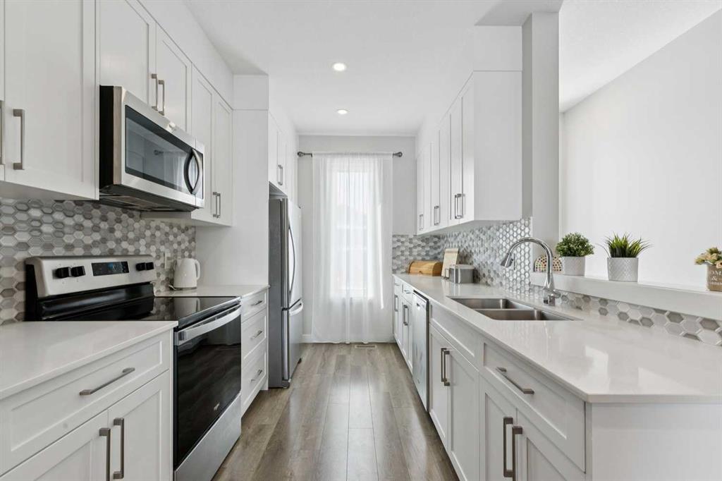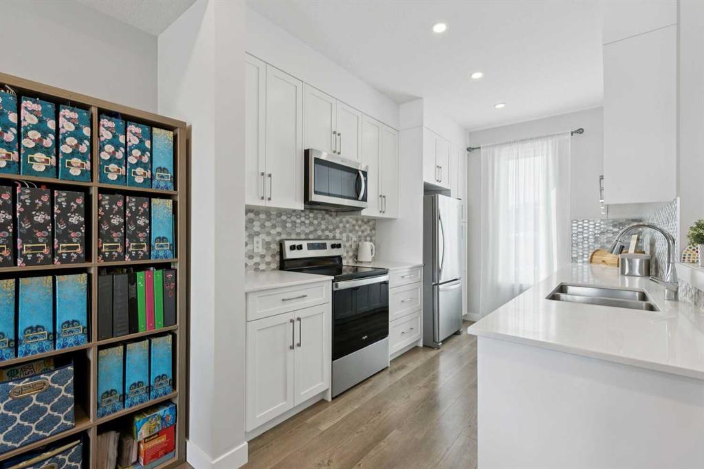 Welcome to 579 Evanston Link NW…a fantastic townhome, in the sought-after community of Evanston. If walkability is important to you, this one is just around the corner from all the Evanston amenities. Also, if you are using a car, there is quick access in and out of the community via Stoney trail as well. It’s a really convenient location within the community. Inside, the home features an open main floor where the kitchen flows directly into the dining and living areas. Outfitted with hardwood floors, quartz countertops, and stainless steel appliances, the main level is really awesome. A shaded, east-facing balcony is your own private outdoor space, and a 2 piece guest bath on the entry level is super convenient.