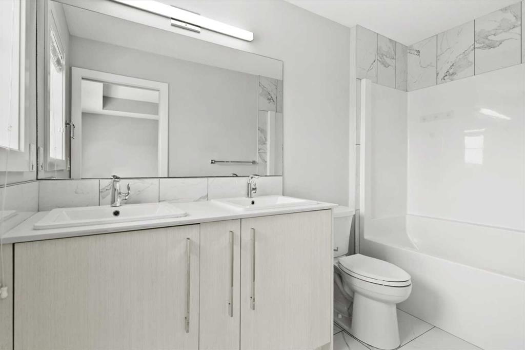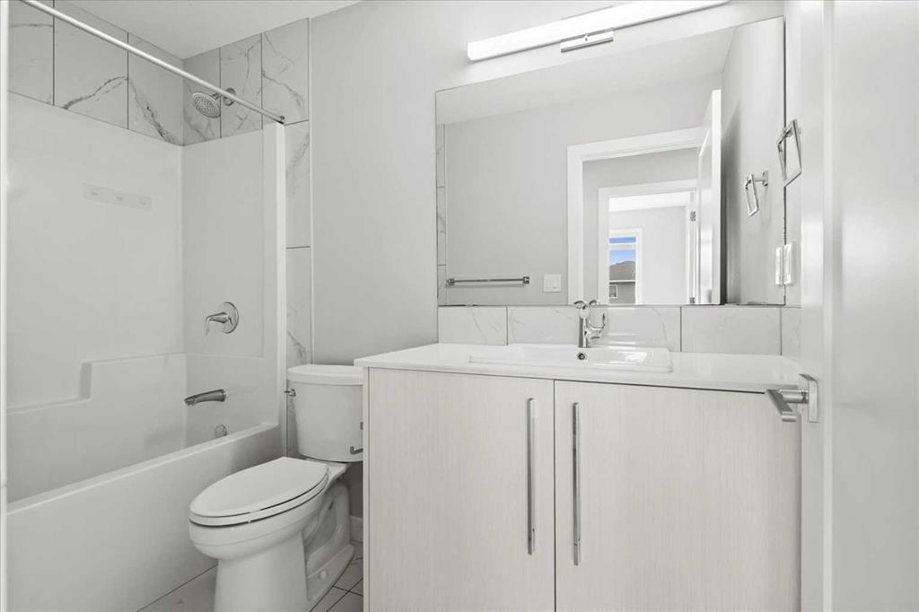*OPEN HOUSE - SATURDAY, APRIL 18TH 1:00PM - 3:00PM* Welcome to this beautifully designed half-duplex with a legal secondary suite, ideally located in the growing northeast community of Redstone. The main level features an inviting open-concept layout with a bright living area, dedicated dining space, and a modern kitchen complete with a central island, quartz countertops, stainless steel appliances, a gas range, and a pantry. The main floor space is well-suited for everyday living as well as entertaining. Step outside to enjoy the beautiful rear deck, offering a great outdoor space for relaxing or hosting. Upstairs, you’ll find three well-proportioned bedrooms, including a comfortable primary retreat featuring a walk-in closet and a 4-piece ensuite with dual vanity. A second full bathroom, convenient upper-floor laundry, and a functional desk nook provide flexibility for working from home or staying organized. The legal one-bedroom basement suite includes its own kitchen, living room, 4-piece bathroom, and in-suite laundry, offering an excellent opportunity for supplemental rental income or space for extended family. A double detached garage adds everyday convenience, while the location offers quick access to Stoney Trail, Metis Trail, parks, pathways, and nearby amenities. A fantastic opportunity for homeowners and investors alike in a thriving Calgary community.