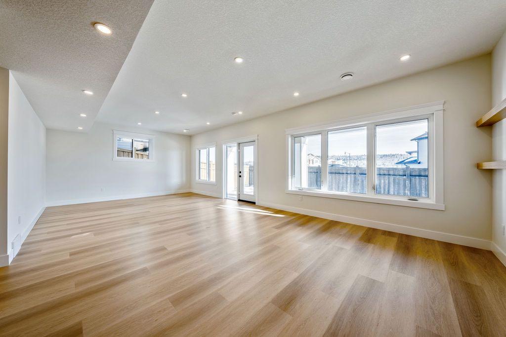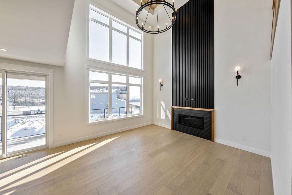 Welcome to a home that perfectly balances elevated design, everyday functionality, and an unbeatable lifestyle. This stunning 2600+ sq ft, 2-storey, walkout home in quaint town of Cochrane is crafted for the modern professional family seeking both connection and escape - just a short drive to downtown Calgary and equally close to the mountains. From the moment you enter, you're greeted by soaring ceilings and a dramatic open to above living space that fills the home with natural light. Expansive windows frame breathtaking ravine and mountain views, creating a sense of calm and privacy that's hard to find. Thoughtfully designed coffered ceilings and carefully selected lighting fixtures add warm and architectural interest, while abundant recessed lighting ensures the home feel bright at any time of day. At the heart of the home is a beautifully designed white oak kitchen that blends timeless style with everyday practicality. Perfect for both entertaining and busy family life, it flows seamlessly into the main living areas and out onto 1 of 3 private balconies - ideal for morning coffee, evening wine, or simply taking in the view. Upstairs the primary retreat offers a true spa experience, complete with a luxurious ensuite featuring a walk in shower, free standing soaker tub, and in floor heating for added comfort. Every closet throughout the home has been customized with built-in shelving, ensuring effortless organization. Even the laundry room has been elevated into a space you'll genuinely enjoy spending time in. The fully developed walkout basement adds exceptional versatility, featuring 2 additional bedrooms, a spacious living area with a cozy fireplace, and a stylish wet bar-perfect for hosting guests, accommodating a growing family, or creating a private retreat. With direct outdoor access, this level seamlessly extends your living space while maintaining the same thoughtful design found throughout the home. This is more than just a house - it's a lifestyle. A place where you can work, relax, and recharge, all while staying connected to the city and steps away from nature. You must book your private viewing today!