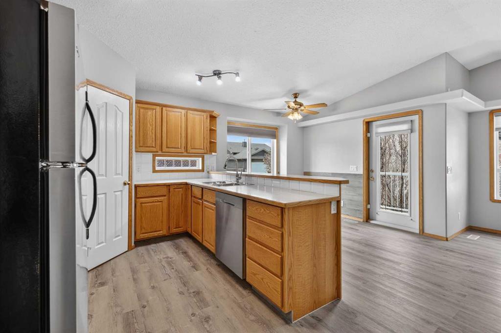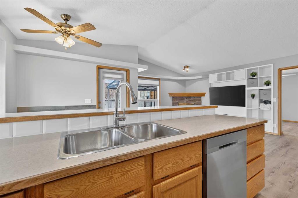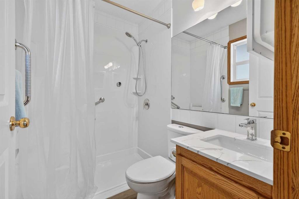 Surrounded by scenic parks and winding pathways, this beautifully maintained bungalow offers the perfect blend of comfort, accessibility, and thoughtful design. Situated on a desirable corner lot, this home features exceptional parking, including potential RV parking for the avid camper, and a double attached heated garage complete with a ramp for added accessibility. The low-maintenance, scape-free front yard provides effortless curb appeal, while the private, treed backyard creates a peaceful retreat. Enjoy outdoor living on the spacious back deck, which features a gazebo and a convenient gas BBQ hookup, plus two storage sheds. Step inside to a bright, welcoming foyer that leads to a versatile front room—ideal as a bedroom or home office—along with a full bathroom and an additional bedroom. The home opens into a beautiful open-concept kitchen, dining, and living area, perfect for both everyday living and entertaining. A corner mantle fireplace adds warmth and charm, while built-in cabinetry offers an elegant space to showcase your personal touches. The primary suite overlooks the tranquil backyard and features built-in storage and an accessible ensuite, thoughtfully designed for comfort and ease of use. There is also a main floor laundry hookup option, providing flexibility to suit your needs. Downstairs, the partially finished basement expands your living space with a large bedroom complete with its own ensuite and walk-in shower, a dedicated laundry area, and plenty of room to customize additional living space to your liking.