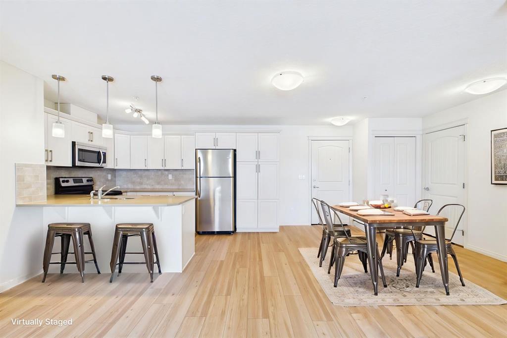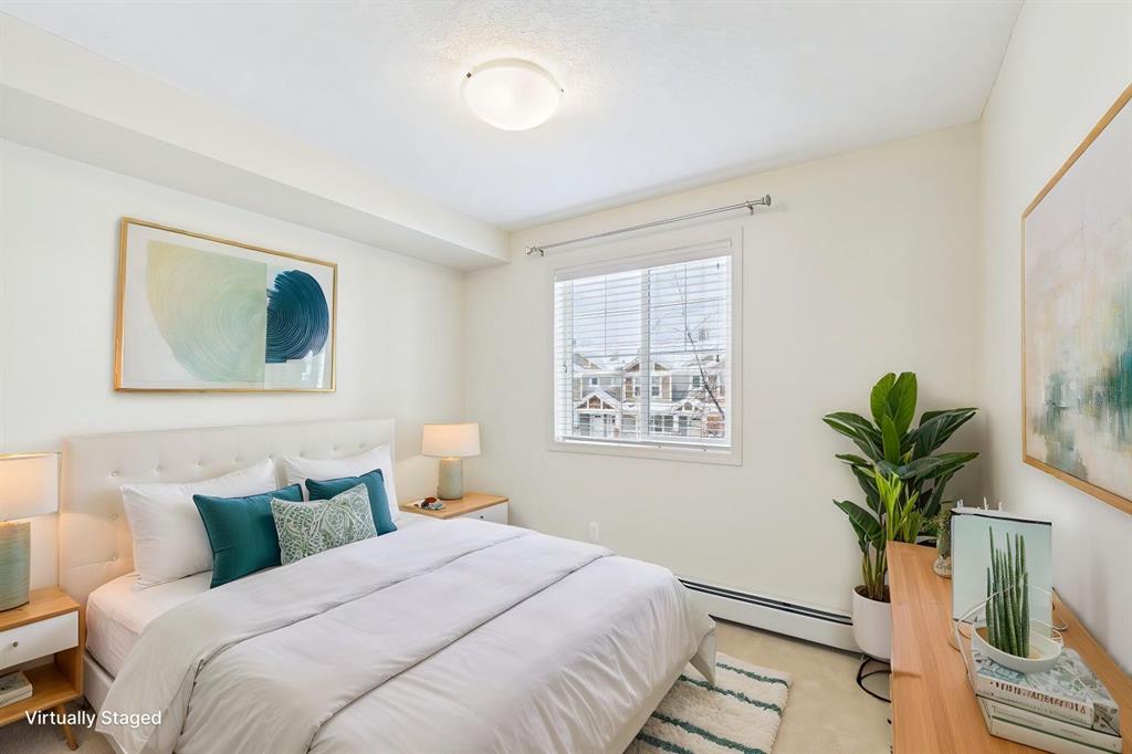 Discover the perfect blend of style and convenience in this beautifully updated 2-bedroom, 2-bathroom condo. This bright and airy unit feels brand new, boasting fresh paint and stunning, newly installed luxury vinyl plank flooring that flows seamlessly throughout the open-concept living space and air conditioning. The thoughtful layout provides maximum privacy with bedrooms situated on opposite sides of the main living area, making it ideal for roommates, guests, or a dedicated home office. Situated in the heart of Cranston, you are just steps away from grocery stores, local dining, and the extensive pathway system of Fish Creek Park, with easy access to the South Health Campus and Deerfoot Trail. This gorgeous move-in-ready home offers a maintenance-free lifestyle in one of Southeast Calgary’s premier master-planned communities.