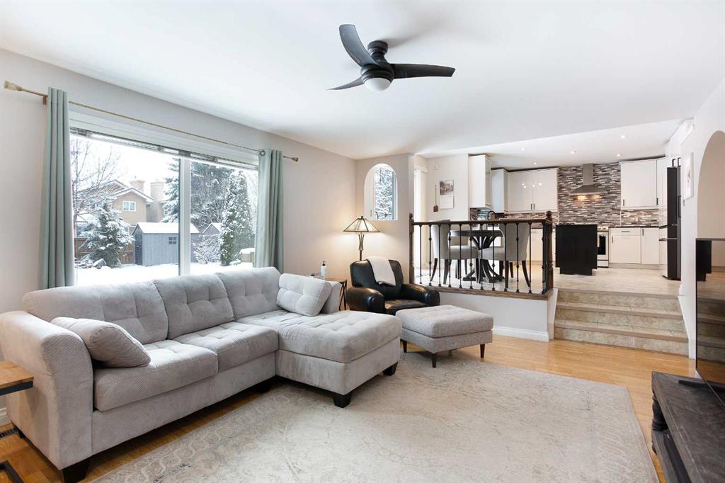 OPEN HOUSE SUNDAY APRIL 5TH 1:00 to 3:00 pm! Welcome to your beautiful new SUNDANCE home! A 4+1 Bedroom property with over 2,600 sq. ft. of developed living space, in one of the most desirable locations in Sundance. Only steps away from Fish Creek park, where you can enjoy all the attributes of one of the BEST URBAN CITY parks anywhere. Bike paths, hiking, dog walking, nature exploration and SIKOME LAKE! This property boasts a very large lot with an exceptional back yard for growing families. Enjoy entertaining barbecues on your large deck, space to play, garden and room enough for active family dogs! Inside you can enjoy a very spacious home with a living space layout that leaves nothing to be desired. A welcoming front room with dedicated dining room space, hardwood floors, large windows allowing for natural light everywhere. The kitchen is updated with NEW INDUCTIVE TOP STOVE, NEW REFRIGERATOR, eye catching backsplash with hood fan, large KITCHEN ISLAND, loads of cupboard and counter space for all at-home chefs! Casual nook for dining and indoor outdoor living straight into your backyard deck. Again, outfitted with many windows and glass doors to allow for an abundance of natural light! The drop-down living room is spacious, cozy and features a newly updated gas fireplace with brick surround and built-in CUSTOM MILLWORK and SHELVES. The main floor also features a large bedroom/flex room, and laundry room. Upstairs you are outfitted with a large Master Suite and DUAL SINK ENSUITE! The second and third bedrooms are a great size and can accomodate for growing families. Downstairs features another large bedroom and Recreation/Flex space for media and entertainment, or personal gym/yoga space. Lots of room for storage as well. This home features 2 new furnaces (2022), New Refrigerator and New Inductive Cook-Top Stove, as well as NEW ACRYLIC EXTERIOR STUCCO, a great upgrade that will provide many years of exterior beauty! Do not forget the attached 2 car garage to complete this great MOVE-IN READY family home. Located on one of the most desirable streets in all of Sundance, come and view it today!
