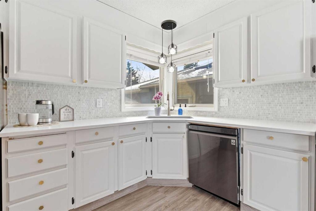 4 BEDROOMS | 2 1/2 BATHROOMS | 4-LEVEL SPLIT | 2,300+ SQFT OF LIVING SPACE | OVERSIZED DOUBLE DETACHED GARAGE | QUIET STREET | Welcome to this charming 4-level split in the desirable community of Woodbine, offering over 2,300 sqft of developed living space and incredible potential for a growing family. Nestled on a quiet street with great curb appeal and a low-maintenance yard, this home is perfectly located close to schools, parks, shopping, and offers easy access to Stoney Trail, Tsuut’ina Costco, and Fish Creek Park. Step inside to a bright and spacious main floor featuring an open and inviting living room filled with natural light. The adjoining dining area flows seamlessly into the large kitchen with quartz counters, which overlooks the sunny backyard and offers plenty of space for family meals and entertaining. Luxury vinyl plank flooring runs throughout the main living areas, adding warmth and character to the home. Upstairs, you’ll find three well-sized bedrooms including the primary retreat with a convenient 3-piece ensuite with Carrar marble and 10mm frameless glass shower. Two additional bedrooms with closets and a 4-piece bathroom complete this level, providing comfortable space for the whole family. The lower level features a cozy family room with a wood-burning fireplace, built-in shelving and wet bar, perfect for relaxing evenings, along with an additional bedroom and a 2-piece ensuite, ideal for guests or teens. The basement adds even more versatility with two additional rooms that can be used as a home office, gym, or craft space, along with a large unfinished storage area ready for your personal touch or future development. Outside, enjoy a private backyard complete with fruit trees and space to garden, along with a deep driveway leading to an oversized double detached garage with built-in shelving. This home offers a fantastic opportunity to move into a well-established, family-friendly neighbourhood with easy access to major routes, shopping centres, and endless outdoor amenities.Updates include, Kohler toilets, Delta faucets and LED lights throughout the home. Perfect as your first home or for a growing family. Book your showing today!