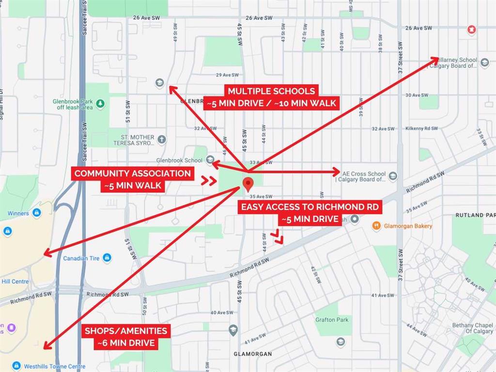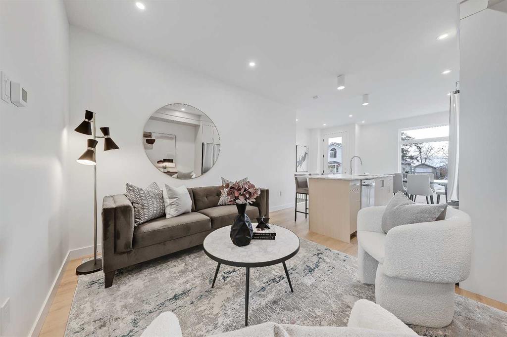 *VISIT MULTIMEDIA LINK FOR FULL DETAILS & FLOORPLANS!* BRAND NEW TOWNHOME PROJECT IN GLENBROOK! With 5 upper-level units, and 5 lower-level units, this modern townhome project is sure to impress, with an unbeatable inner-city location! This lower-level unit boasts a sunny main floor plus a FULLY FINISHED BASEMENT totalling nearly 1,000 sq ft of developed living space, with 2 beds & 2.5 baths. Accessible by a private entrance facing the street, the sunny main floor showcases low-maintenance luxury vinyl plank (LVP) flooring, and an open-concept living space with large windows. The modern kitchen features 2-tone slab-style cabinetry, quartz counters, and a Samsung stainless steel appliance package including a French-door refrigerator and ceramic top stove. The adjacent dining room is perfect for family meals and entertaining, while the living room's oversized window fills the space with natural light. A stylish 2-pc powder room completes this level. Downstairs, 2 bedrooms and 2 full bathrooms reside. Each bathroom boasts custom cabinetry, quartz counters, undermount sinks, and tiled tub/showers. Completing the basement is a convenient laundry closet. Durable and stylish, the exterior features Hardie Board and Smart Board detailing, and brushed concrete steps and walks. Located in the heart of the sought-after SW inner-city community of Glenbrook, these brand-new townhomes boast a fantastic location right across the street from Glenbrook School and the Glenbrook Community Association. A number of major amenities are located within an easy 15-min walk, including Safeway, Glamorgan Bakery, and multiple restaurants including Richmond’s Pub. Plus, nearly every imaginable amenity can be found in nearby Westhills and Signal Hill Centres which are just a 6 minute drive away. Although peacefully tucked away on a lovely residential street, Sarcee Trail and Richmond Rd are both readily accessible, making everyday commuting around the city a breeze! Make this new townhome yours! *Interior photos are samples taken from a past project - actual finishes may vary.