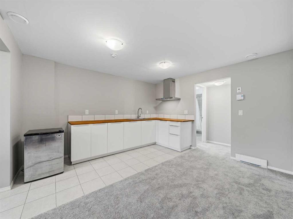 The fully finished basement provides additional living space and includes a large open area with a sleeping space, a kitchenette, and a full bathroom. The basement also offers a separate side entrance, adding flexibility for extended family or guest use.