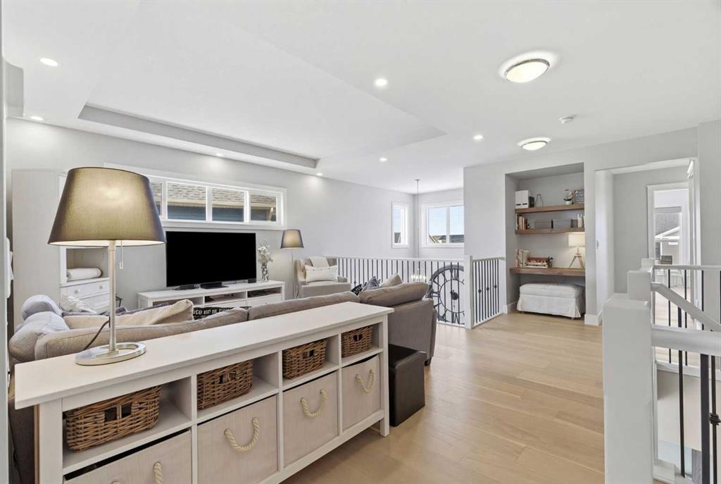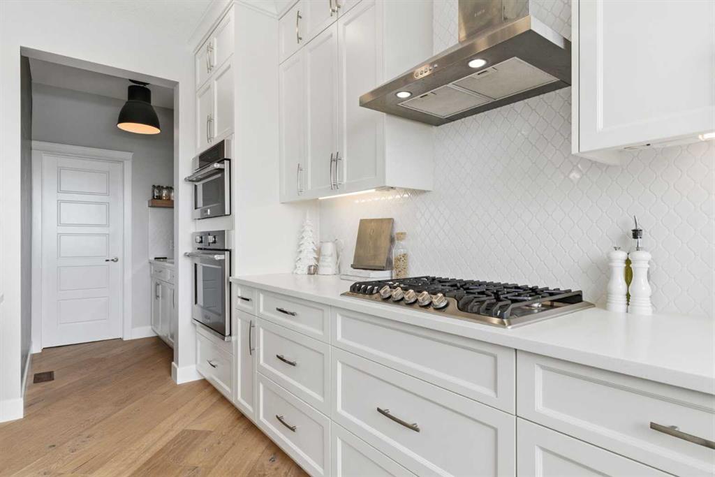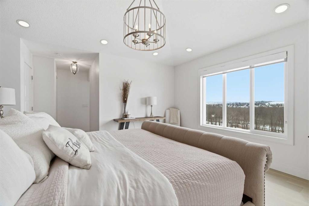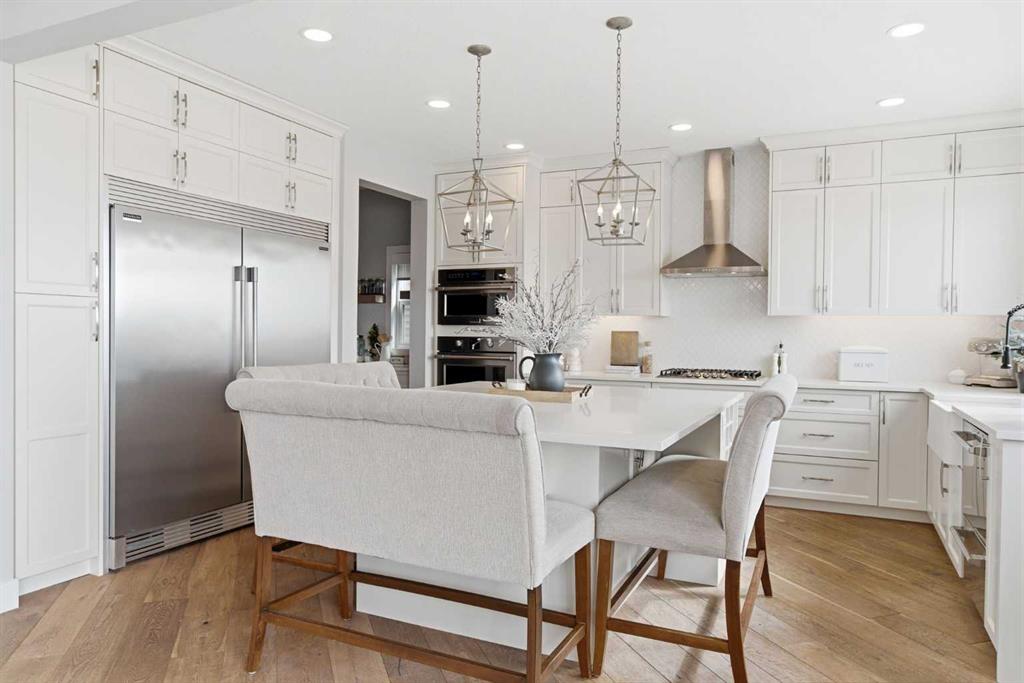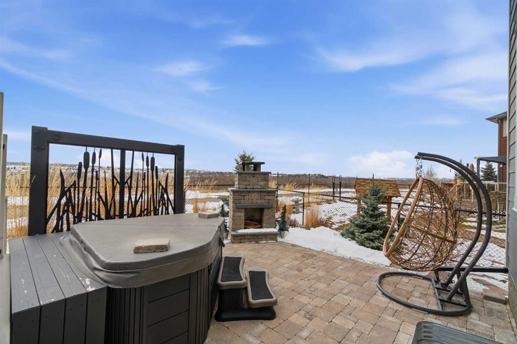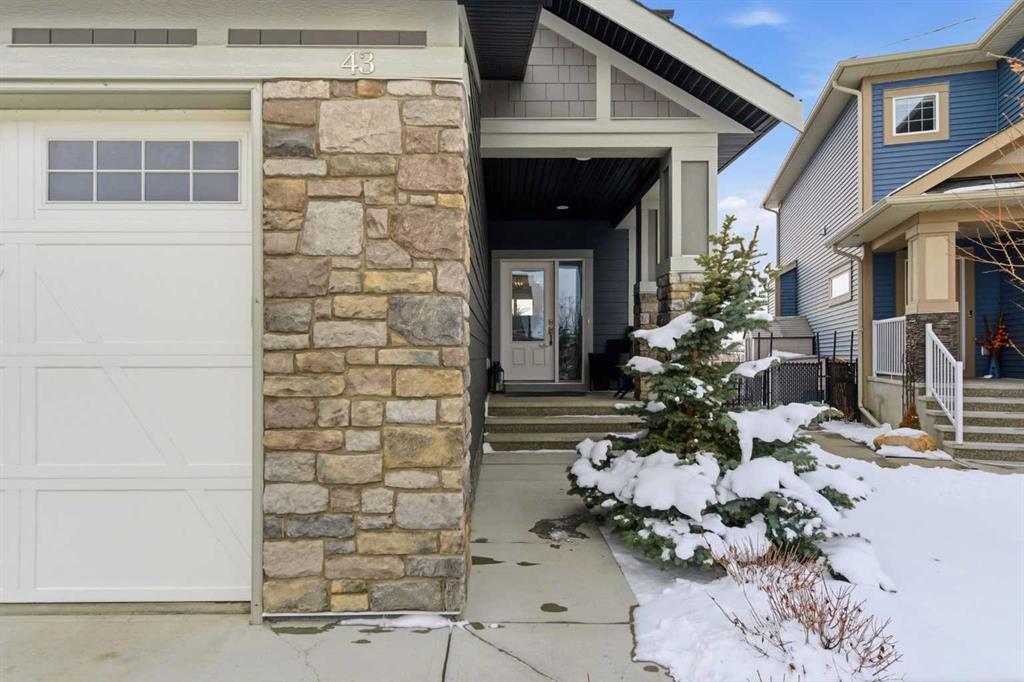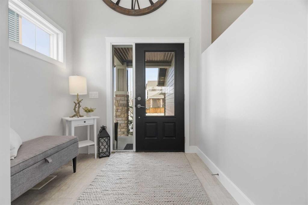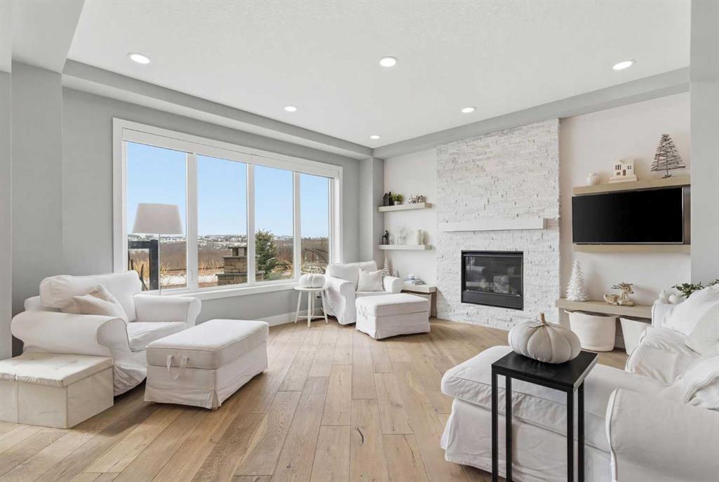Perched on a sun-soaked south-facing ridge, this stunning home offers truly breathtaking MOUNTAIN and RIVER VALLEY views you’ll never tire of. With almost 3,700 sq ft of beautifully finished living space across three levels, this property blends high-end craftsmanship with thoughtful, functional design throughout. The main floor immediately impresses with upgraded hardwood flooring, tray ceilings, a dedicated home office, and a well-designed mudroom complete with custom built-ins and lockers. The open-concept layout is perfect for both everyday living and entertaining, featuring a spacious dining area with a built-in buffet and custom shelving that flows seamlessly into the inviting living room. Here, a gorgeous stone fireplace and expansive windows frame those unforgettable panoramic views. At the heart of the home is a truly show-stopping, award-winning kitchen. Designed for both style and performance, it features an industrial-sized fridge/freezer, built-in appliances, double dishwashers, and ceiling-height cabinetry with soft-close features. A walk-through butler’s pantry connects to a massive walk-in pantry for ultimate convenience. The oversized 38 sq ft island is perfect for gathering—comfortably seating the whole family while you take in sweeping 180-degree views over Okotoks. This kitchen is more than just functional—it’s a standout feature of the home. Upstairs, enjoy brand NEW HARDWOOD flooring. The thoughtfully placed family room creates separation between the children’s or guest wing and the impressive primary retreat. The primary suite is a sanctuary, with vaulted ceilings in both the bedroom and ensuite, elegant upgraded lighting, and incredible views of the Sheep River and Rocky Mountains that change beautifully with the seasons. A well-appointed laundry room on this level includes plenty of cabinetry, a sink, and built-in drying racks. The additional front bedrooms offer flexible space to suit your needs. The fully finished basement carries a modern loft-style feel with upgraded LVP flooring. This level offers incredible versatility with space for a home office or study area, a private gym with durable rubber flooring, an additional bedroom, and a spa-inspired 3-piece bathroom with heated floors. Smart design ensures plenty of storage throughout, along with custom barn doors to easily create privacy where needed. Step outside to your own private backyard retreat, designed for low-maintenance enjoyment year-round. Featuring zero-scaped landscaping, a custom herringbone deck, stone patio, and a built-in fireplace, this space is ideal for relaxing or entertaining. You’ll even have a front-row seat to local fireworks throughout the year. Located just steps from scenic walking paths, the Sheep River, and the charm of downtown Elizabeth Street, this home offers the perfect balance of peaceful small-town living with the convenience of being only 15 minutes from Calgary.