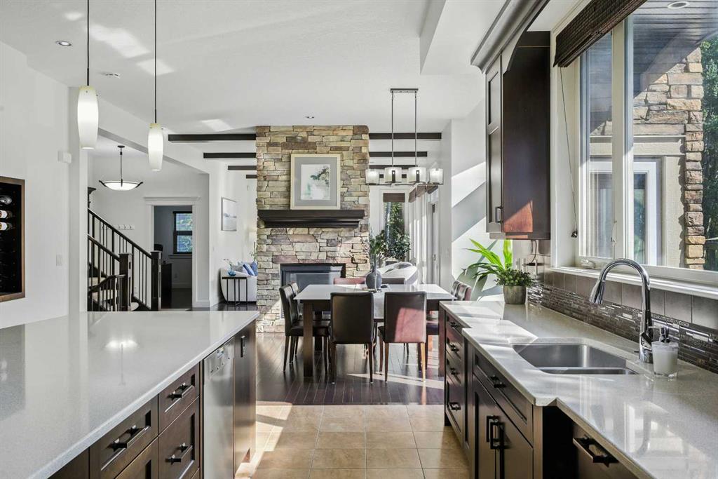 This stunning 4767 sqft 4 bed/3.5 bath luxury home, w/oversized triple garage, on 0.41 acres (one of the largest lots) on exclusive Posthill Dr, exudes classic craftsmanship with exceptional finishings. Upon entering, you'll appreciate the soaring 10' ceilings, beautiful hardwood flooring, and wall of windows bathing the area with light. The elegant living/dining spaces share a stunning stone faced double sided gas fireplace, each with a wood mantle that cleverly defines each space, & have sweeping views over the private backyard oasis, ideal for hosting large gatherings. The gourmet kitchen is an entertainer's dream, featuring an oversized island w/clever storage built into either end, quartz counters, gorgeous Jatoba custom cabinetry, 6 burner Viking gas range, Thermador wall oven, Miele dishwasher, & Frigidare Gallery refrigerator. The butlers pantry off the kitchen features additional quartz countertops & sink, matching cabinetry & built in storage for all your entertaining needs. The mudroom features a large walk in closet w/custom built ins to help organize those hectic arrivals home with the kids. A generous office & large powder room complete the main floor. The bright upper floor features central AC, 9' ceilings, and in the open area, a custom built in bookcase w/seating & homework area just outside the secondary bedrooms. The generous primary suite features a wall of windows flooding the room with light, a cozy sitting area w/gas fireplace, faced with custom millwork, ideal for unwinding at the end of the day. The large walk in closet features custom built in shelving & drawers. The luxurious 5 pc ensuite features a large glass steam shower, freestanding soaker tub, his & hers vanities and in floor heat for those chilly mornings. The two large secondary bedrooms each feature several windows & walk in closets w/custom built ins. The huge upper shared bath has individual personal vanity areas, custom built in shelving w/cabinetry, private tub & shower room plus separate water closet, perfect for kids of any age. The fully finished lower level features a large recreation area, dry bar w/full sized fridge, gas fireplace and plenty of space for kids to play or enjoy cozy family movie nights. The light filled lower guest bedroom features a walk through closet with custom built ins and adjoins a large 3 piece bath w/huge glass shower, allowing for ultimate guest privacy. Zoned in-floor hydronics make heating the lower level even cozier. The triple oversized heated garage has 12' ceilings, perfect for car lifts. The exceptional backyard oasis features a large deck plus an additional BBQ deck off the kitchen, flag stone patio and exudes a park like setting surrounded by native aspen groves. Posthill Drive is an enclave like no other, and this home exceeds expectations. Close to exceptional schools, restaurants & shops, as well as quick access to Stoney Trail from 17th Ave, making getting downtown or to the mountains a breeze. View this exceptional property today!