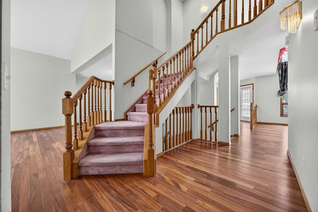 Located in the prestigious Hawkwood community, this beautiful maintained two-storey walkout home offers over 3100 SqFt of developed living space, ideal for a growing family. With 3+2 bedrooms, 3.5 bathrooms, 1 office, and thoughtful feature throughout, this home provides a kid walk safety to school. Upon entering, you'll be captivated by the impressive ceiling in the foyer. The formal living room features a large window and vaulted ceiling, flooding the space with natural light , and is adjacent to the formal dining. The spacious kitchen includes a corner pantry and central island, featuring a large window the overlooks the backyard and playground behind. The generous family room boasts a high ceiling, bay window providing a great view of the park, and a built-in bookcase with gas fireplace. The main floor has a den that can serve as a home office or guest room. The mud room with laundry and sink, a half bathroom. Upstairs has a master bedroom with some windows, 4 pc ensuite, along with a large walk-in closet. Two additional bedrooms, each with a spacious closet, and a 4 pc bathroom with skylight to complete this level. The fully developed walkout basement offers a large rec room, a full bathroom and two more bedrooms. Enjoy the landscaped backyard that is perfect for outdoor activities and relaxation. You can walk through the backyard gate to green space and playgroud. Conveniently located within walking distance to public transit, school, gas station, this location is perfect for family seeking both conenience and tranquility. Don't miss this opportynity to move into this well-established community and well- maintanined home. Upgraded recently: Fresh Printing(2026), New garage door(2025), Roof(2021)