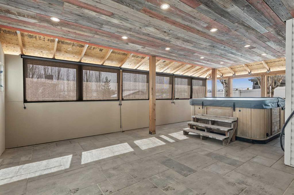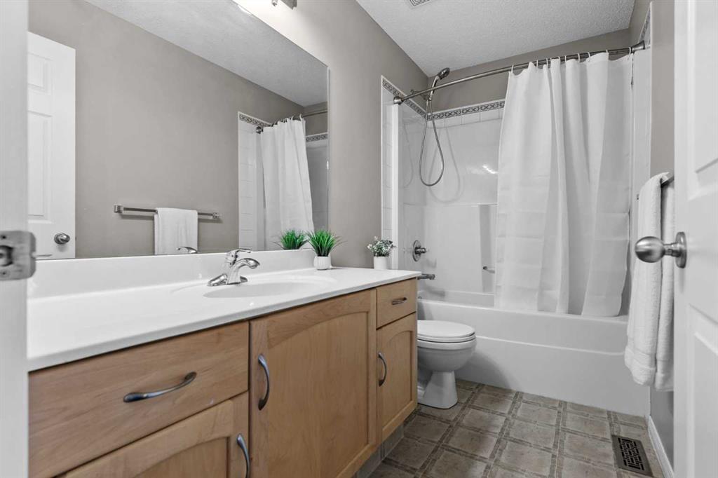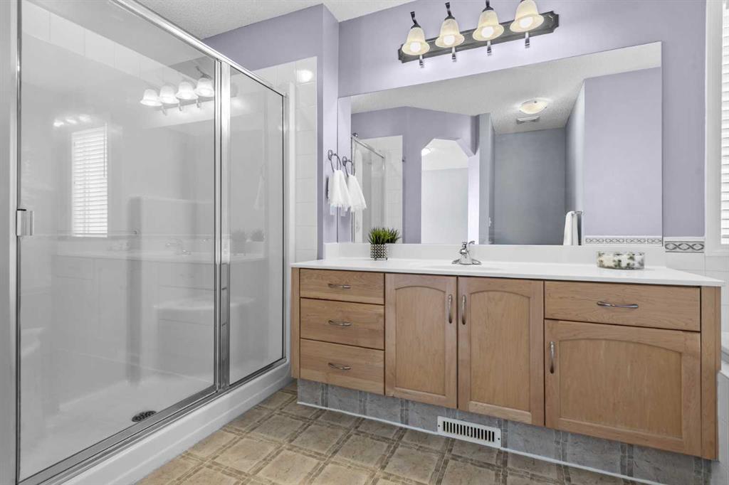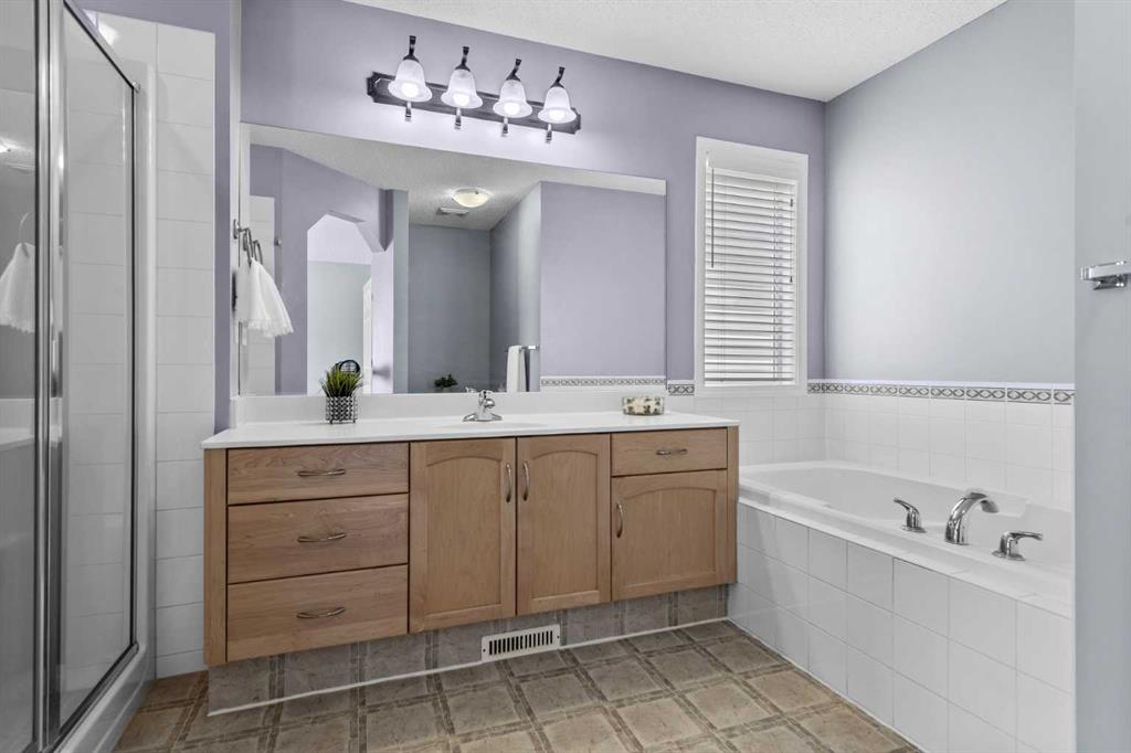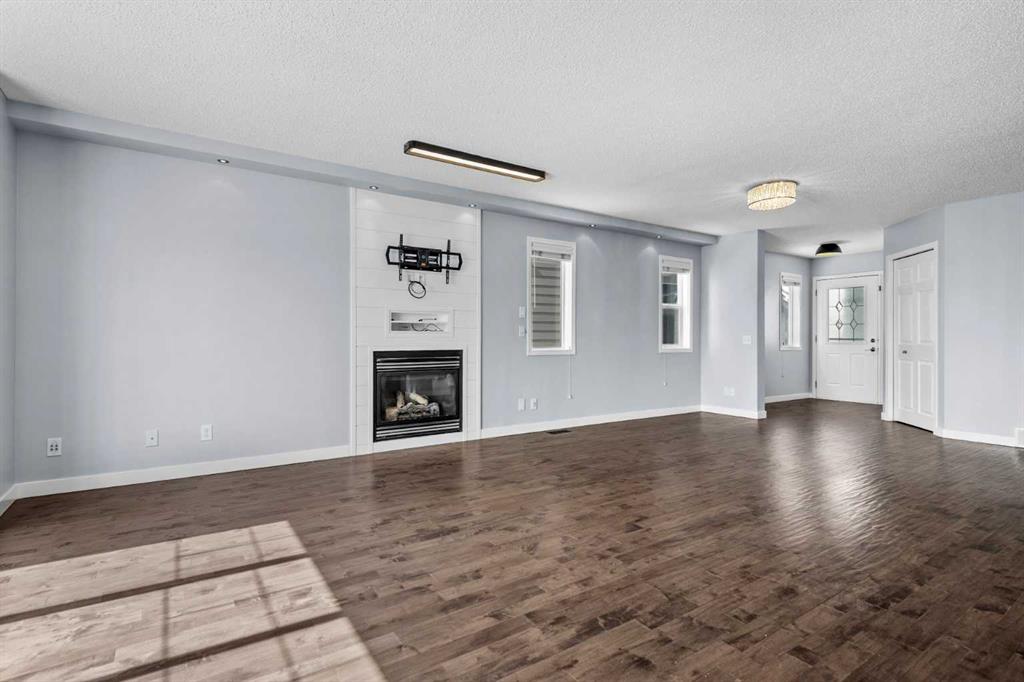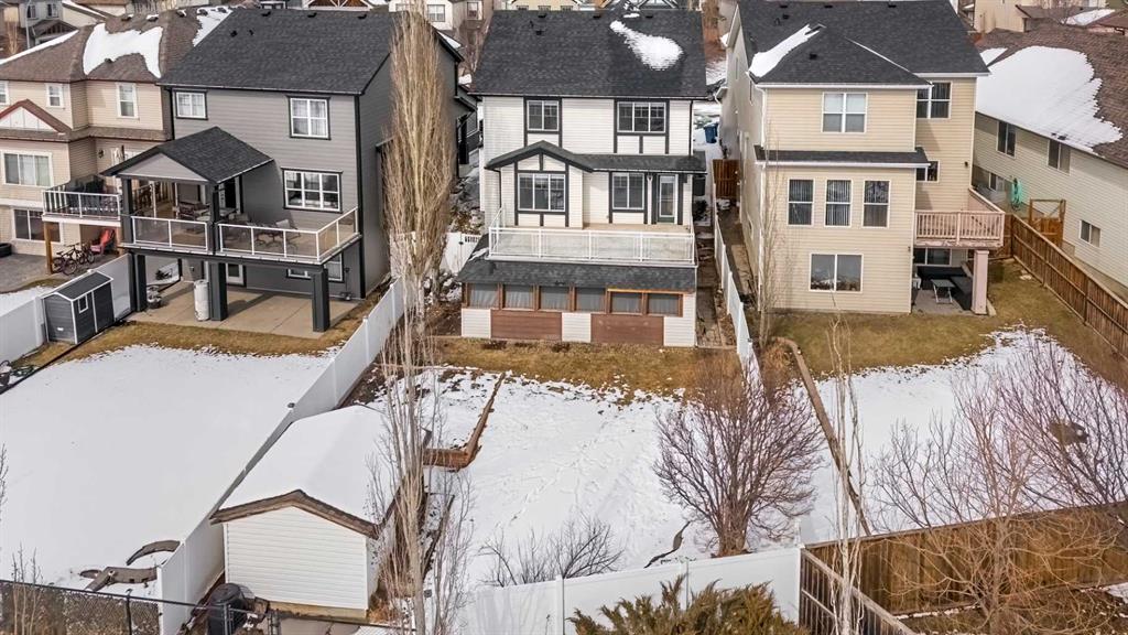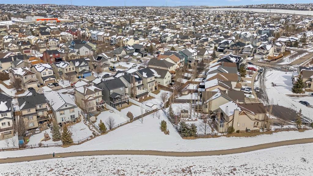 Nestled in the family-friendly community of Evanston, this home combines space, style, and convenience in a truly exceptional package. The main floor features a bright, open-concept layout designed for everyday living and entertaining. A cozy gas fireplace anchors the versatile dining and living spaces, flowing seamlessly into the updated kitchen with stainless steel appliances, granite countertops, a striking waterfall island, pantry, and ample cabinetry. Large windows fill the space with natural light and a full glass patio door opens out onto the expansive, south-facing deck; spanning the full width of the home, complete with a gas line and open views—perfect for enjoying summer evenings and family gatherings. Upstairs hosts a generous primary retreat that easily accommodates king-sized furniture and includes a walk-in closet and ensuite with soaker tub and separate shower. Three additional well-sized bedrooms, a full bathroom, walk-in linen closet, laundry and a thoughtfully designed tech space with built-in plug-ins provide flexibility for work, study, or homework. The fully developed walk-out basement is an entertainer’s dream, designed for both fun and relaxation. Enjoy movie nights or the big game in the spacious recreation/media room, with custom soundproofed maple drop ceiling, projector, oversized screen, built-in cabinetry, and wired for sound and sauna. Step outside to the private, enclosed patio and hot tub—perfect for unwinding or hosting friends. This level also features a full bathroom and utility room with storage and workshop space, and cold room with insulated metal door, offering both convenience and flexibility while seamlessly connecting indoor and outdoor living. Thoughtful updates over the last 10 years include tile and maple hardwood flooring throughout the main floor, heated flooring in the kitchen(workspace), Google Nest thermostat and doorbell camera, garage overhead door, A/C and furnace(2022), roof, downspouts, soffits and fascia(2025), freshly painted(2026). This home also features inground sprinklers, expanded concrete driveway, heated garage and insulated/soundproofed water walls. Set on a generous lot that partially backs onto green space and walking paths, this home offers privacy and a connection to nature. Surrounded by scenic pathways, parks, excellent schools, and quick access to countless amenities, Stoney Trail, Deerfoot Trail, Symons Valley Road, and 14th Street—this is an ideal location for growing families.